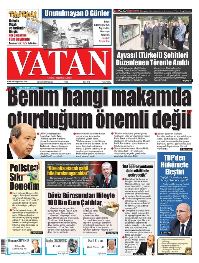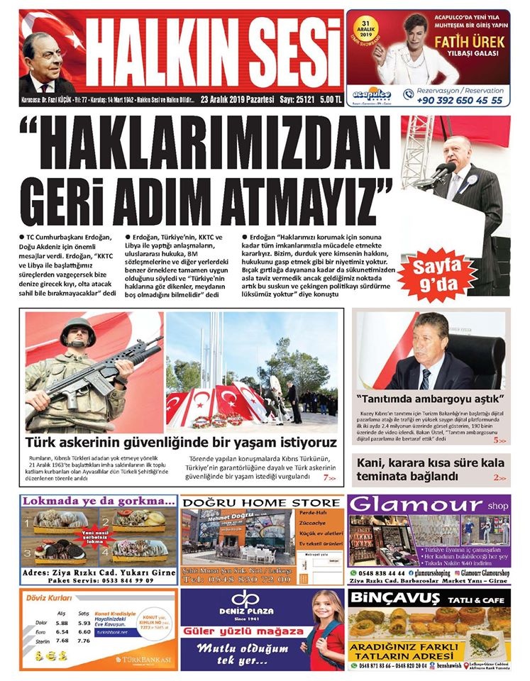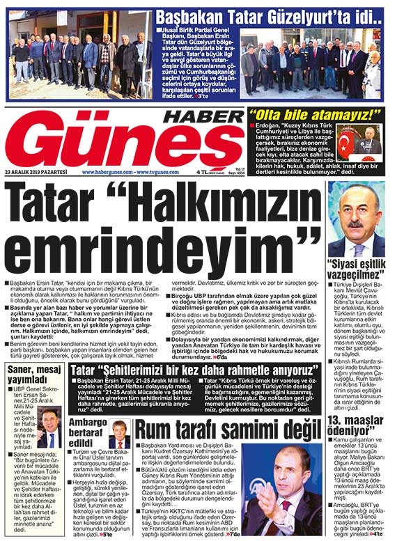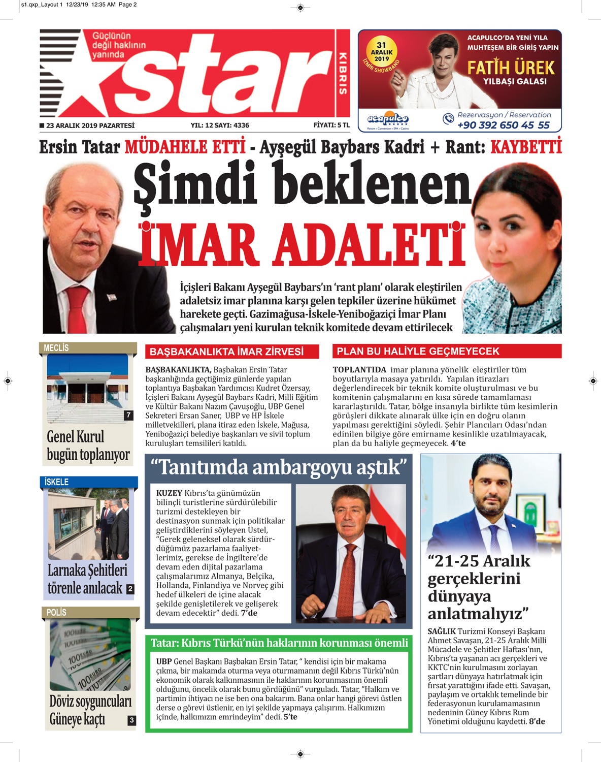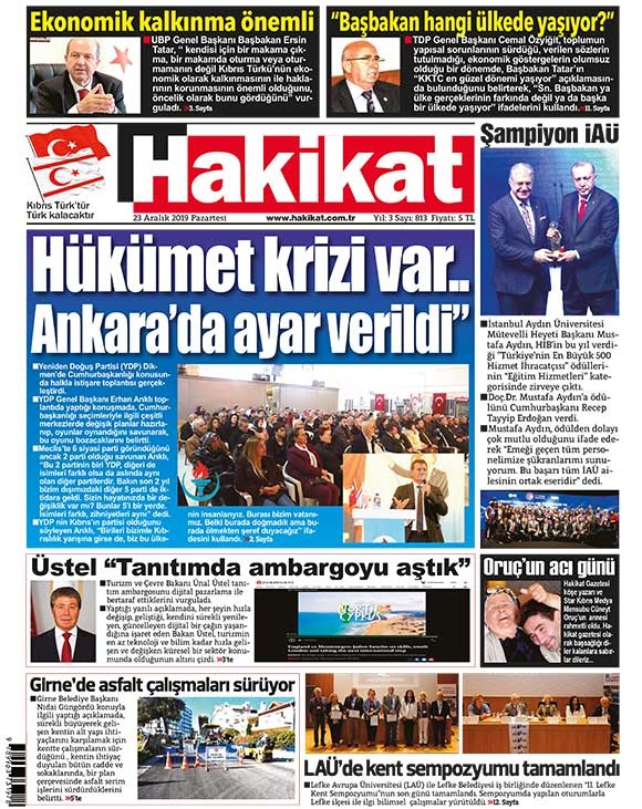 KKTC Gazete Manşetleri 23 Aralık 2019