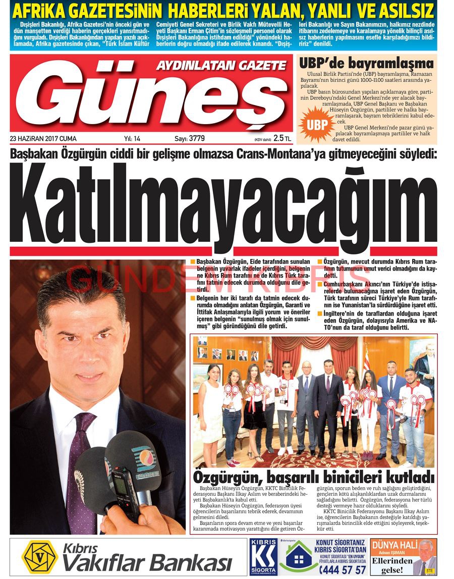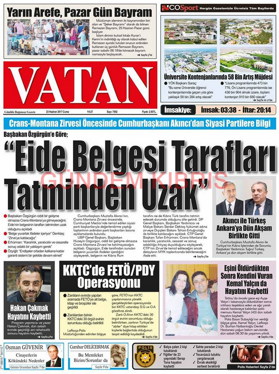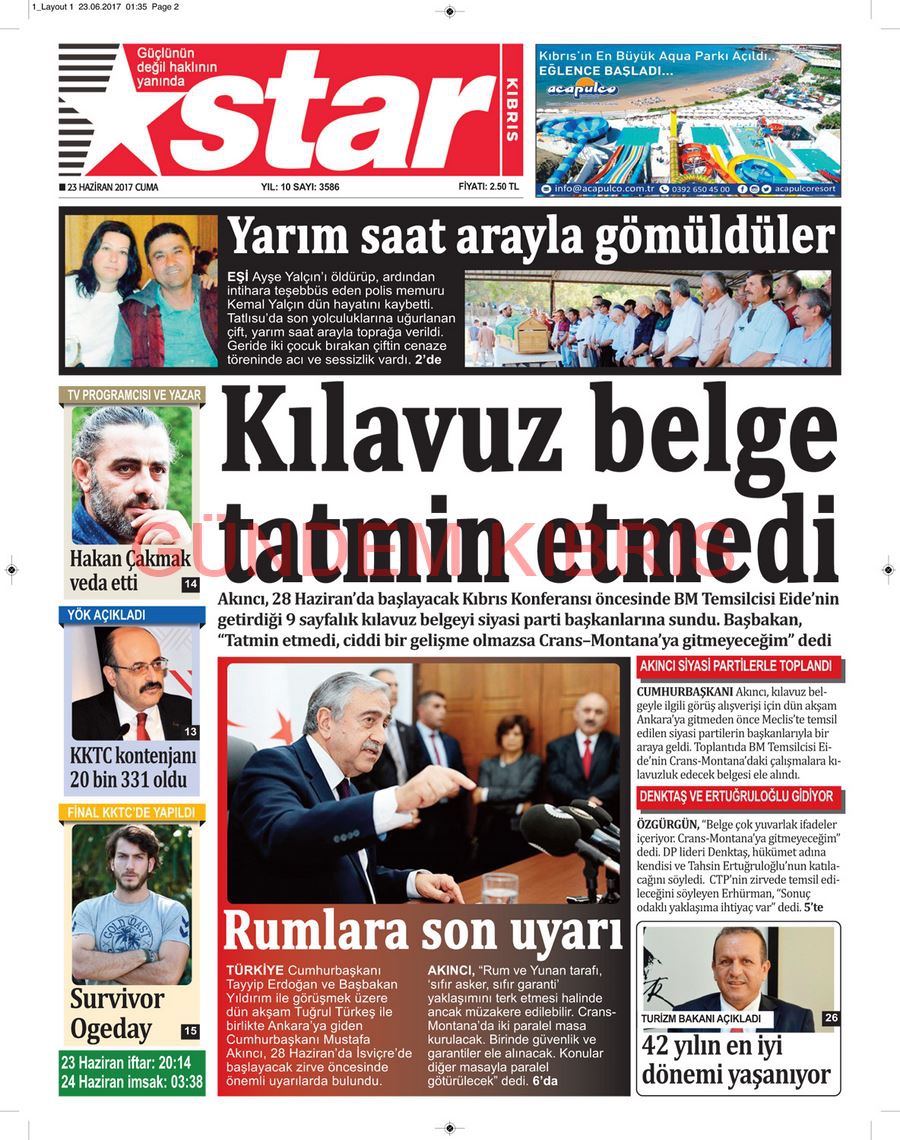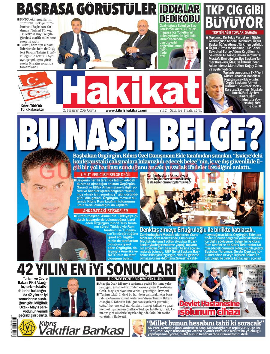 KKTC Gazete Manşetleri 23 Haziran 2017