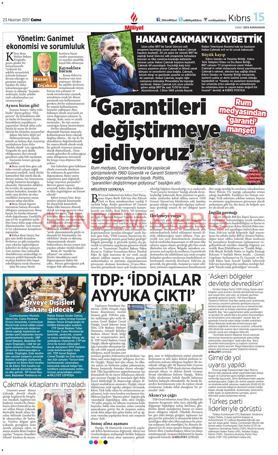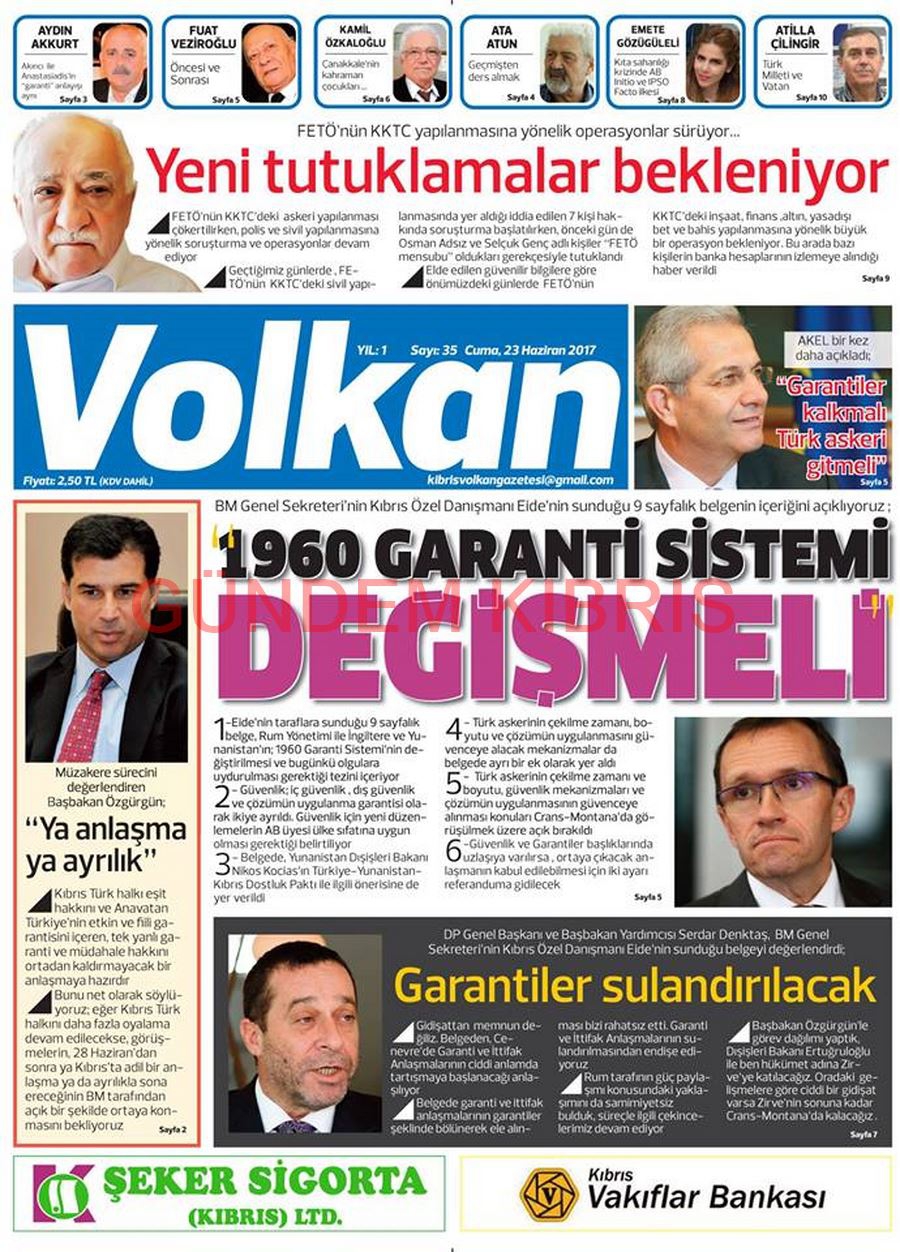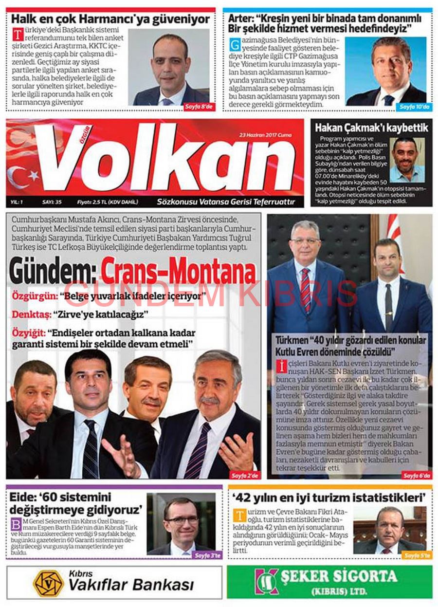 KKTC Gazete Manşetleri 23 Haziran 2017
