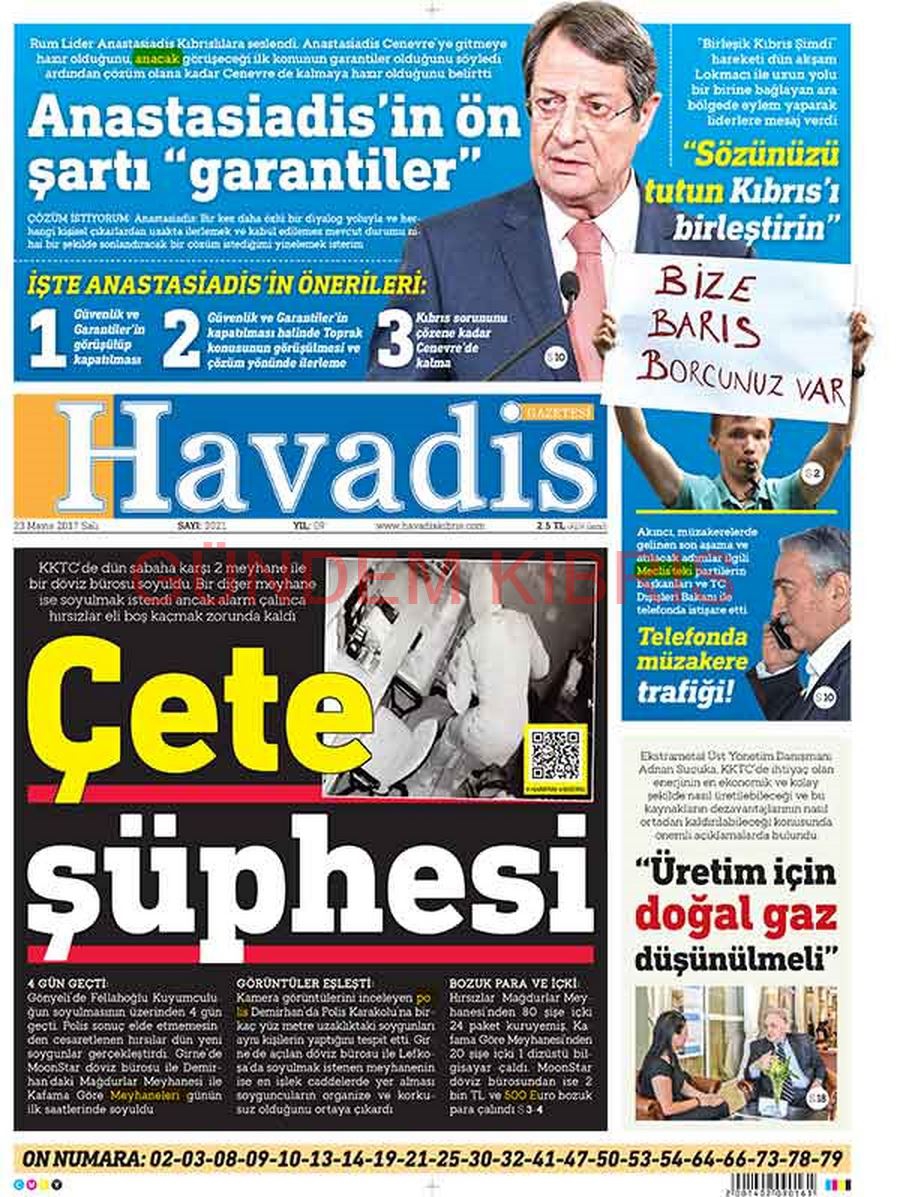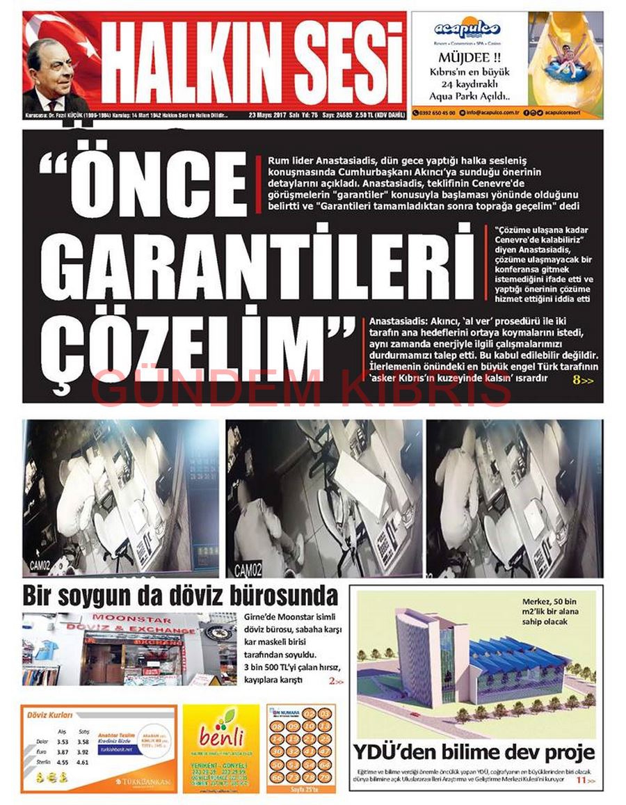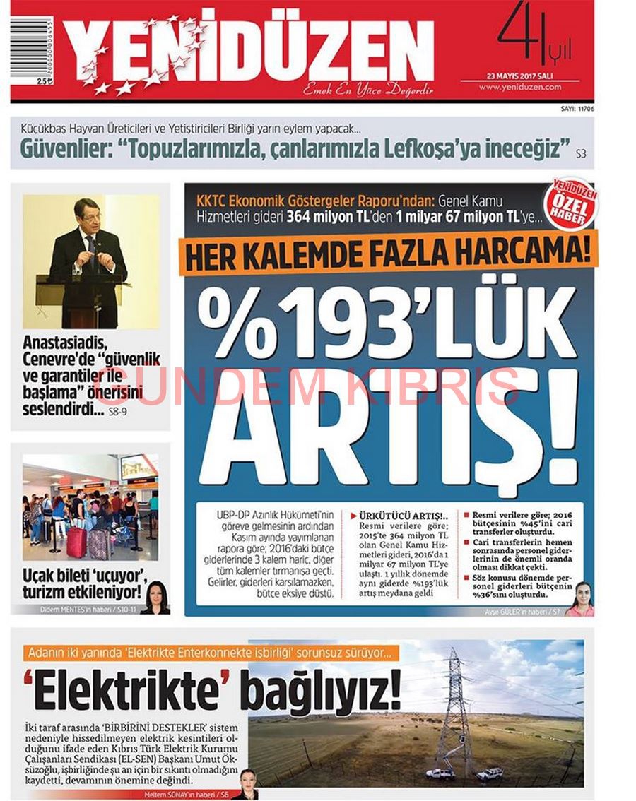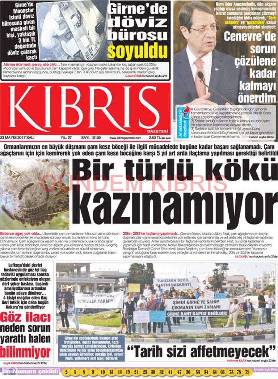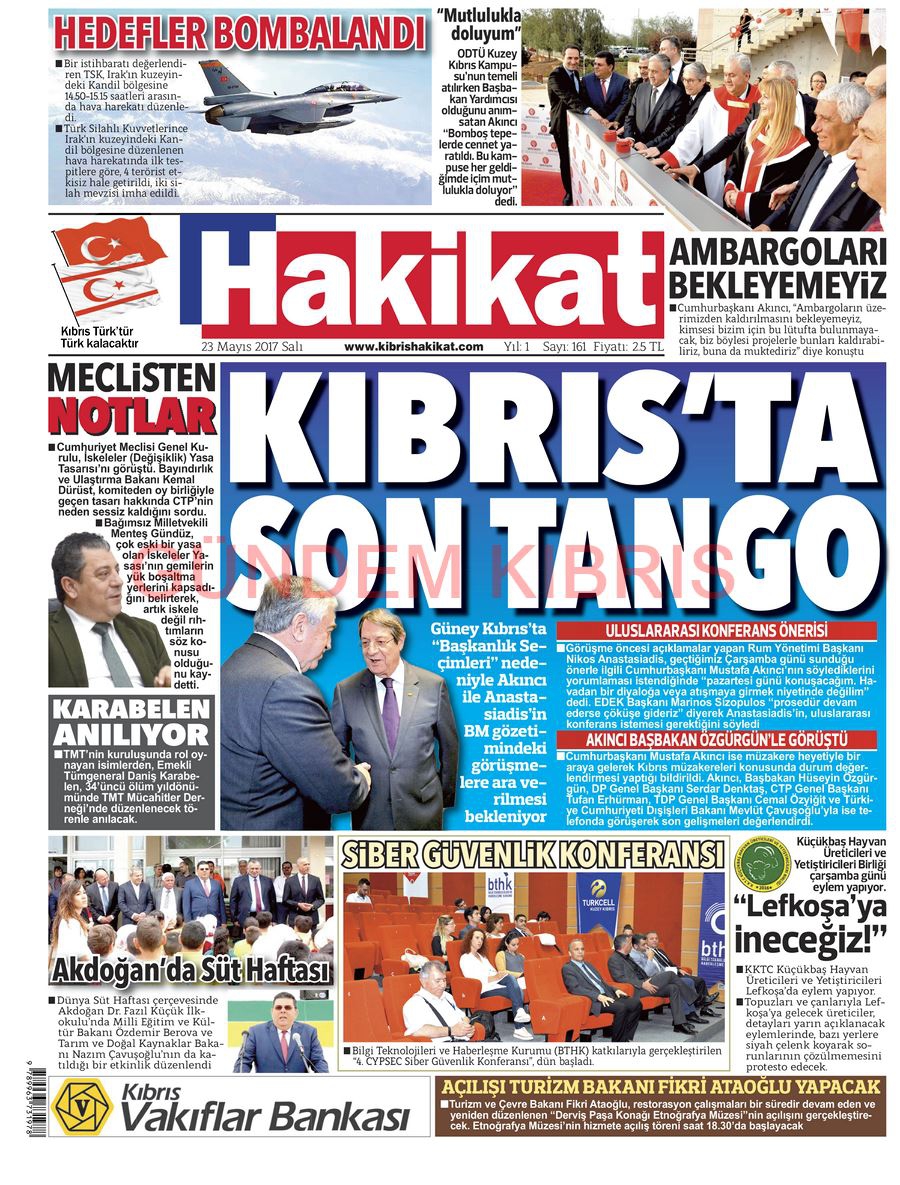 KKTC Gazete Manşetleri 23 Mayıs 2017