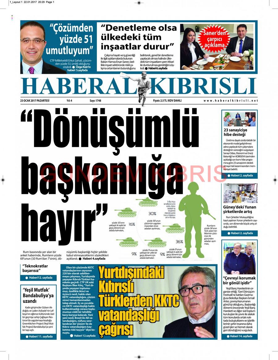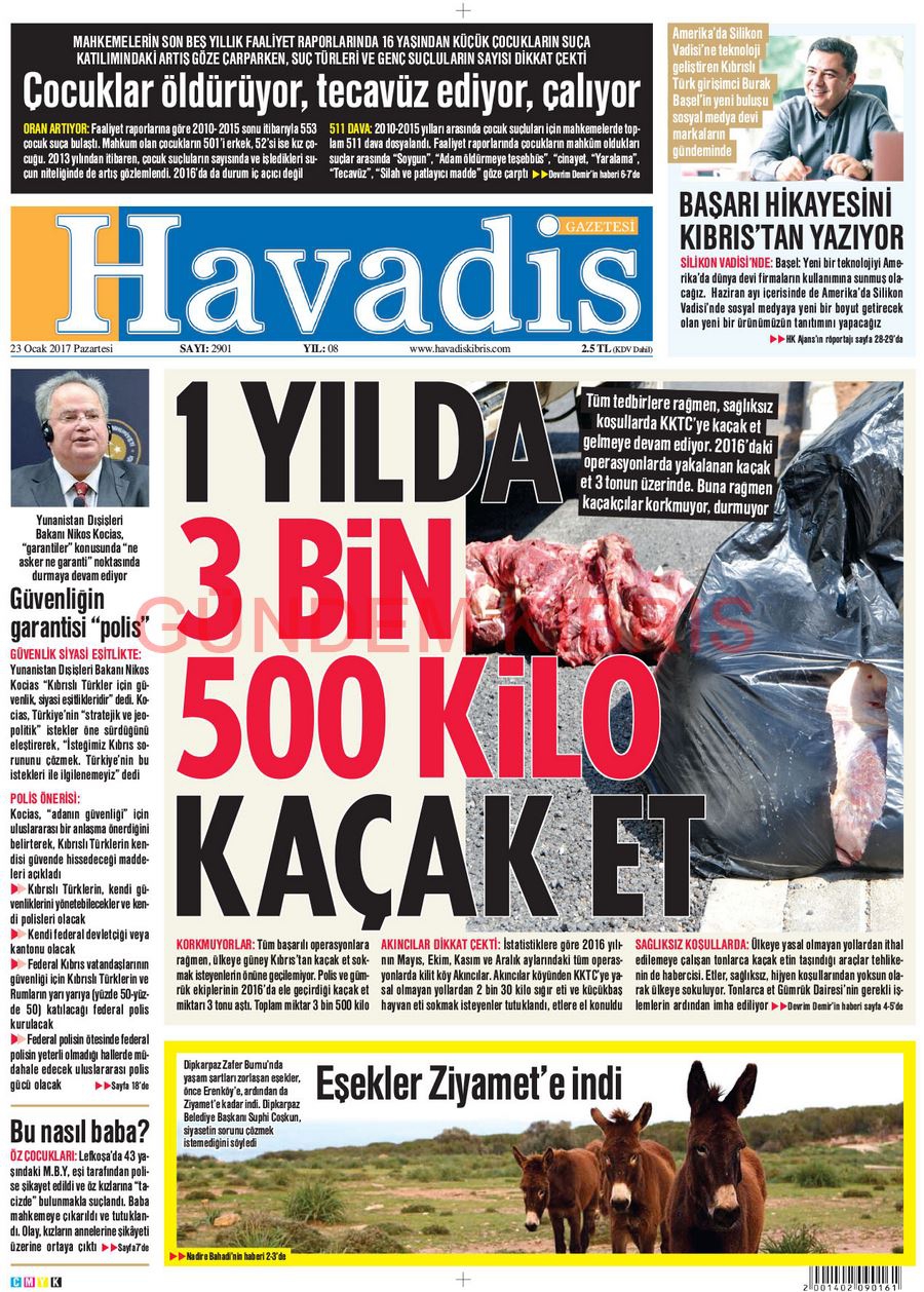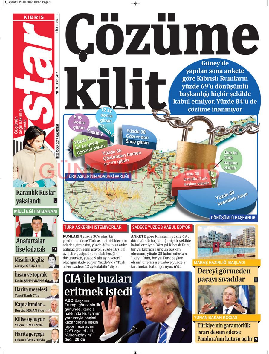 KKTC Gazete Manşetleri 23 Ocak 2017