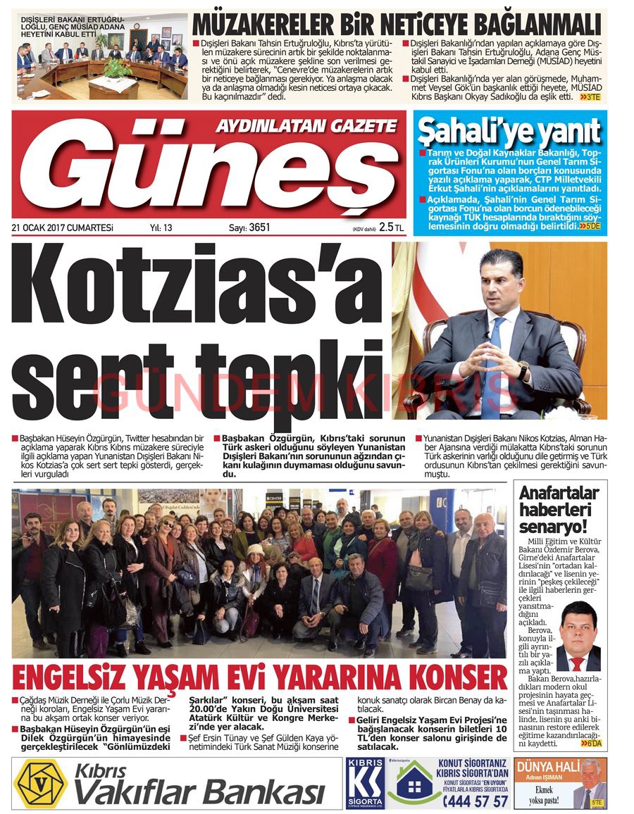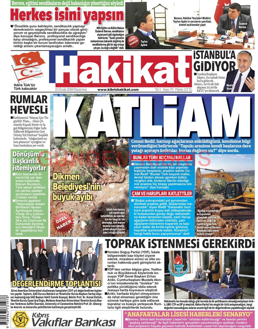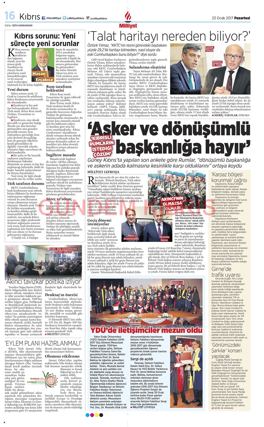 KKTC Gazete Manşetleri 23 Ocak 2017