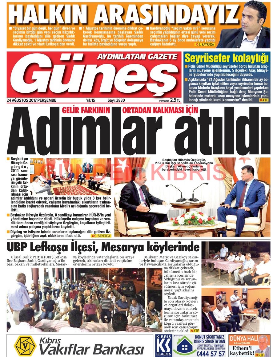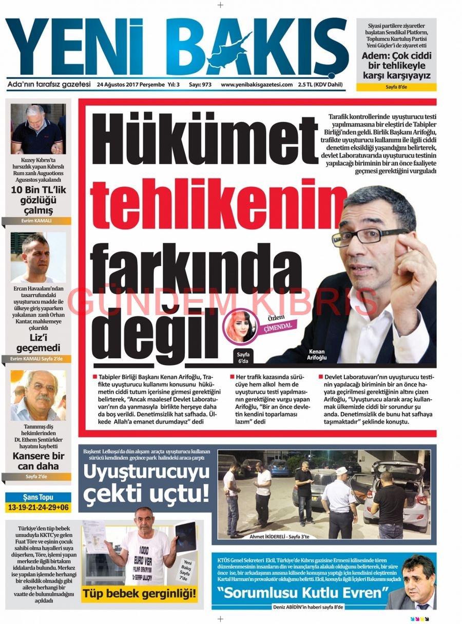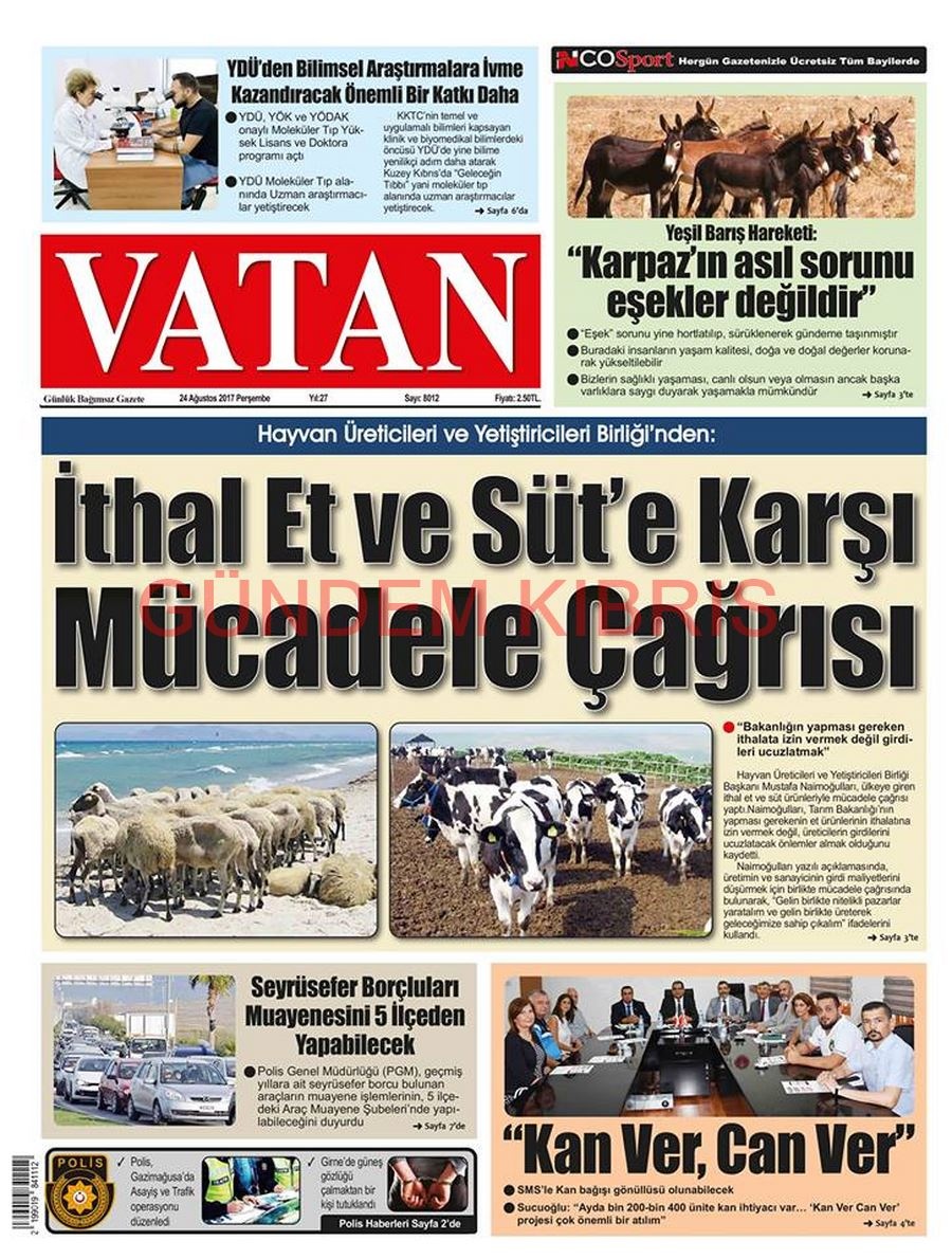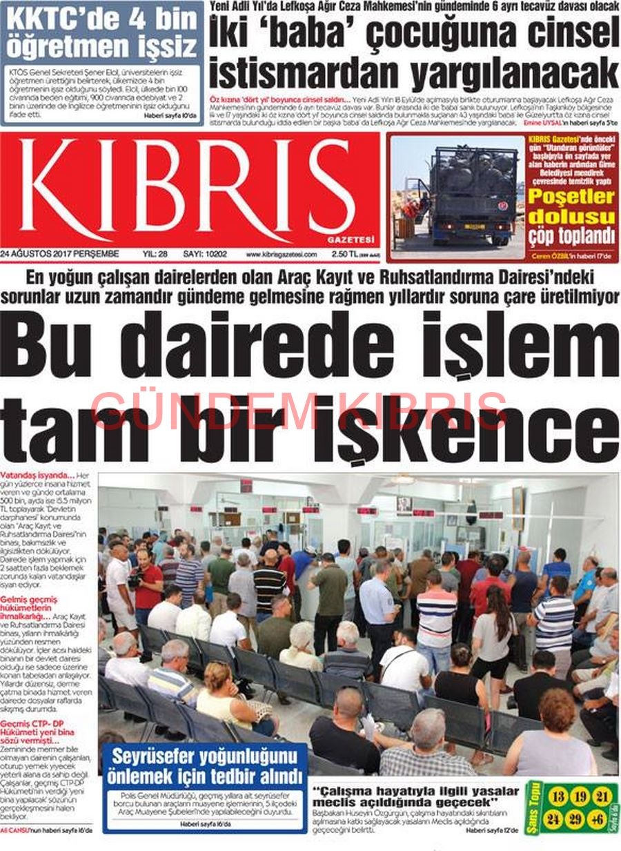 KKTC Gazete Manşetleri 24 Ağustos 2017