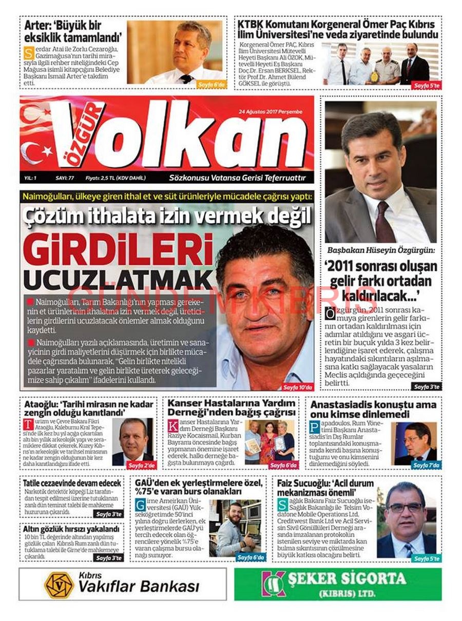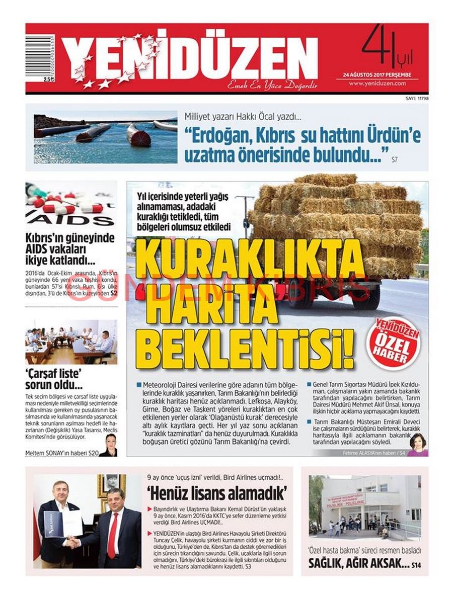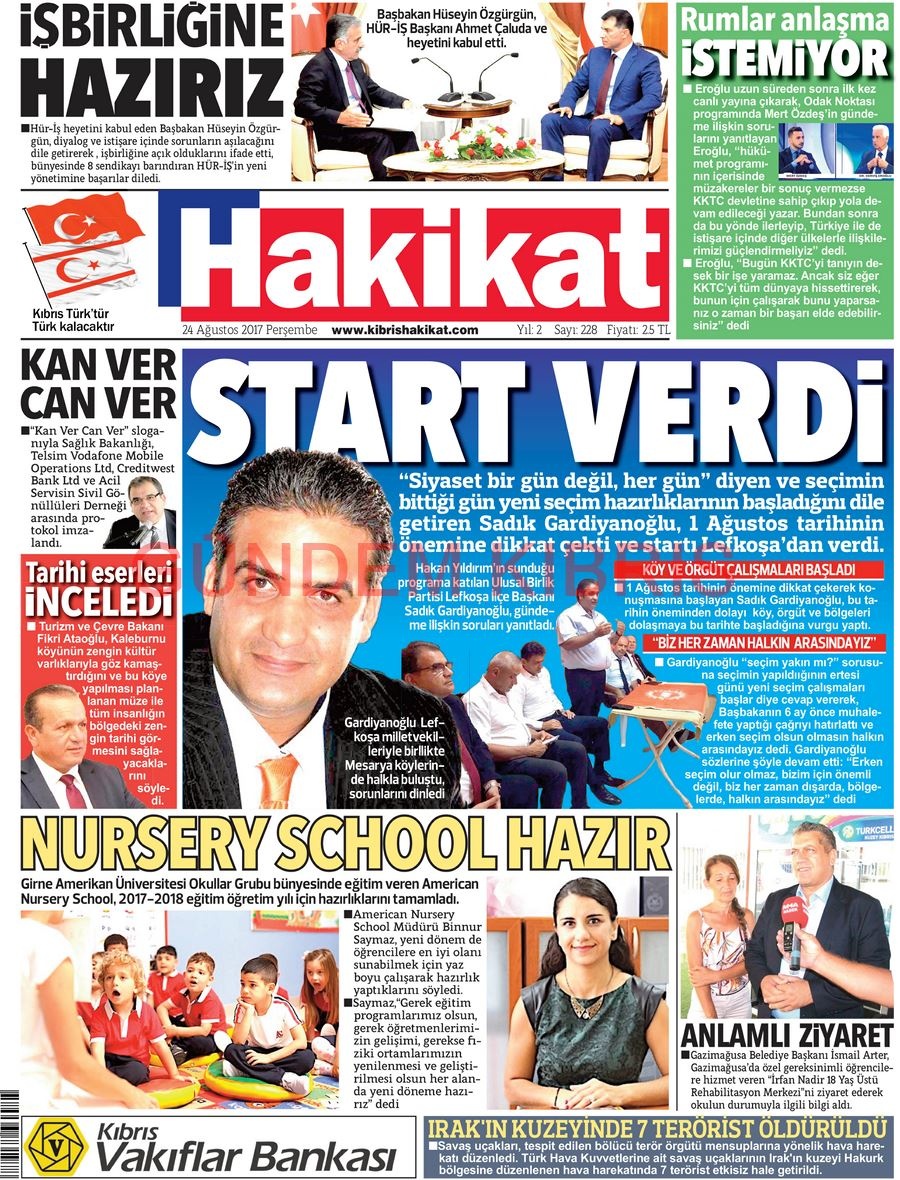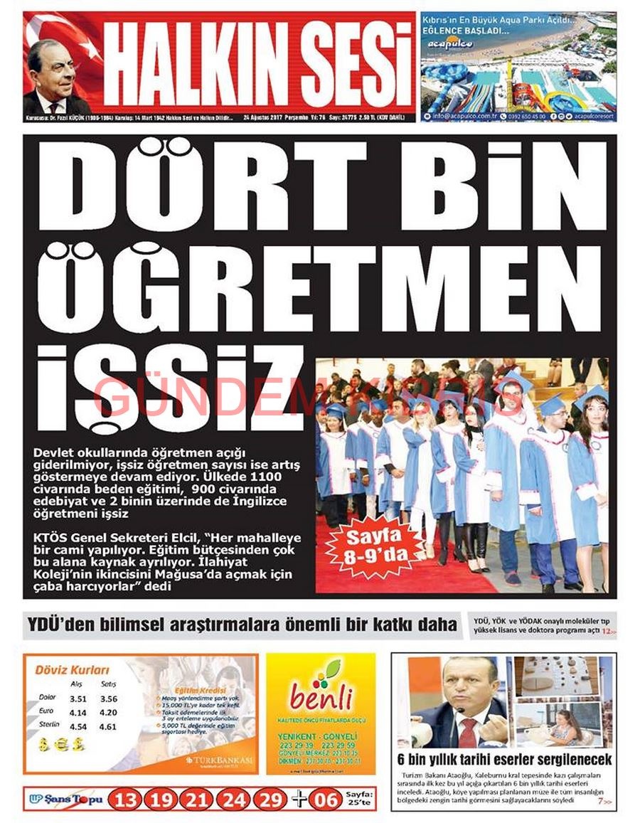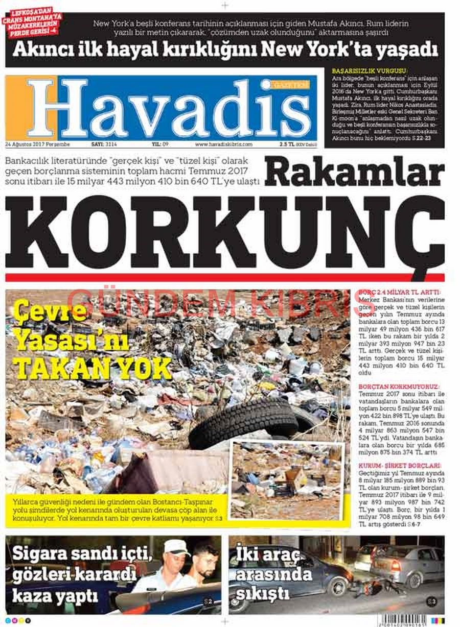 KKTC Gazete Manşetleri 24 Ağustos 2017