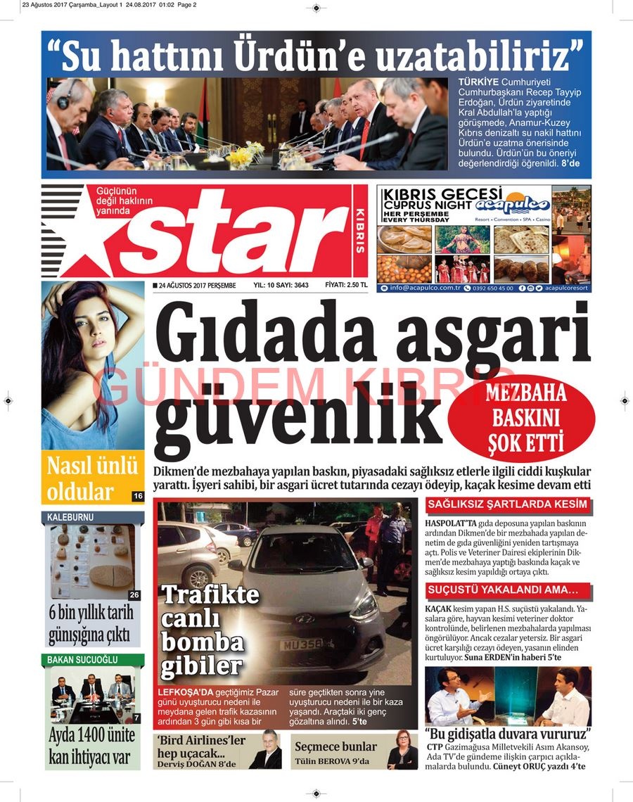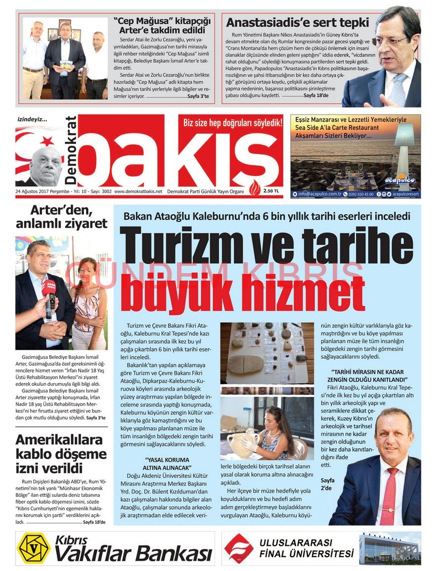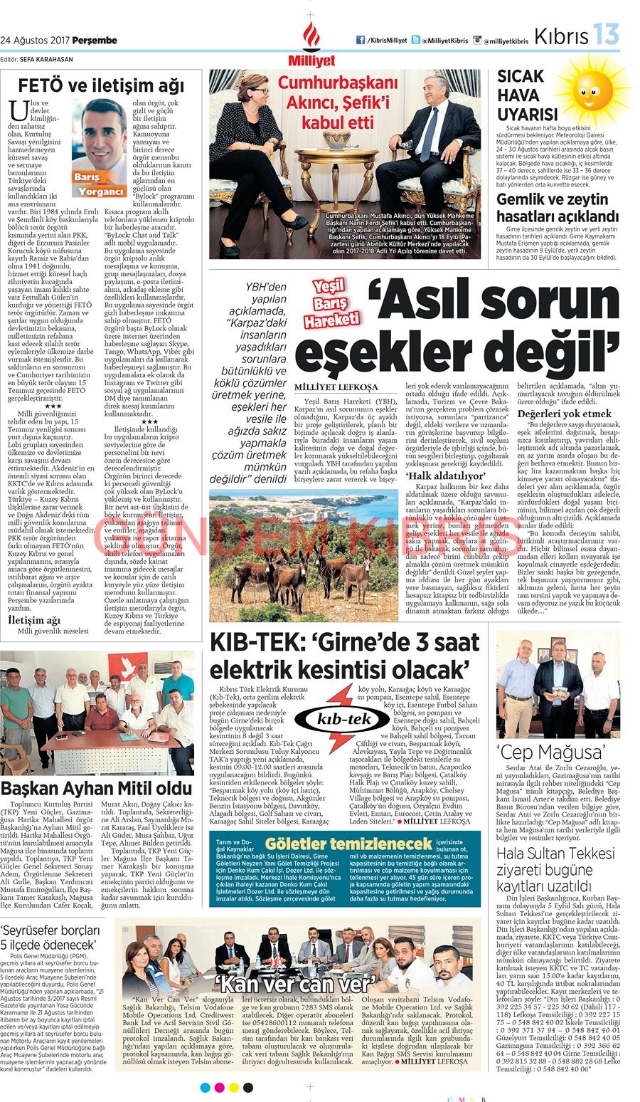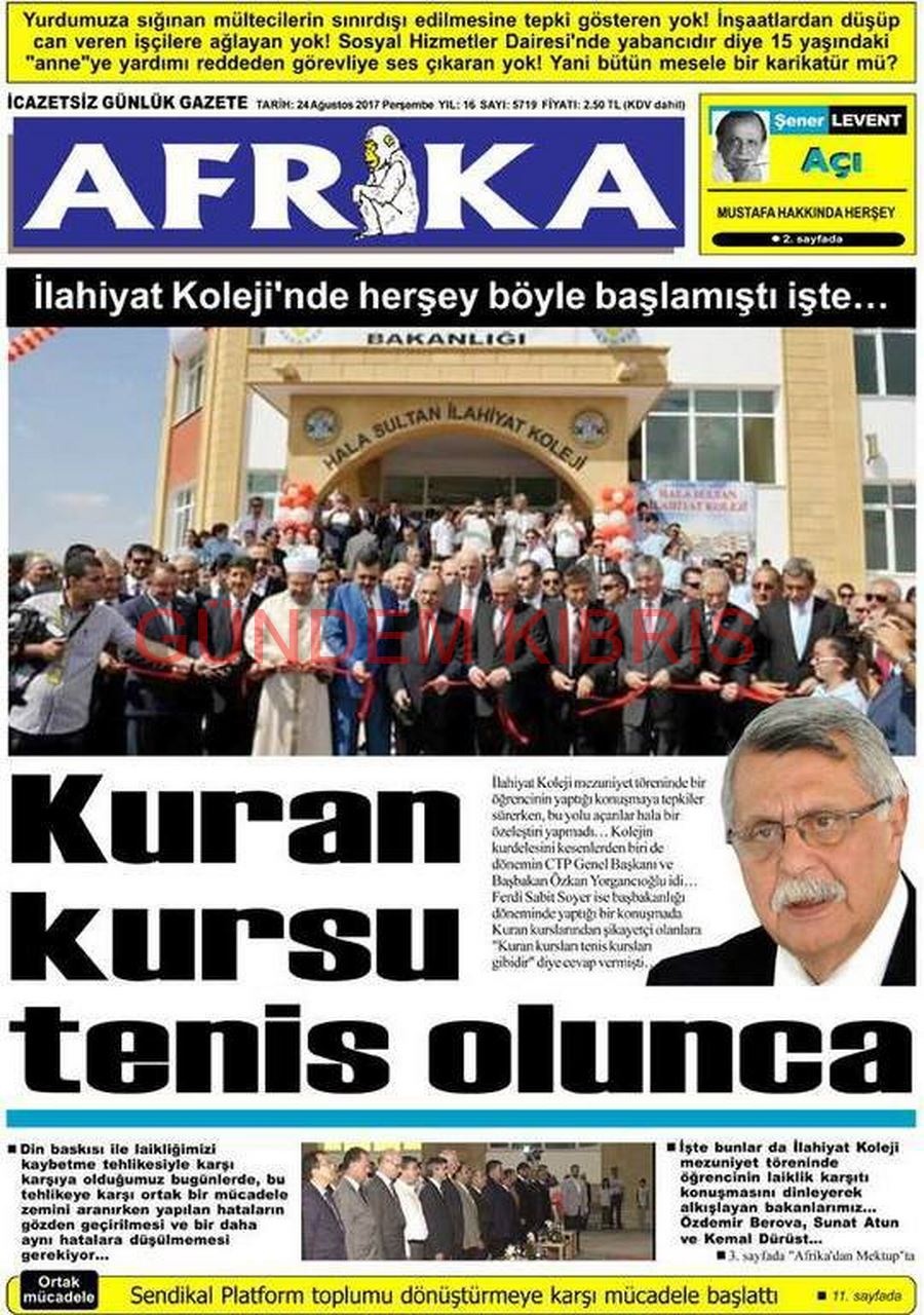 KKTC Gazete Manşetleri 24 Ağustos 2017