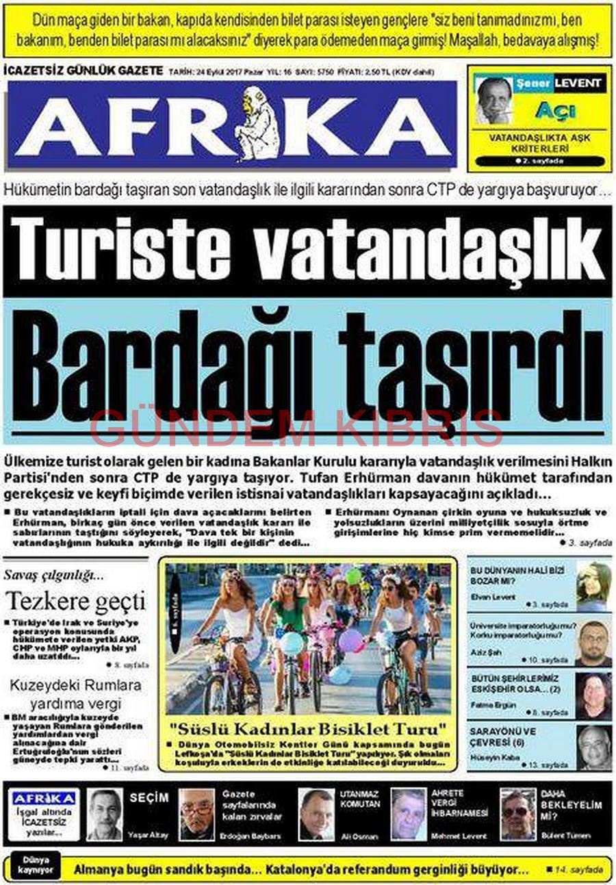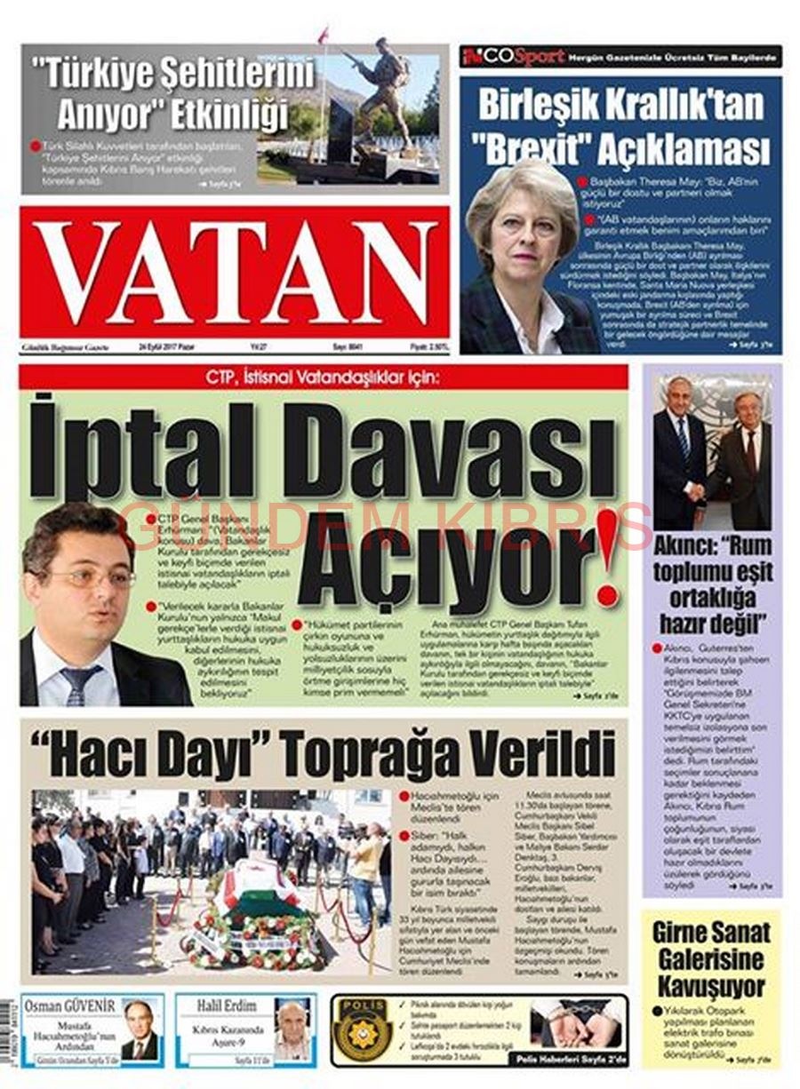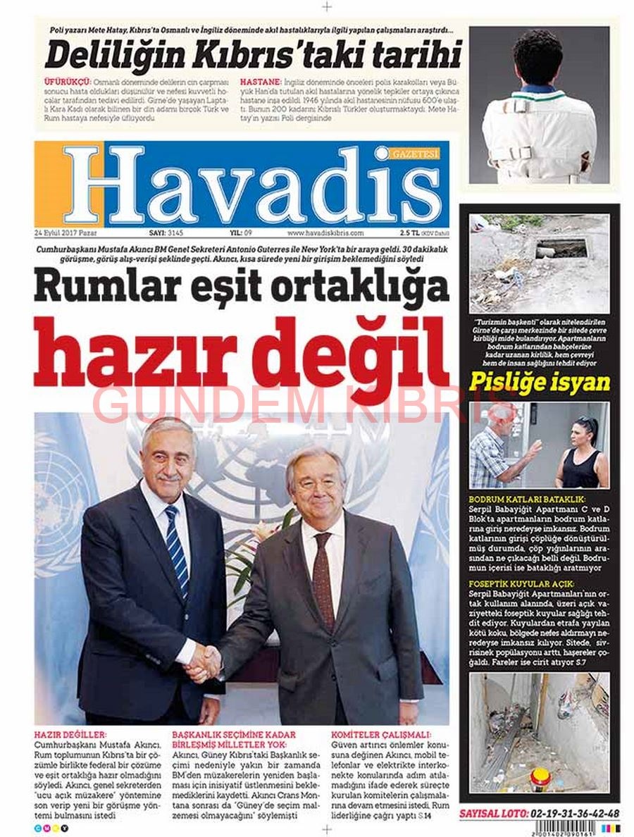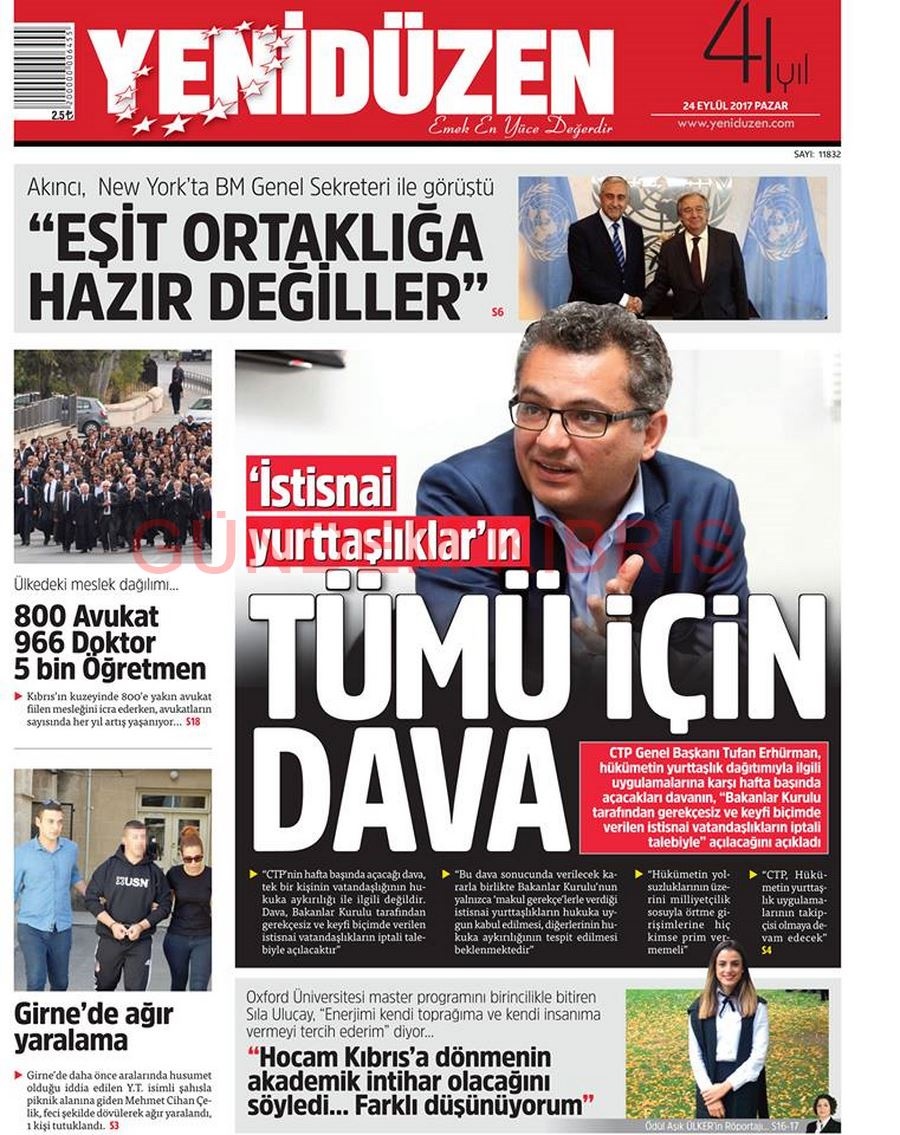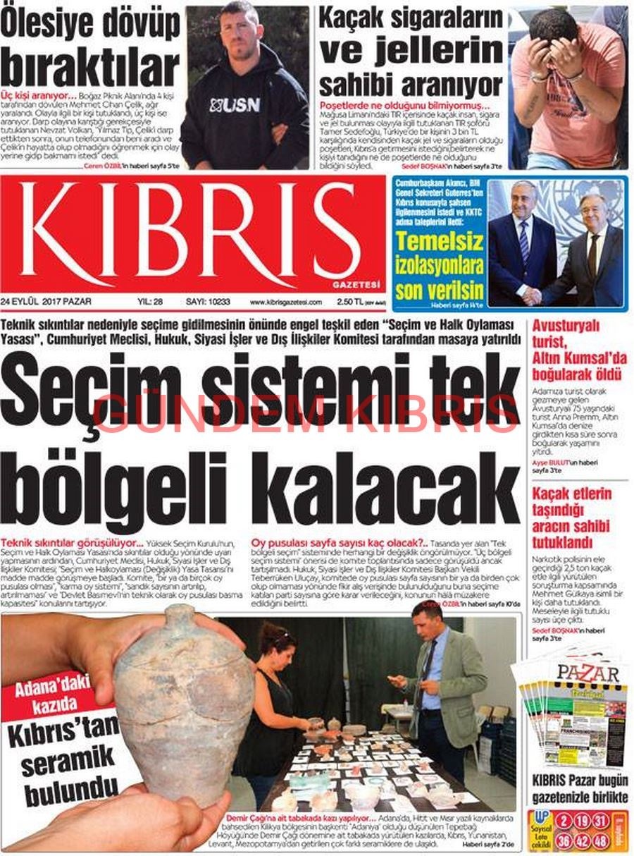 KKTC Gazete Manşetleri 24 Eylül 2017