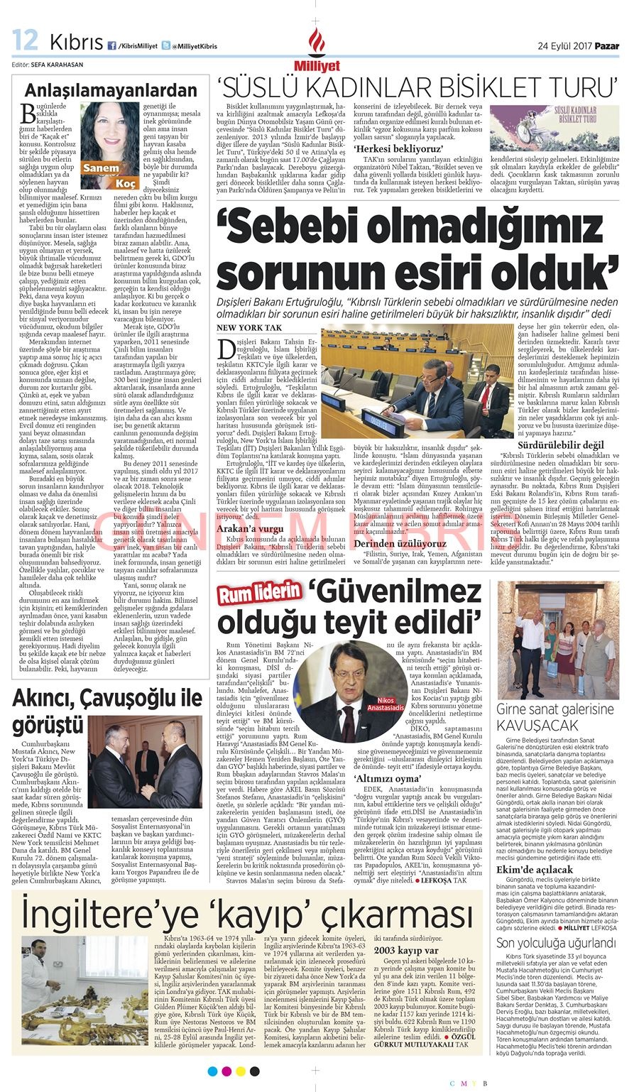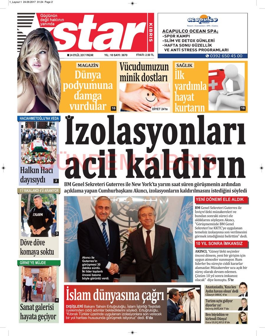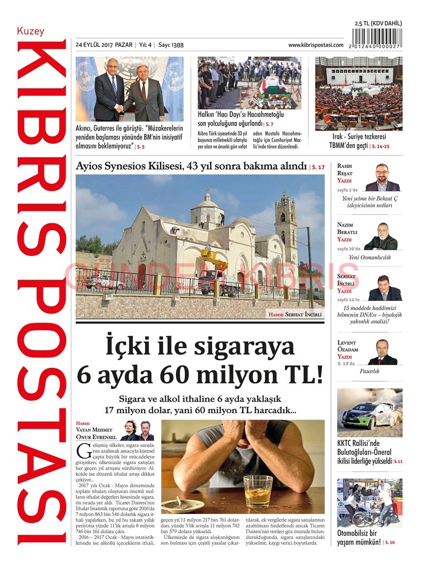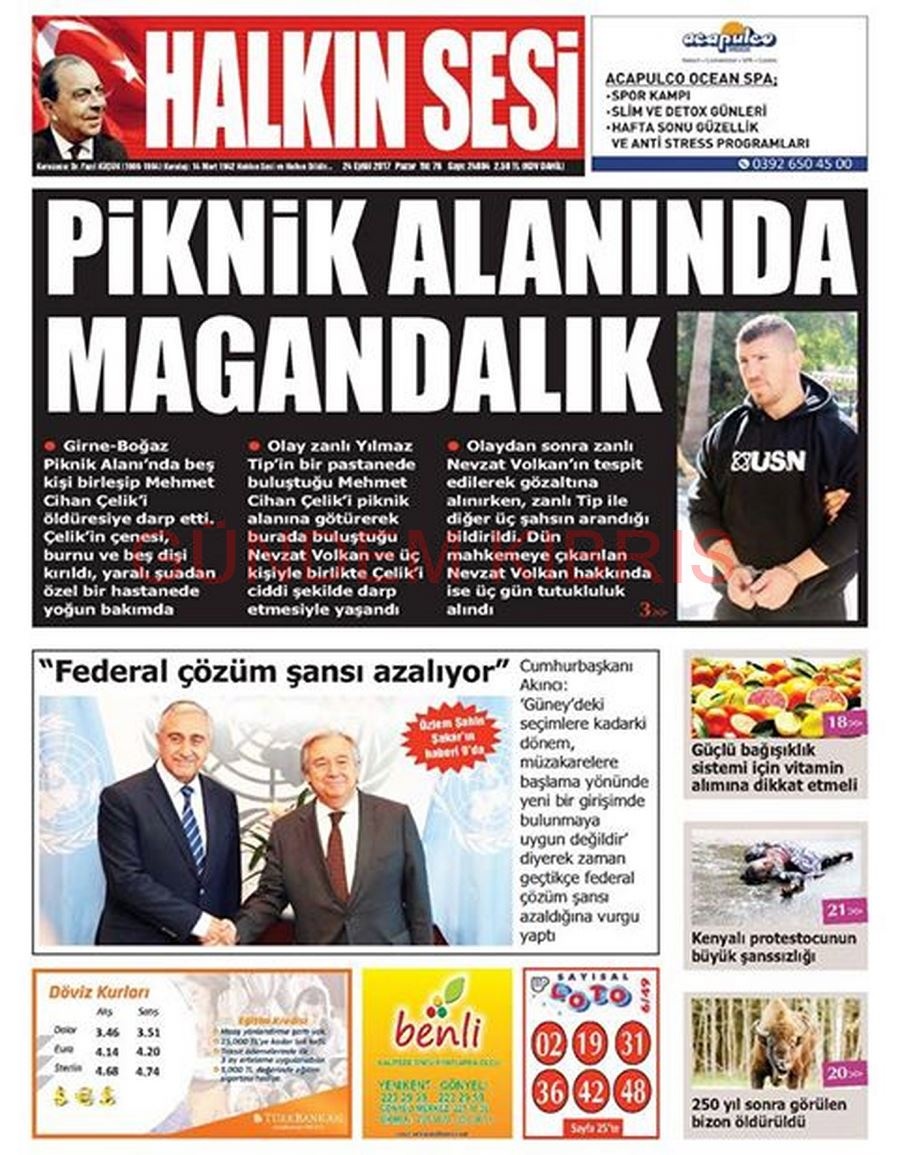 KKTC Gazete Manşetleri 24 Eylül 2017