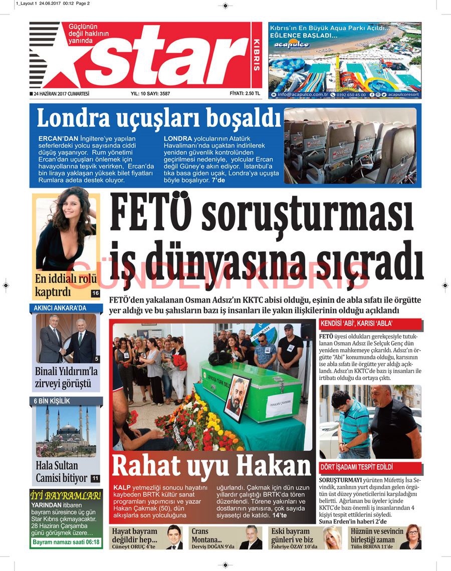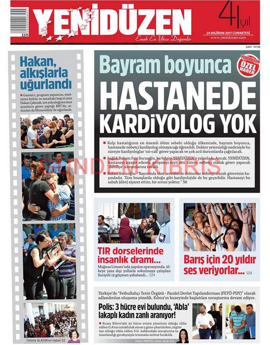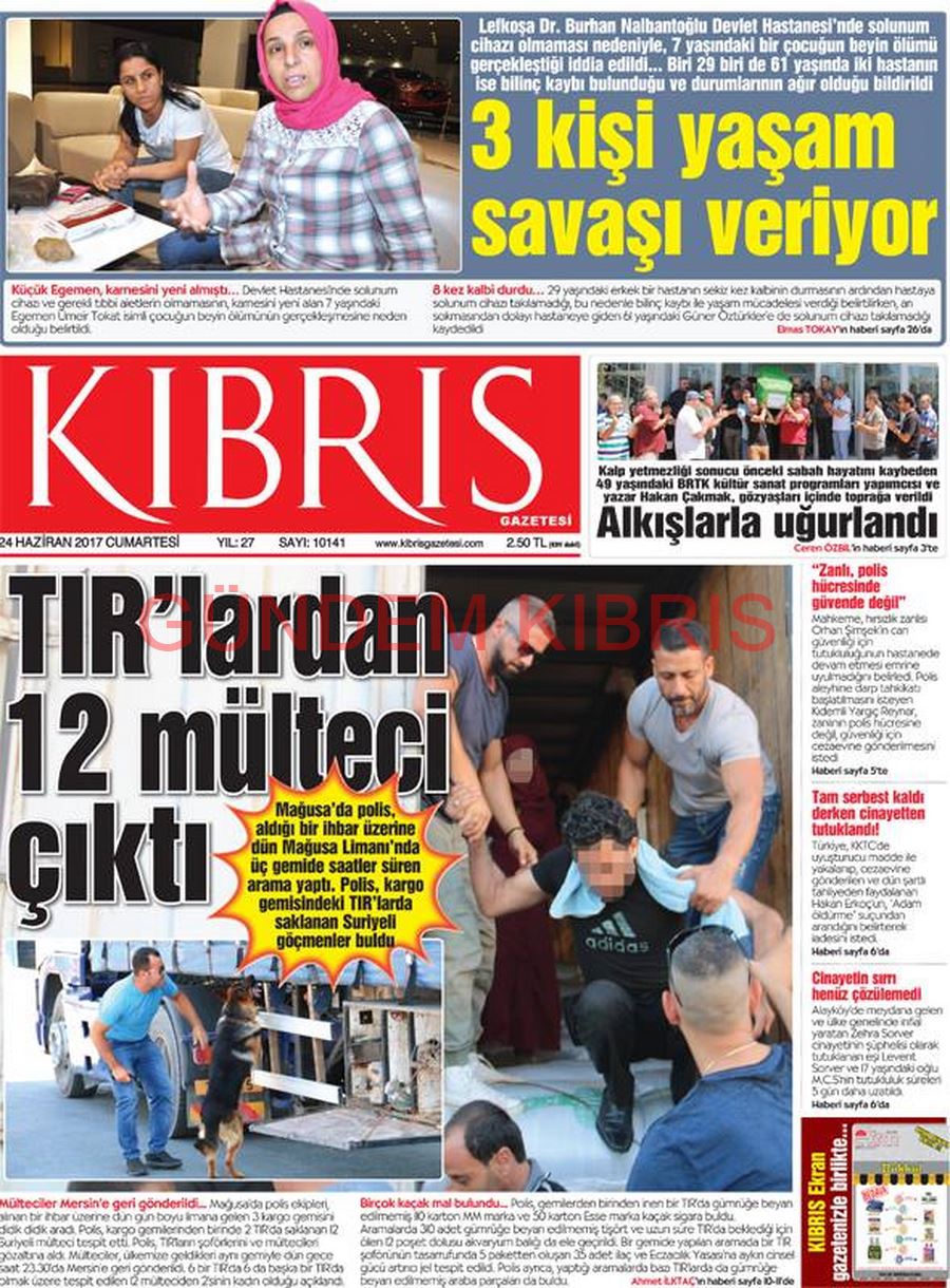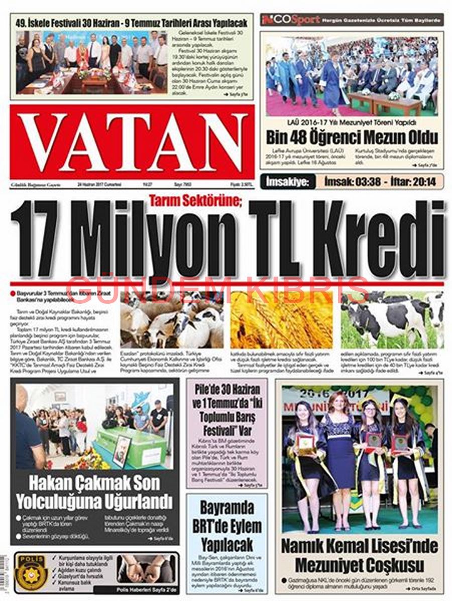 KKTC Gazete Manşetleri 24 Haziran 2017
