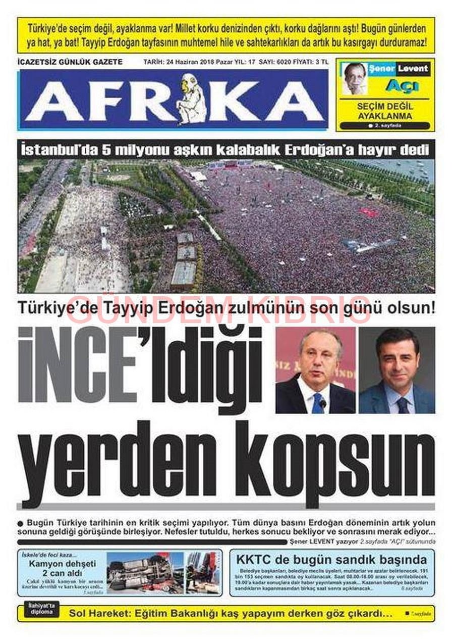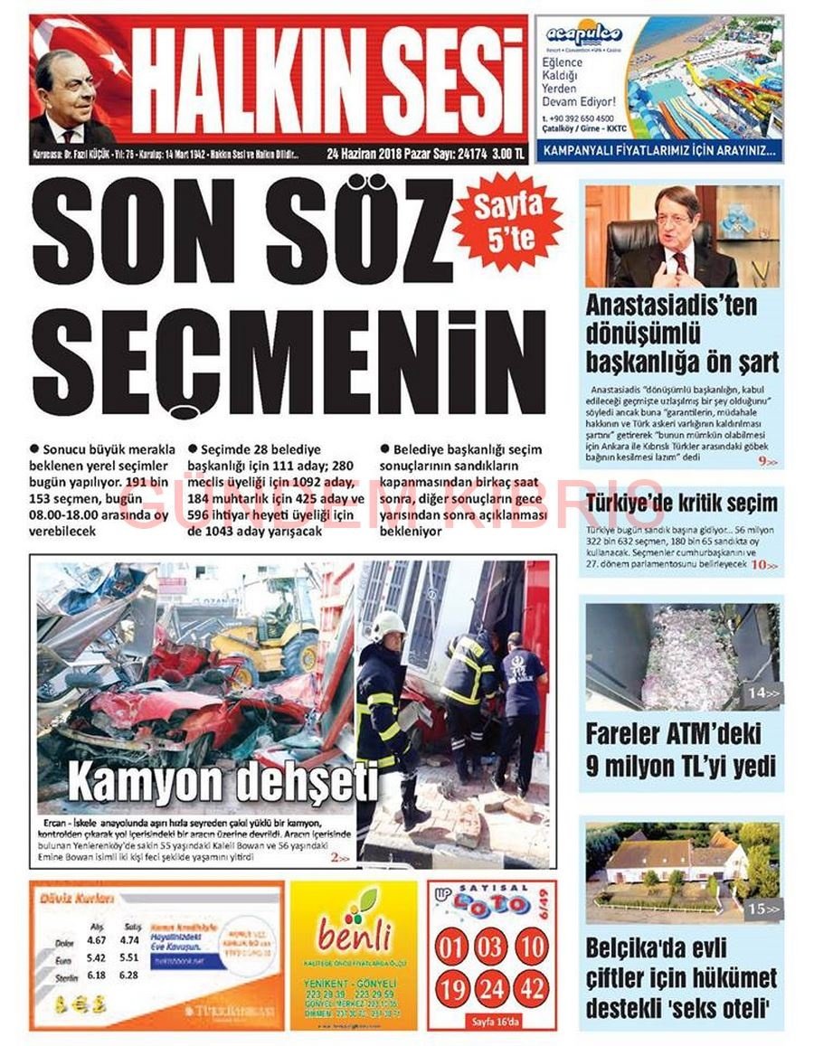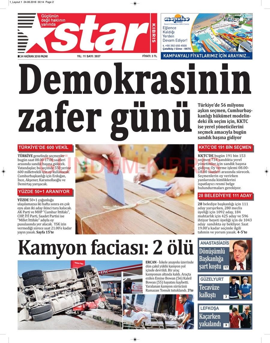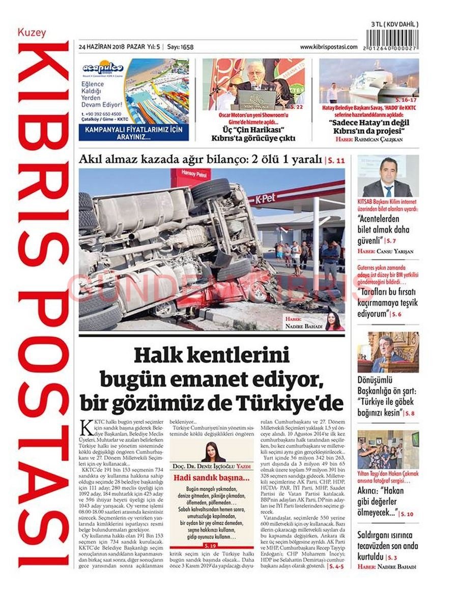 KKTC Gazete Manşetleri 24 Haziran 2018