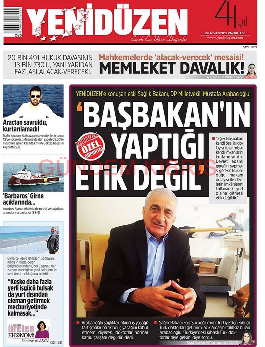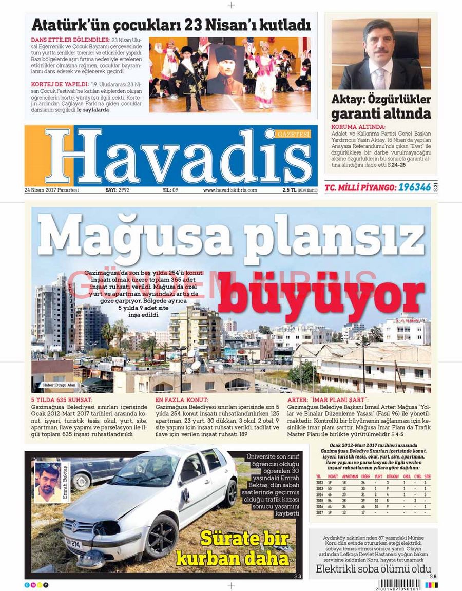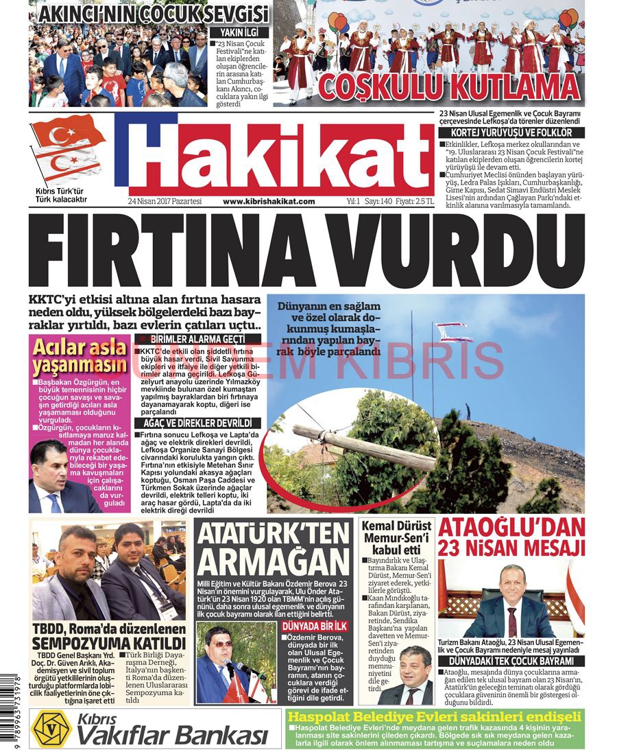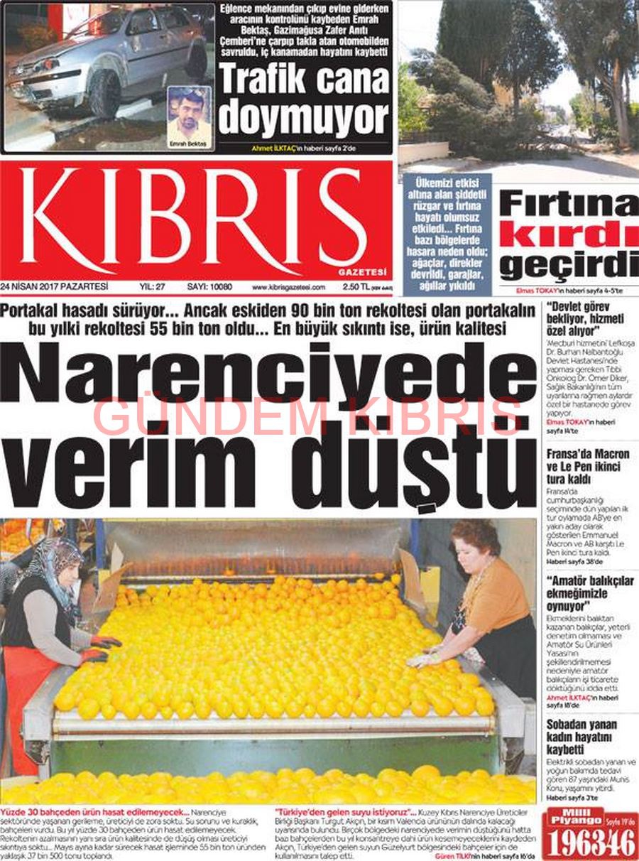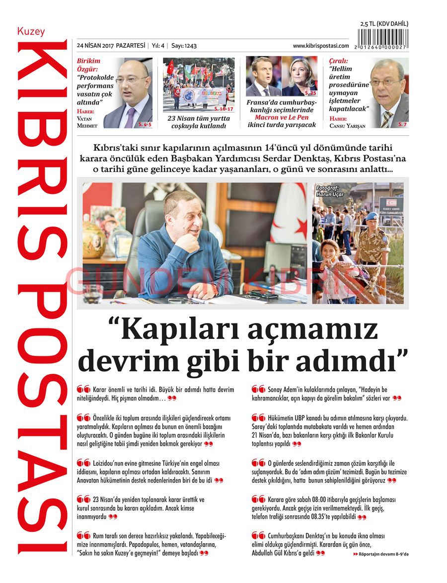KKTC Gazete Manşetleri 24 Nisan 2017