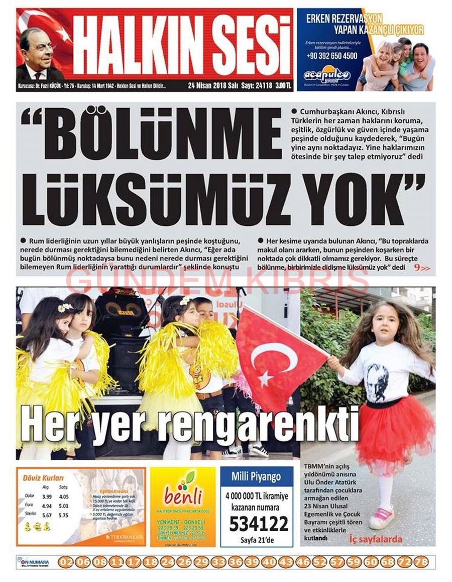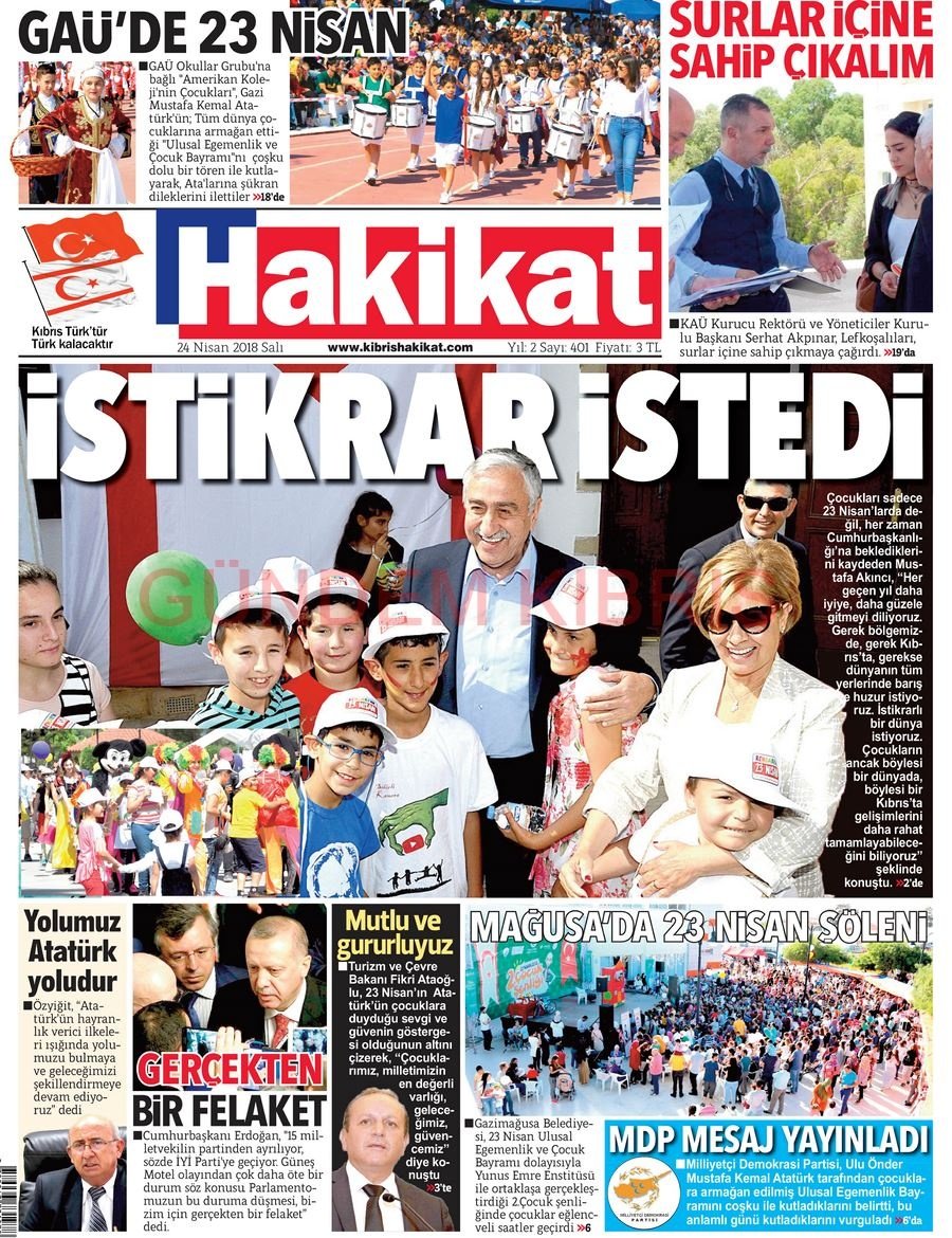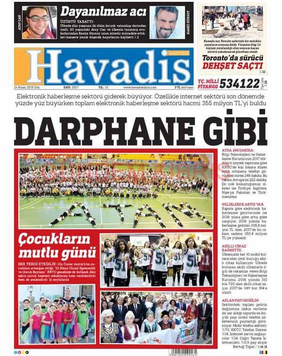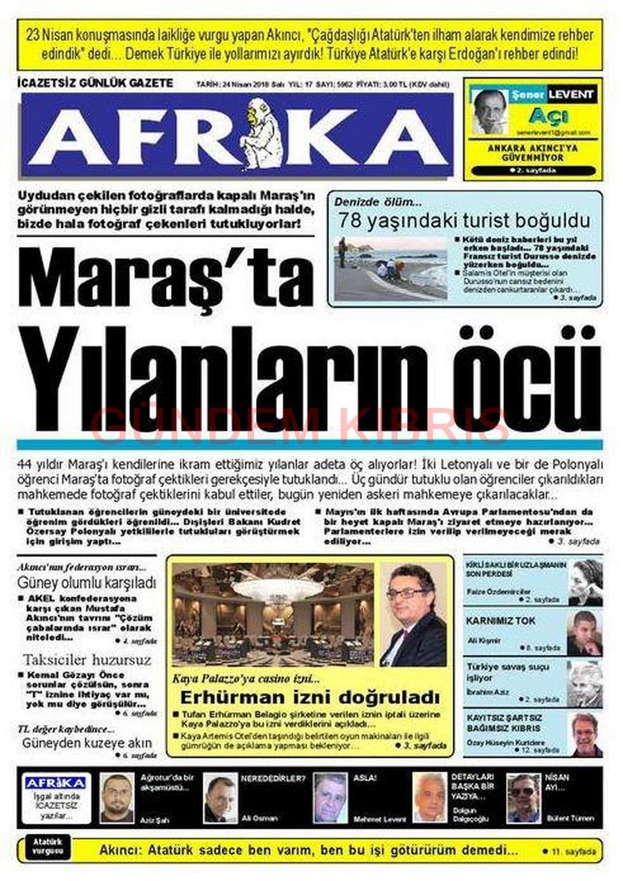 KKTC Gazete Manşetleri 24 Nisan 2018