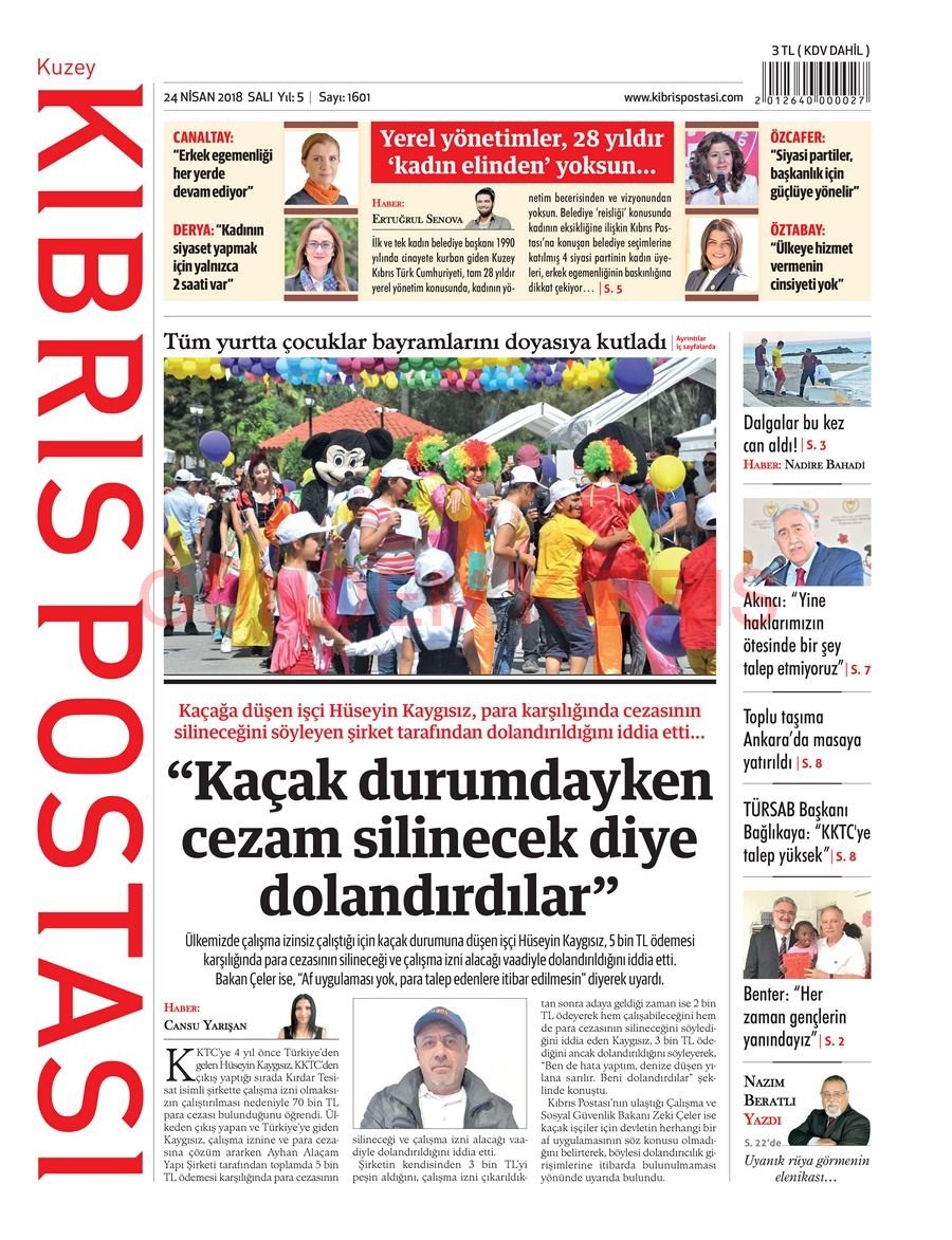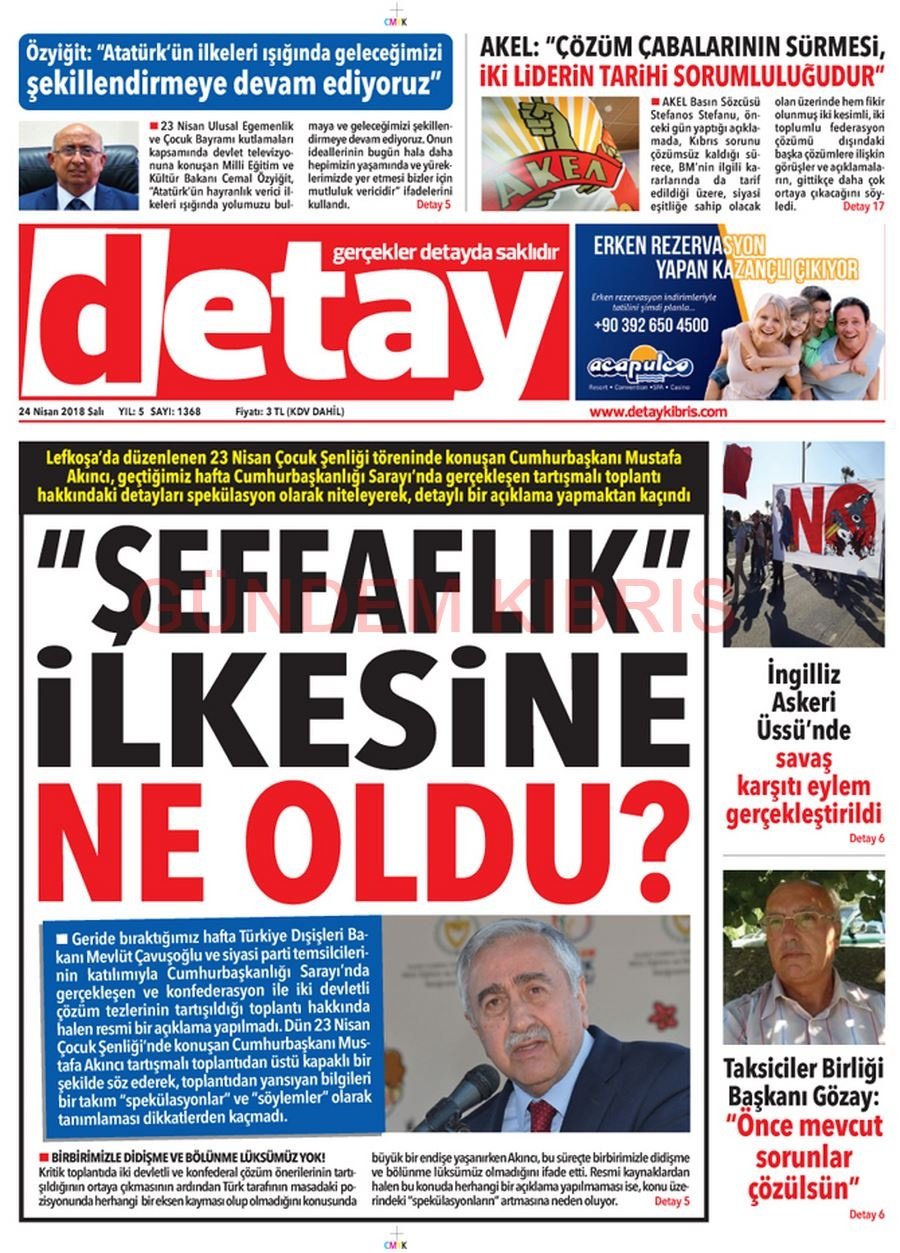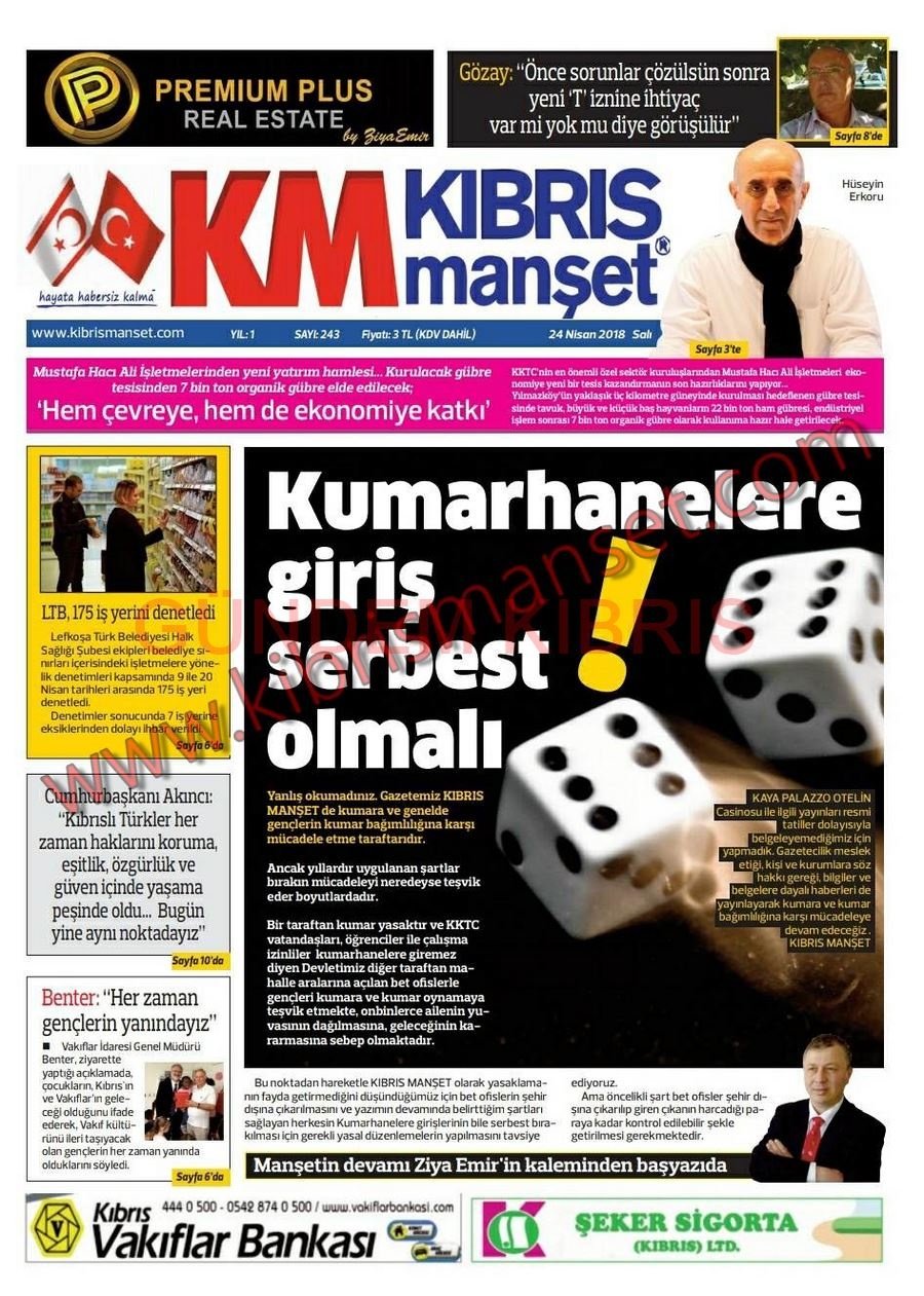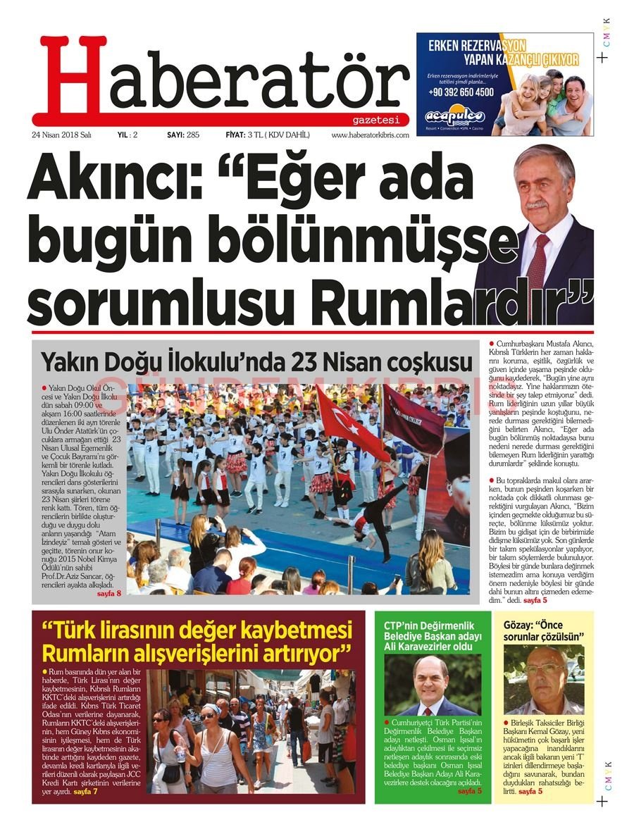 KKTC Gazete Manşetleri 24 Nisan 2018