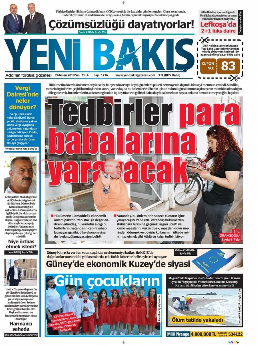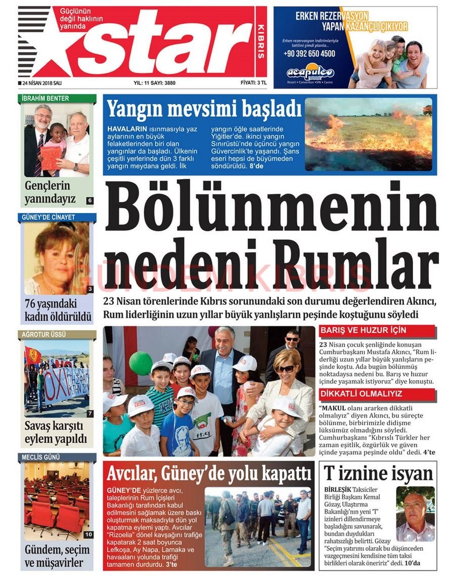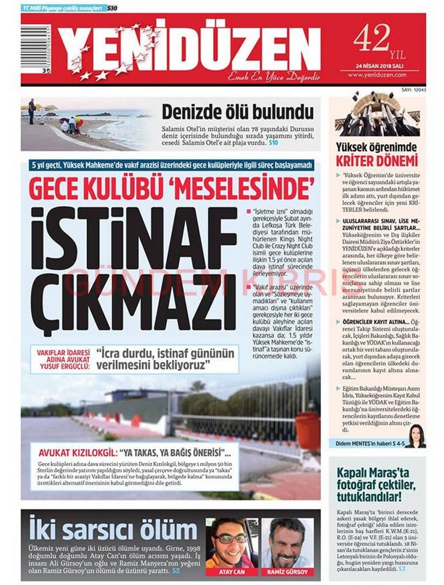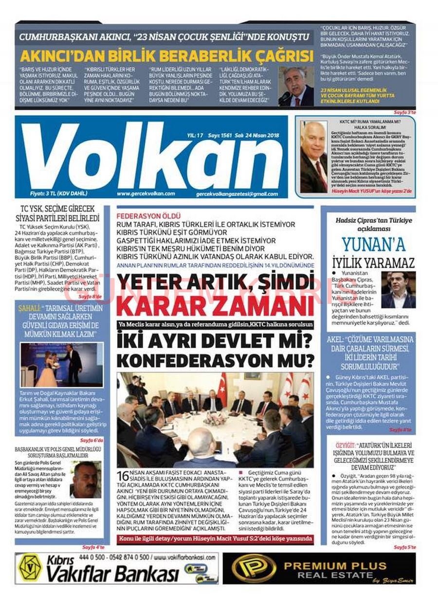 KKTC Gazete Manşetleri 24 Nisan 2018