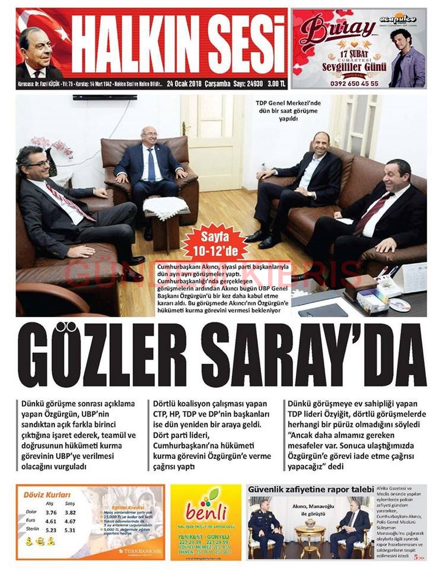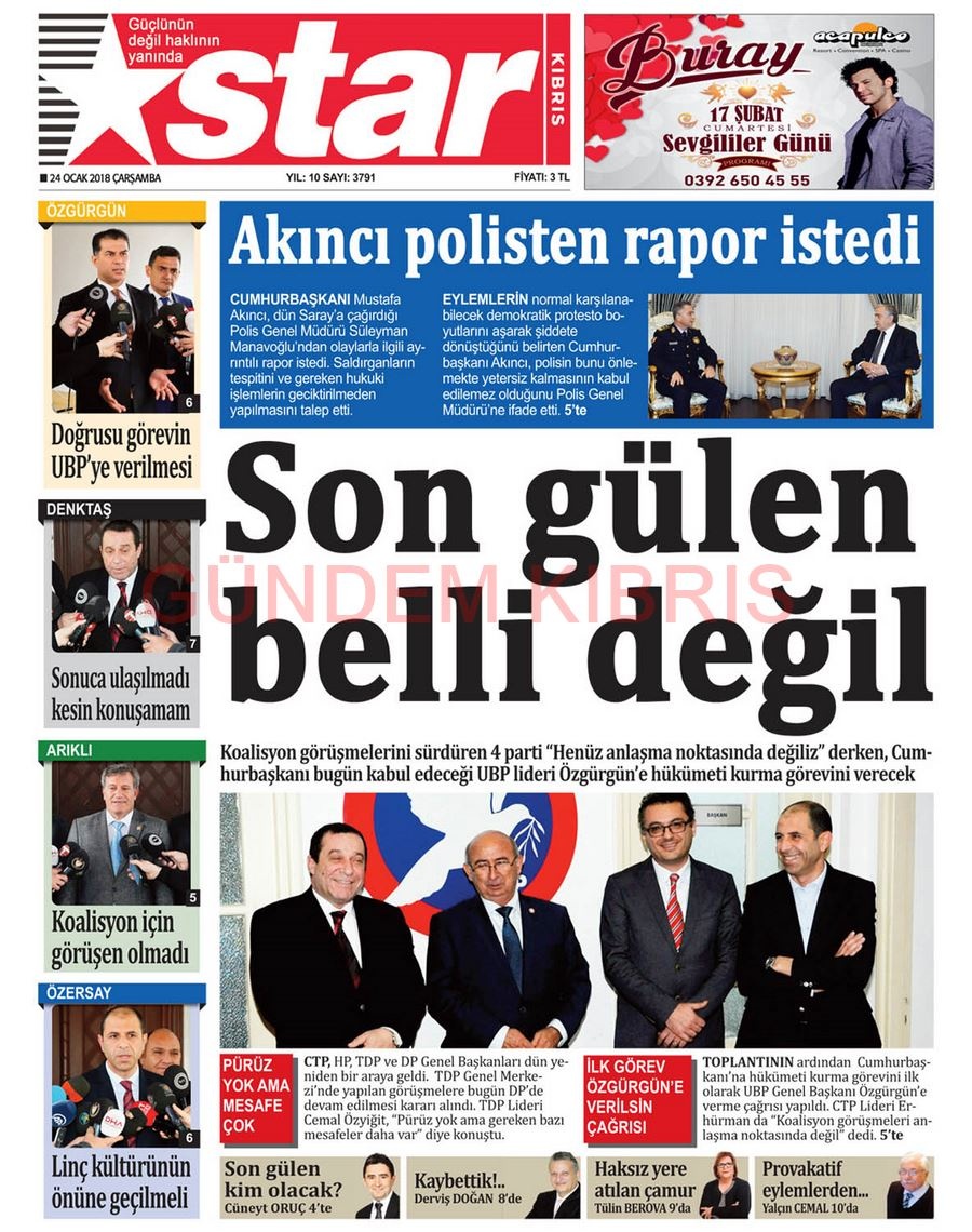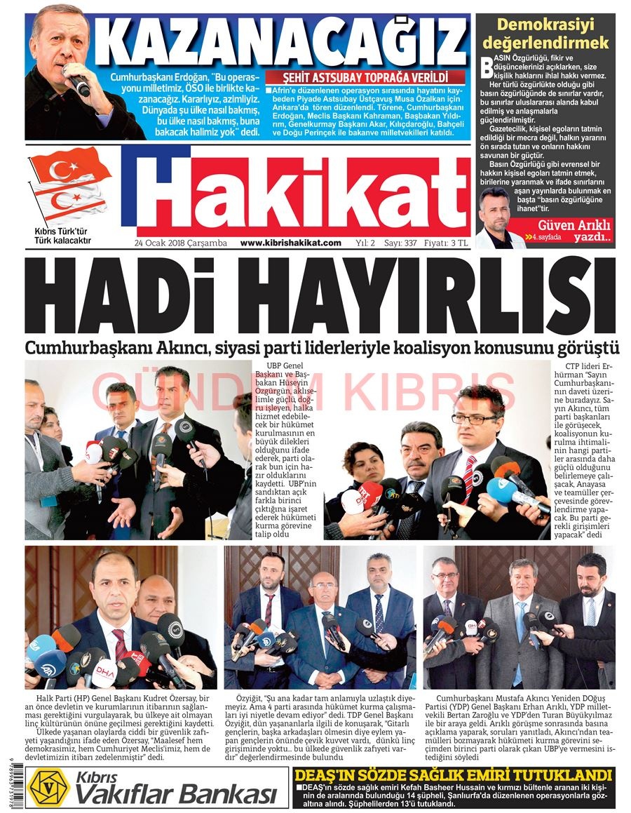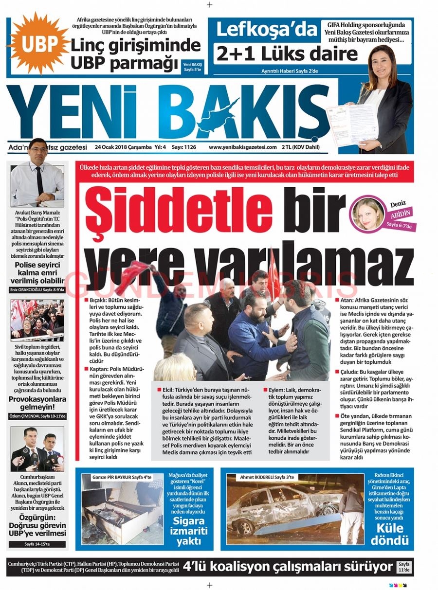 KKTC Gazete Manşetleri 24 Ocak 2018
