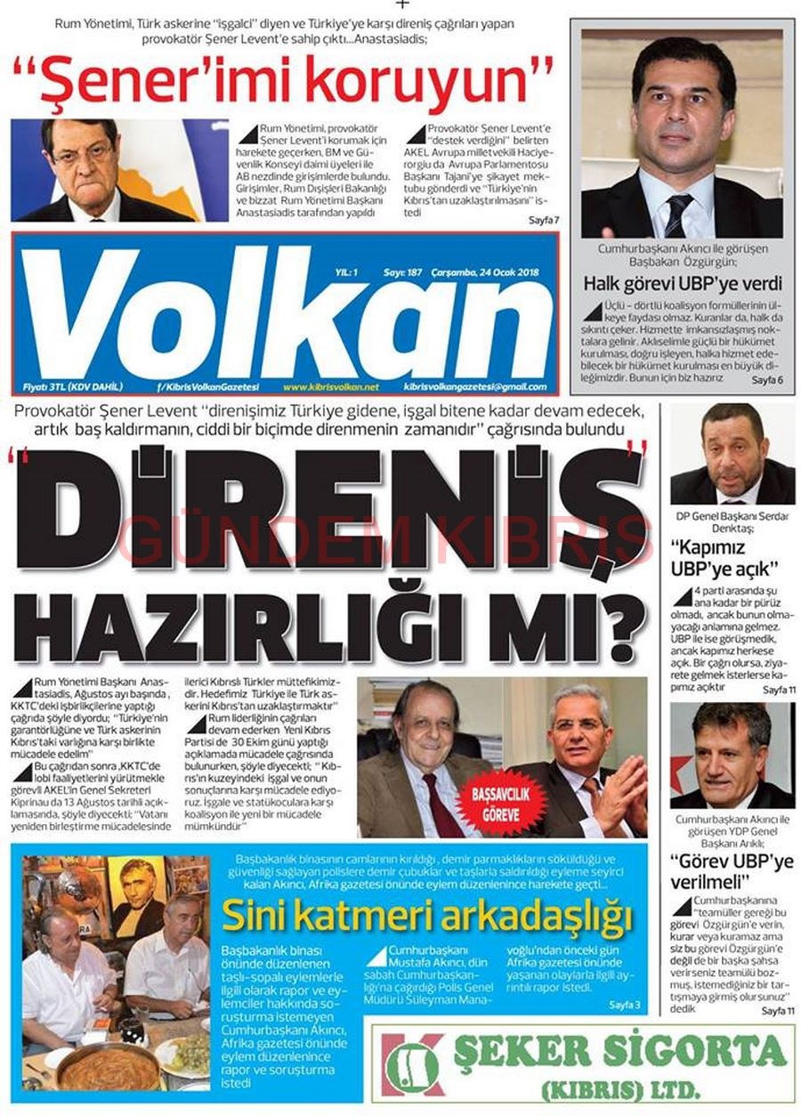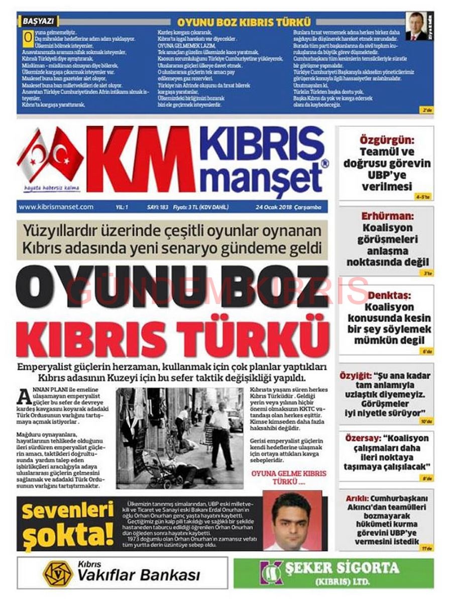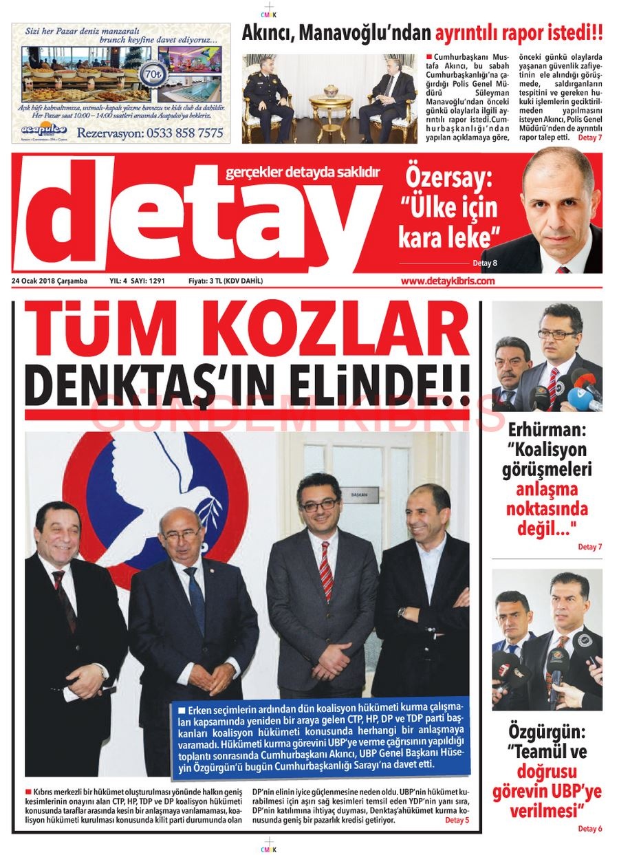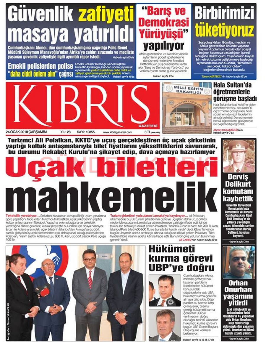 KKTC Gazete Manşetleri 24 Ocak 2018