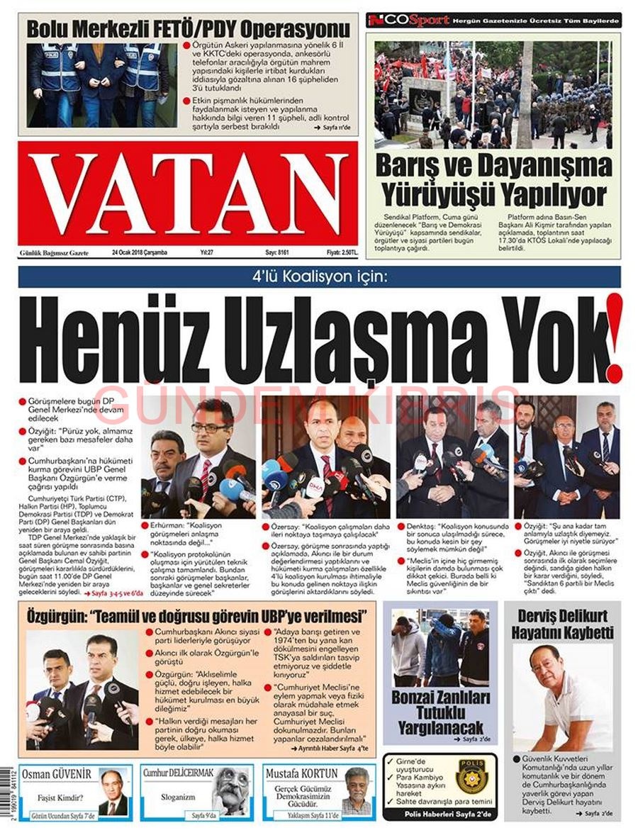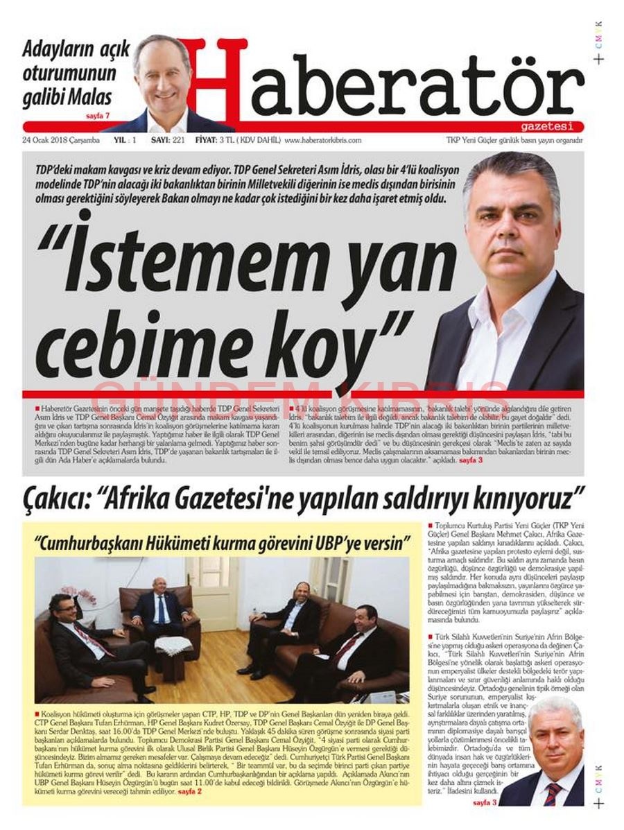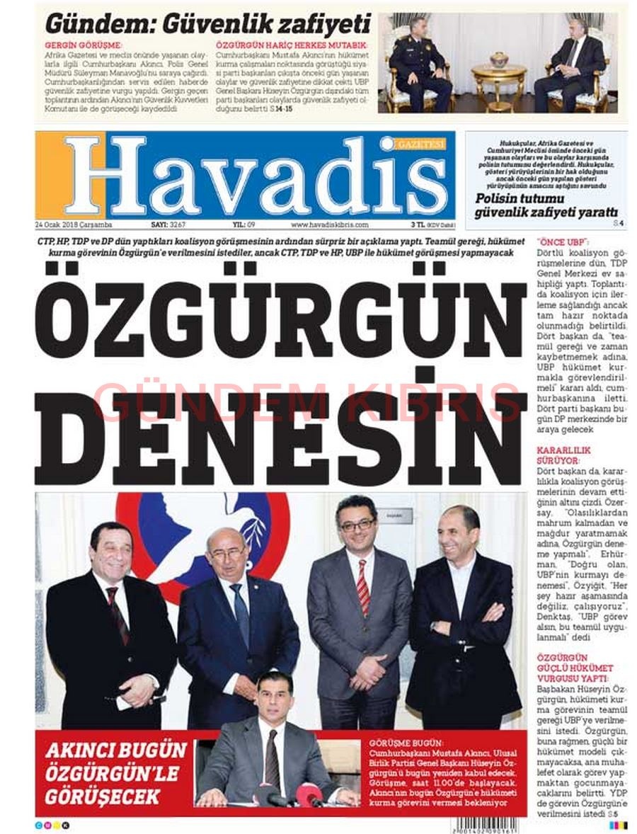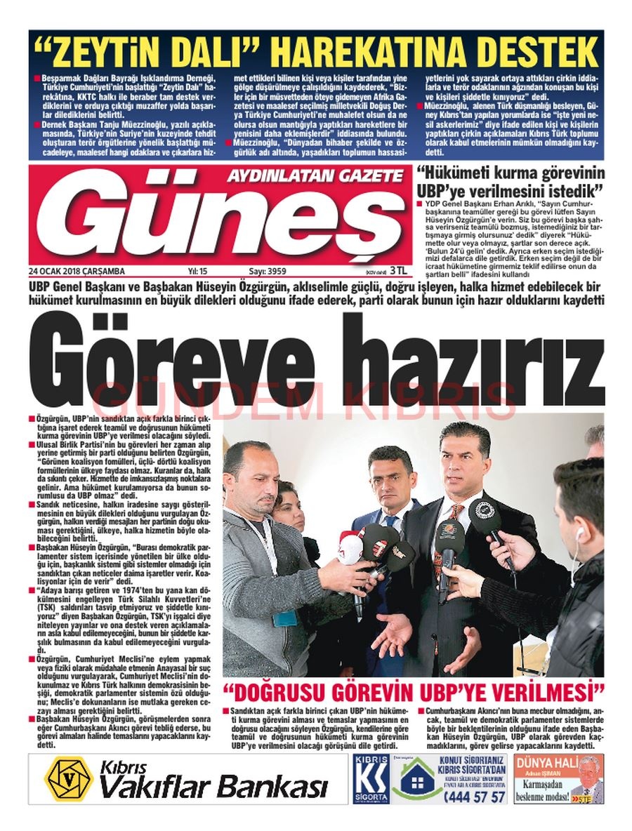 KKTC Gazete Manşetleri 24 Ocak 2018