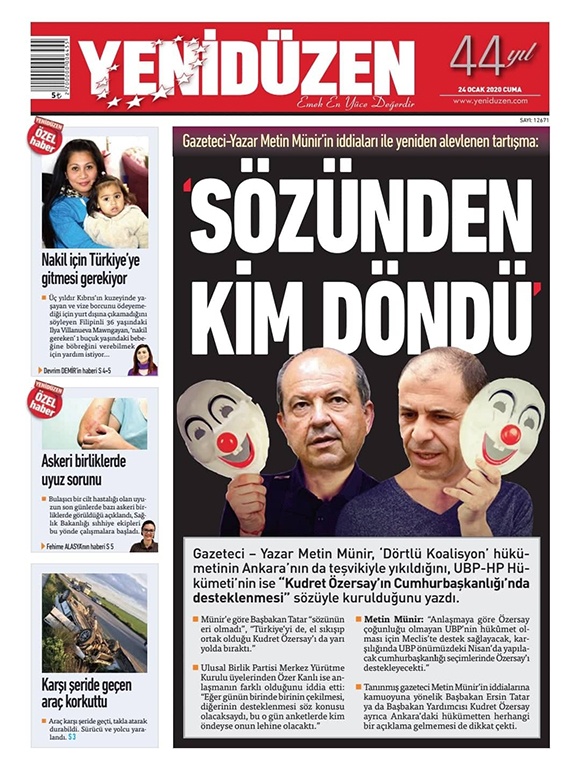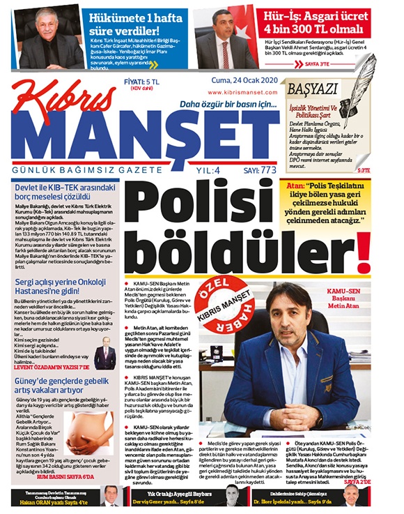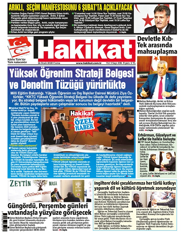 KKTC Gazete Manşetleri 24 Ocak 2020