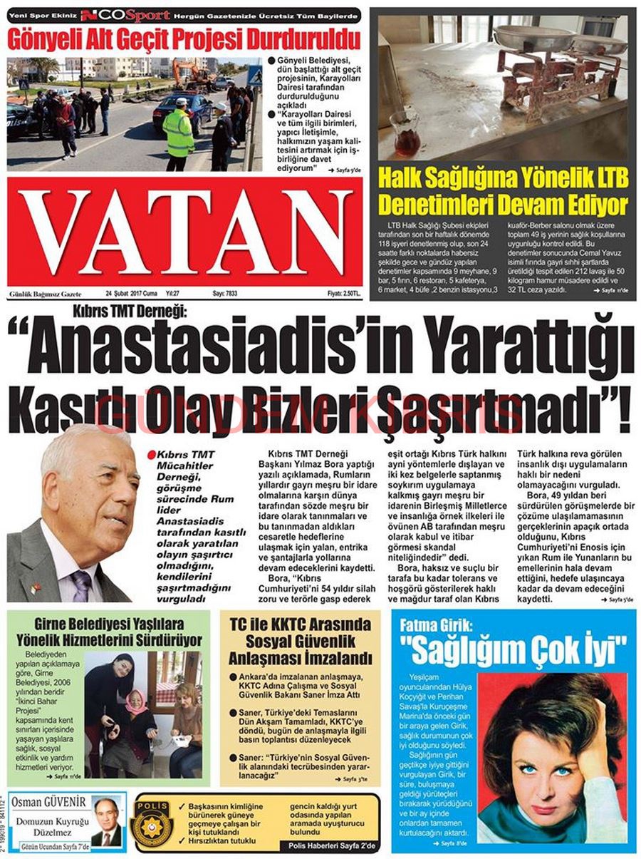 KKTC Gazete Manşetleri 24 Şubat 2017