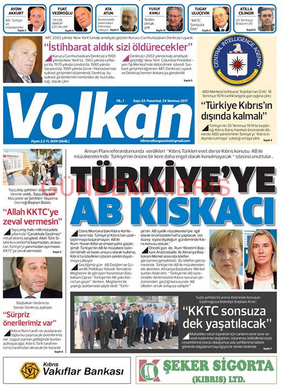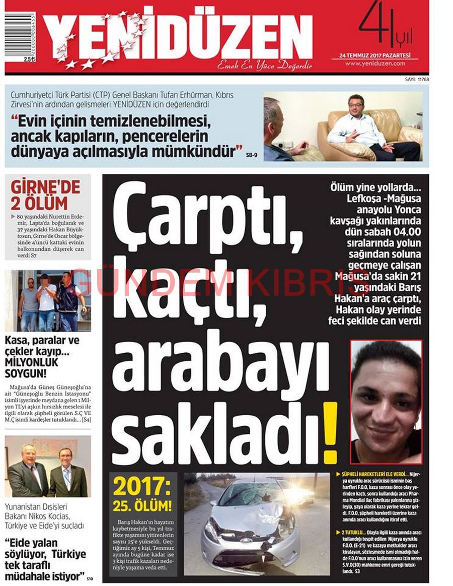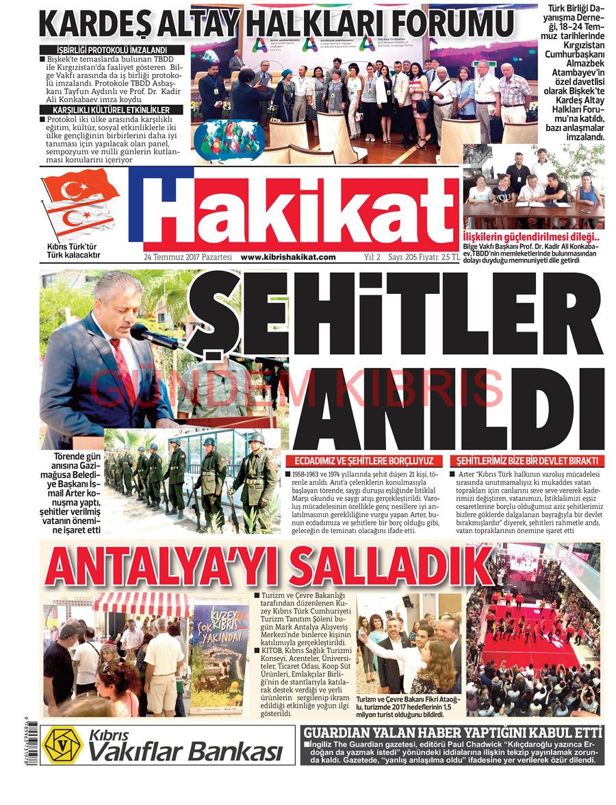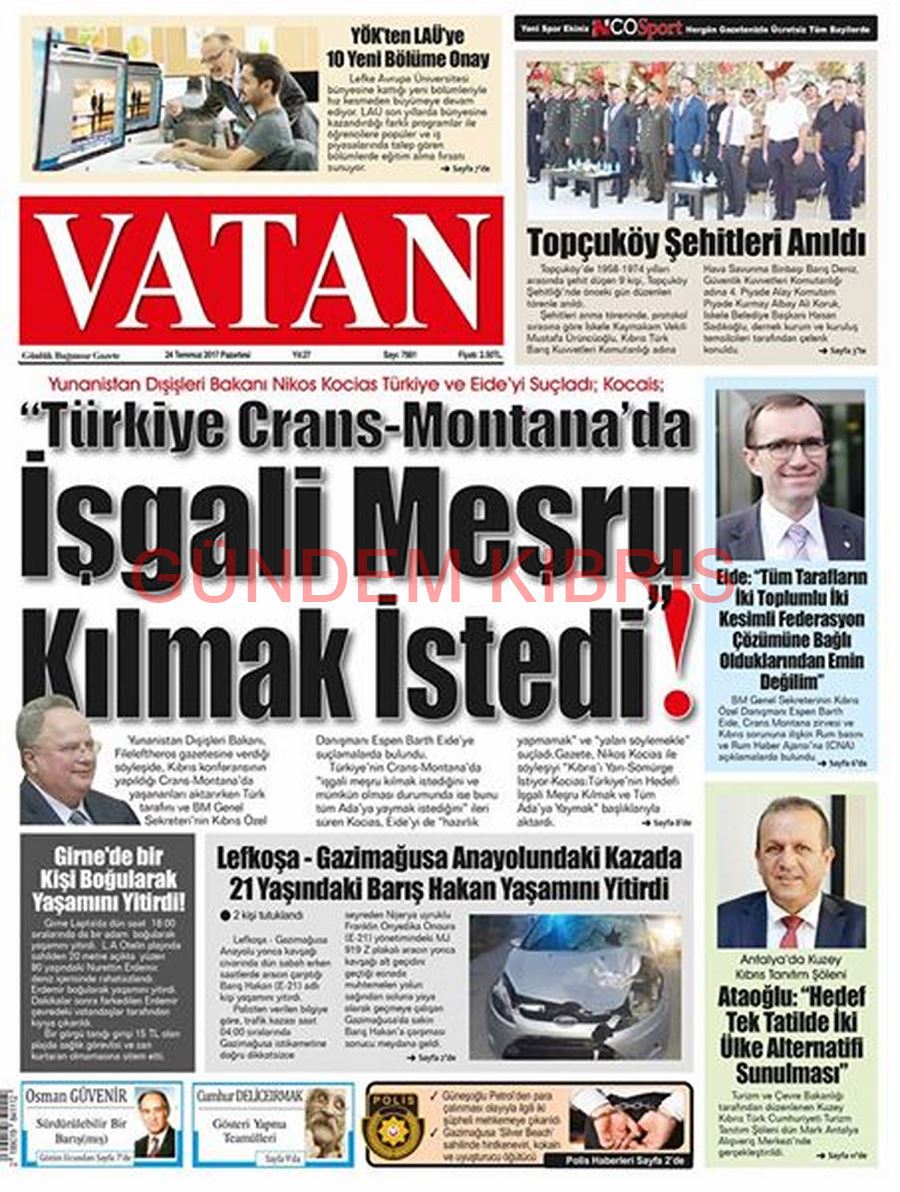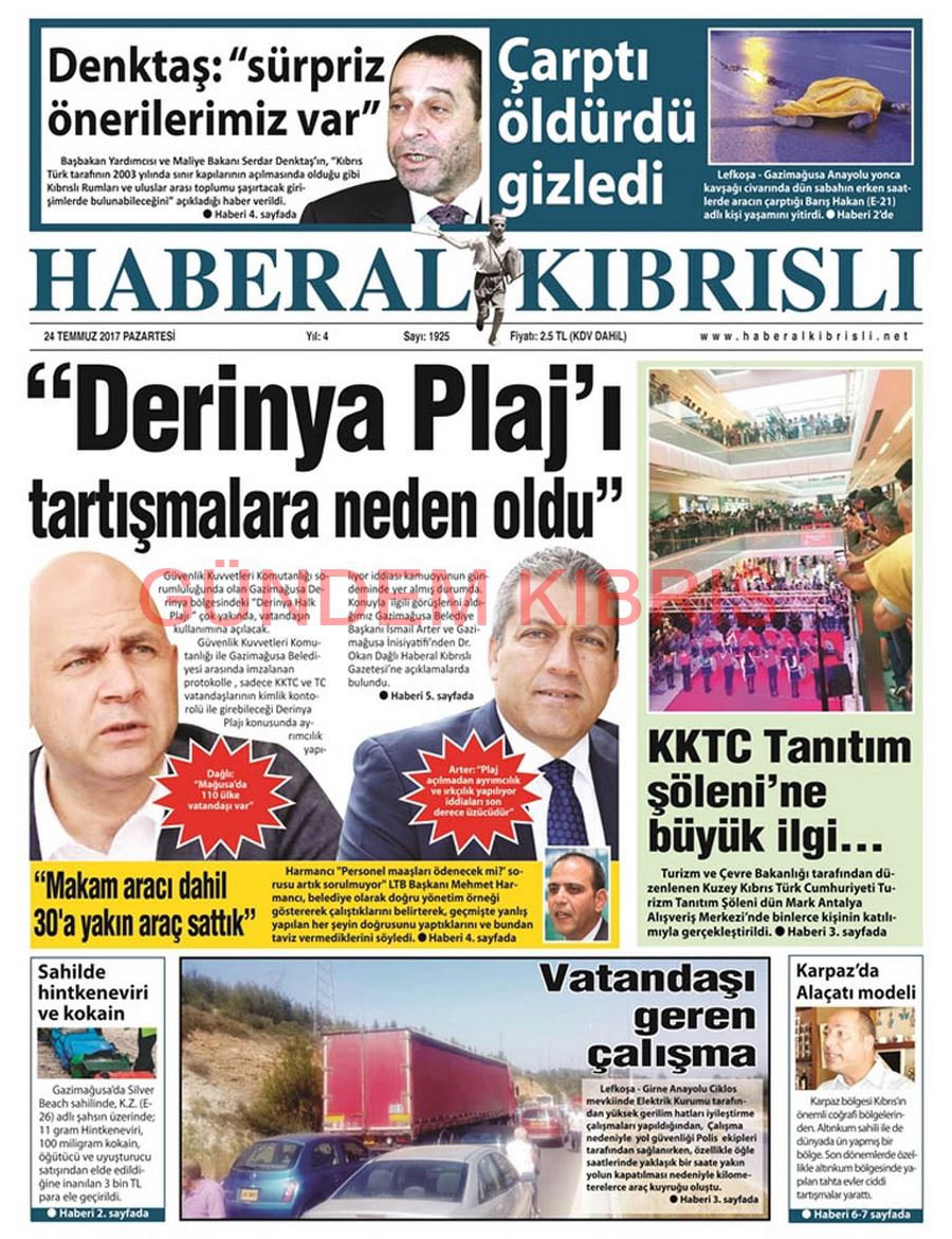 KKTC Gazete Manşetleri 24 Temmuz 2017