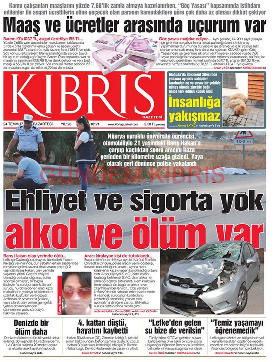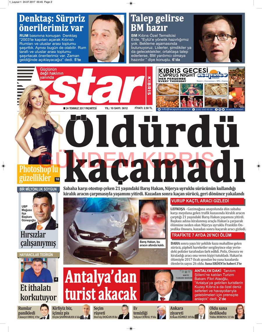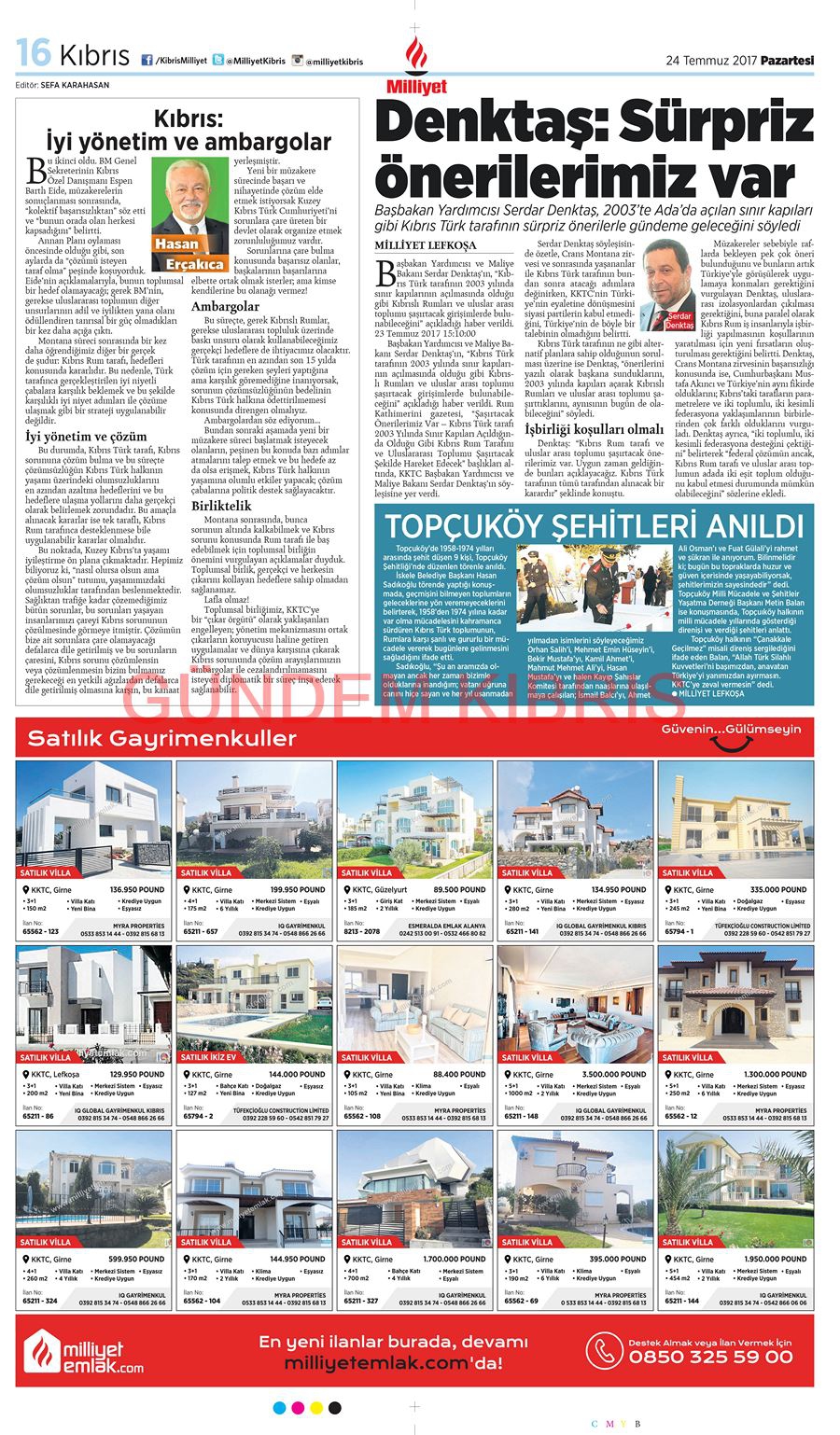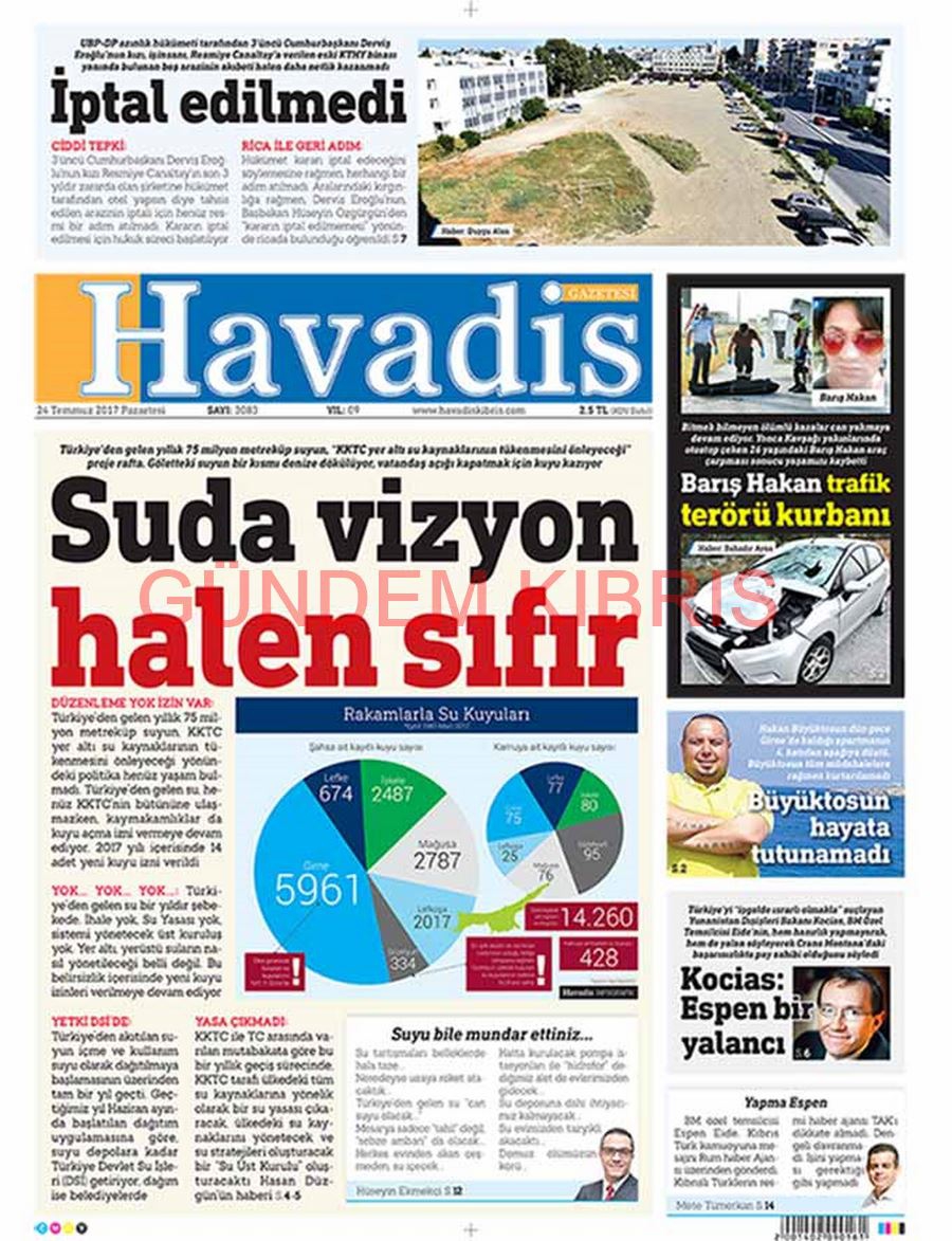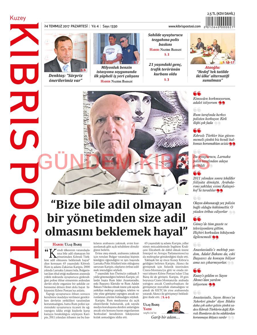 KKTC Gazete Manşetleri 24 Temmuz 2017