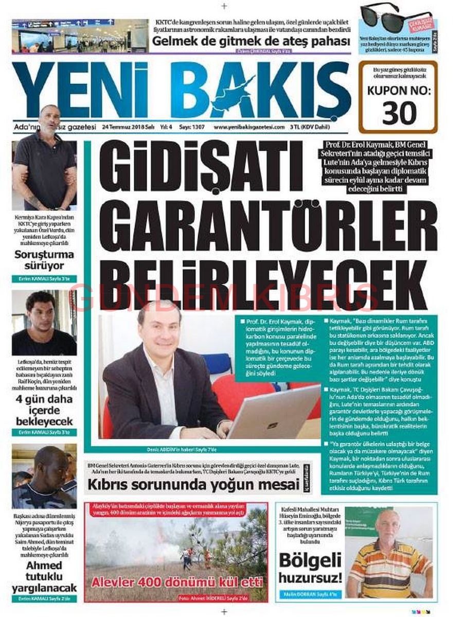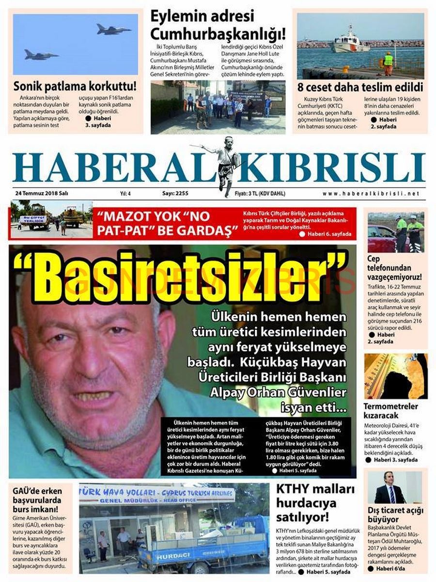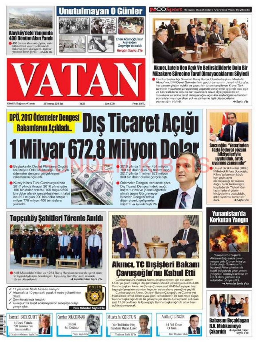 KKTC Gazete Manşetleri 24 Temmuz 2018