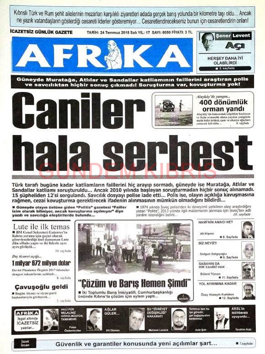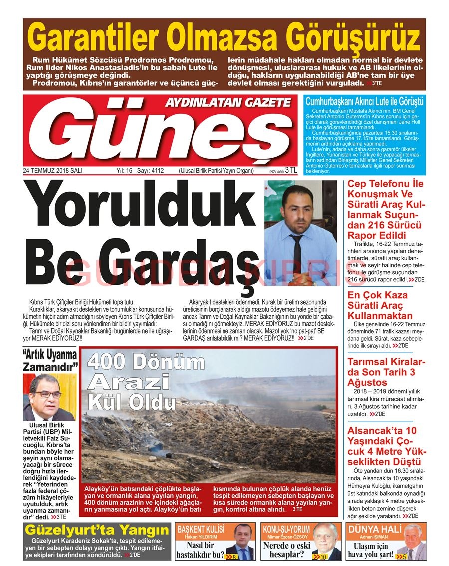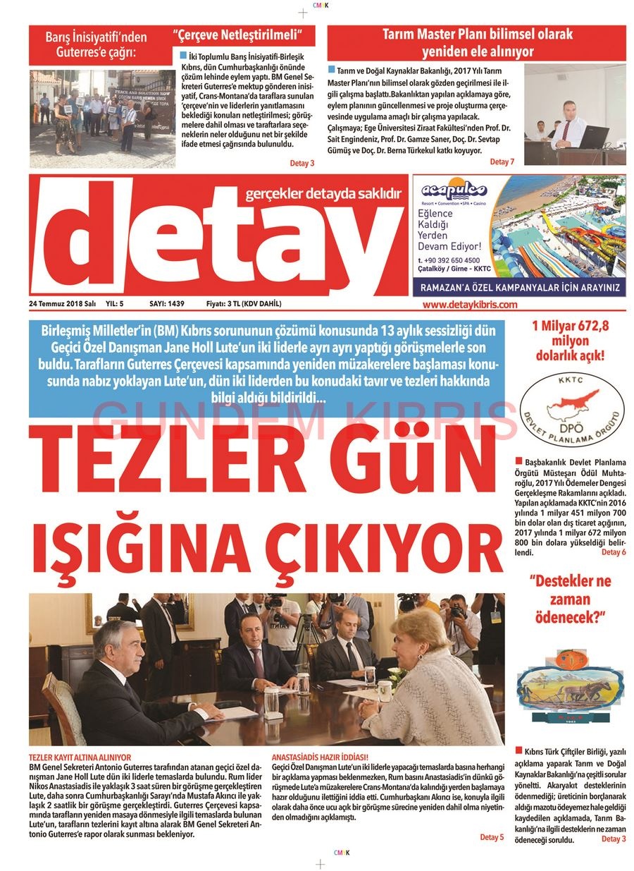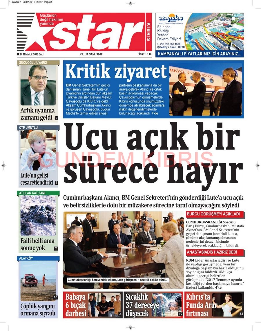 KKTC Gazete Manşetleri 24 Temmuz 2018