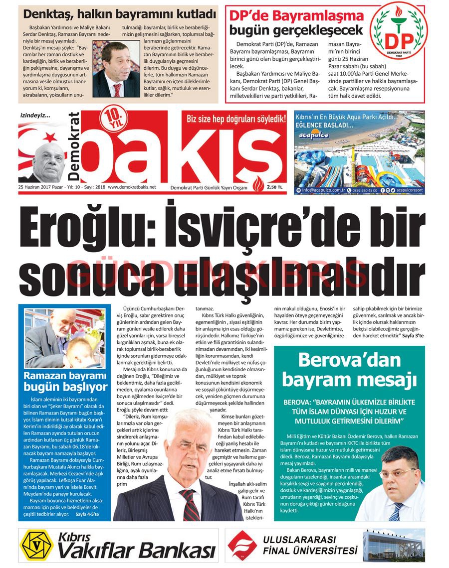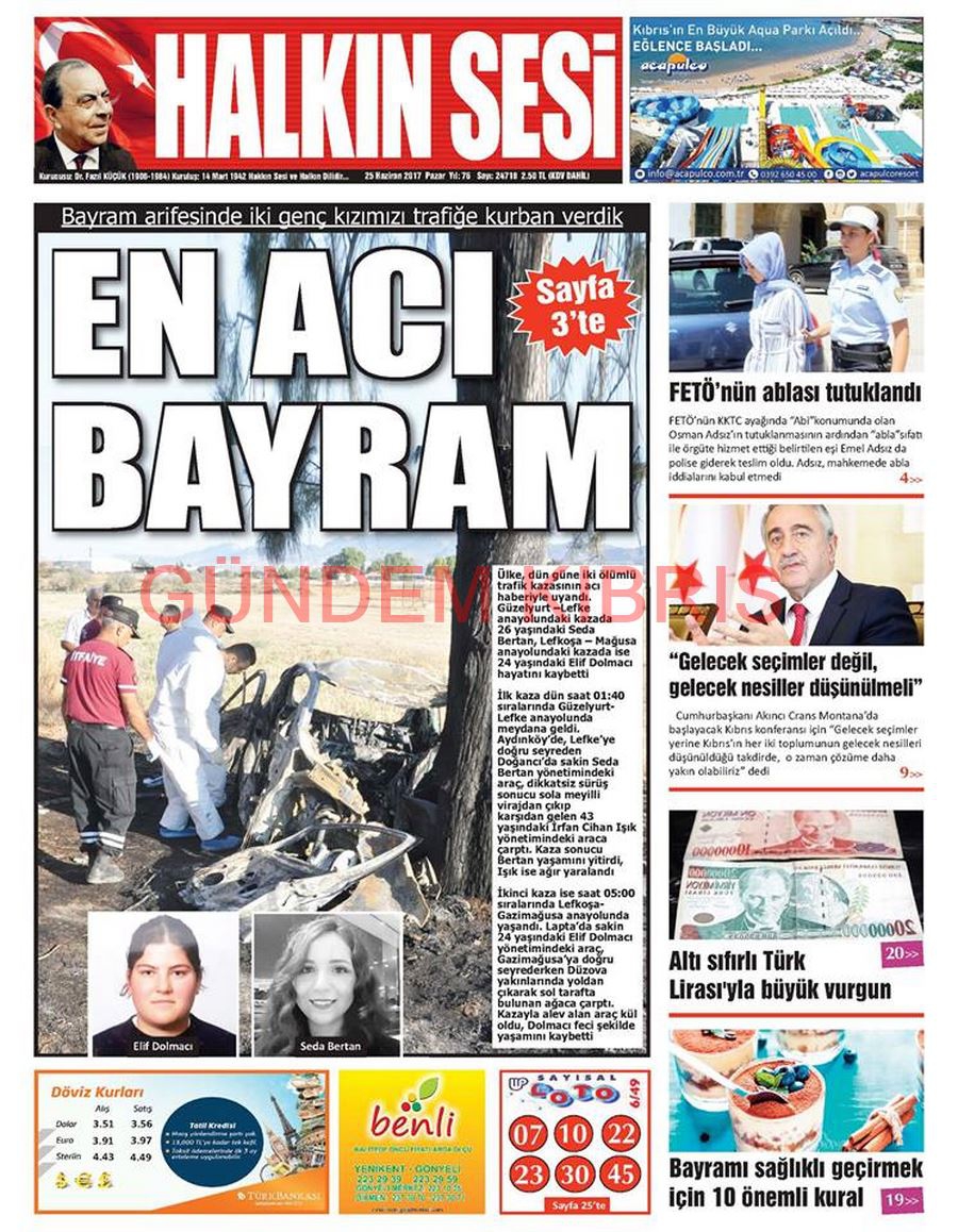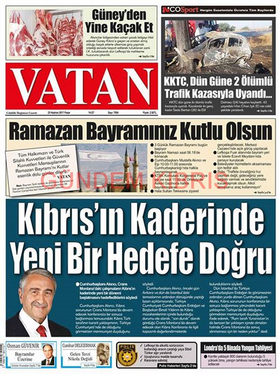 KKTC Gazete Manşetleri 25 Haziran 2017