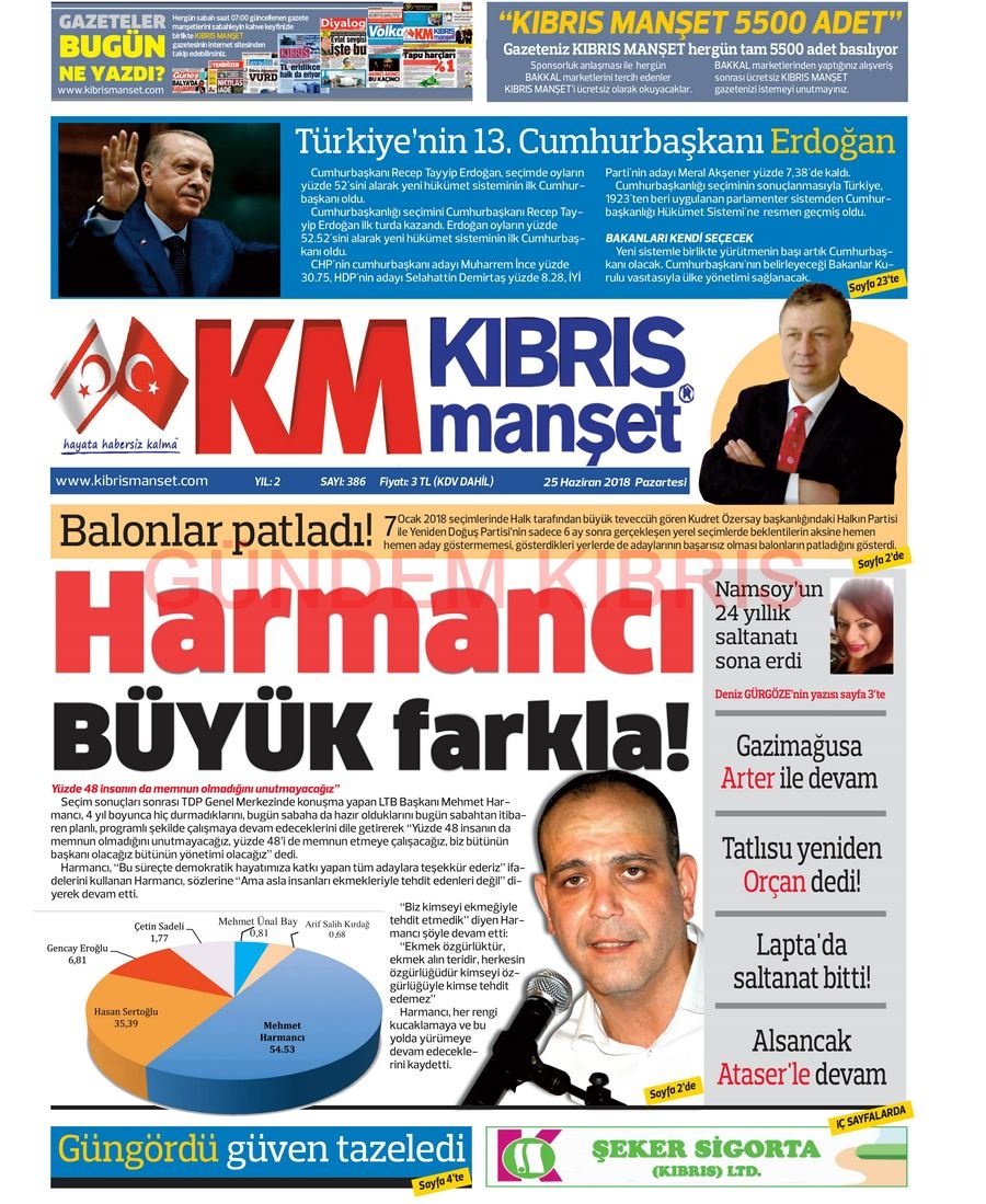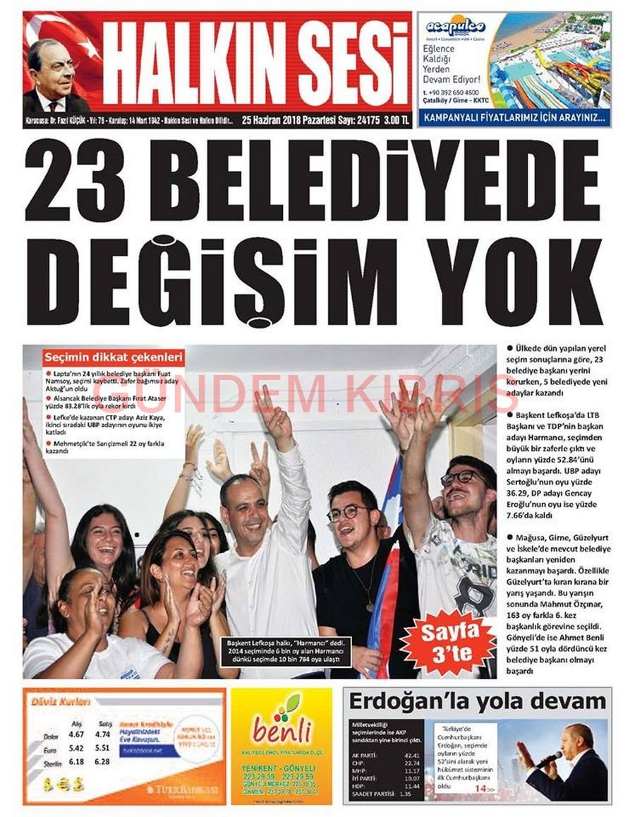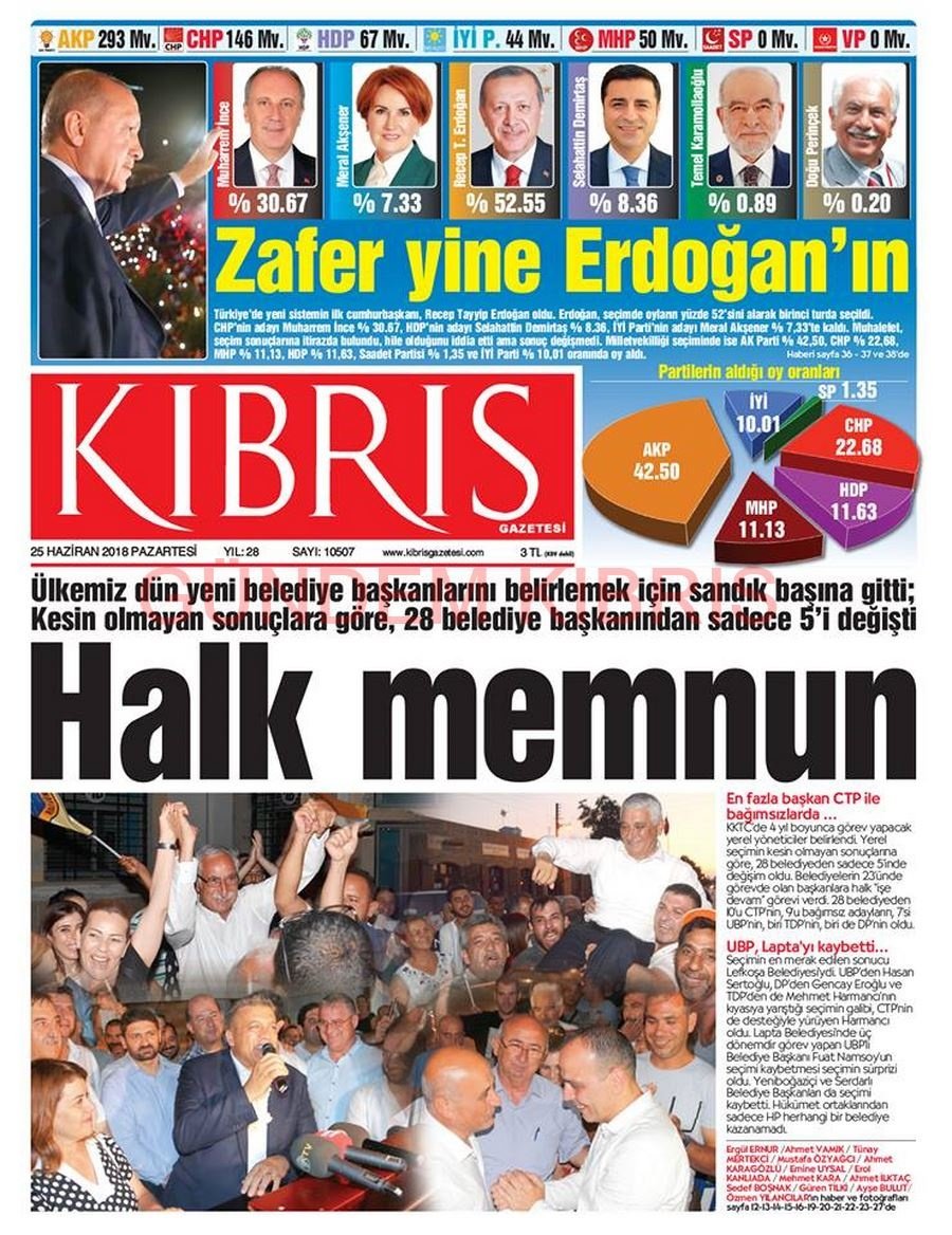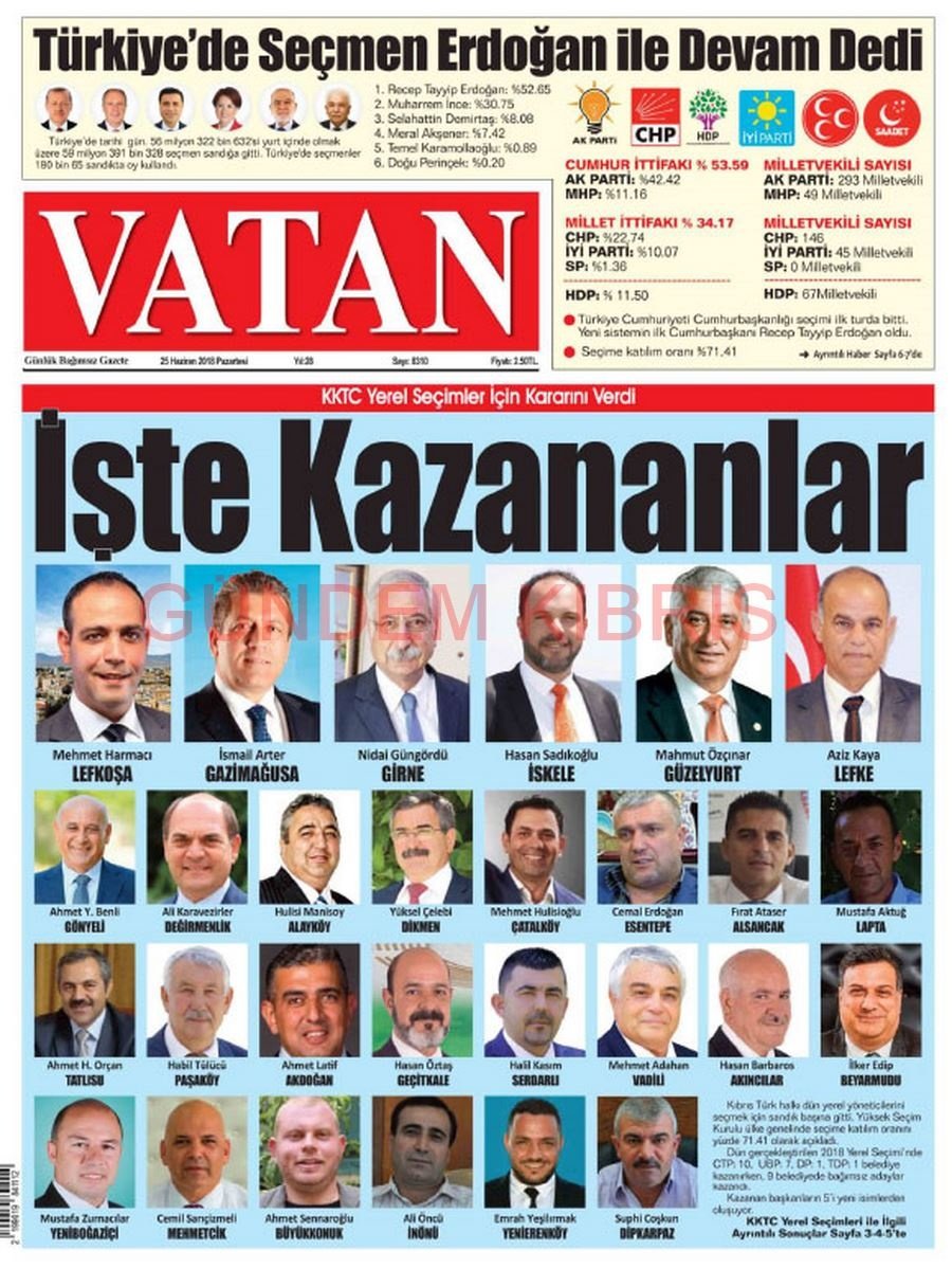 KKTC Gazete Manşetleri 25 Haziran 2018