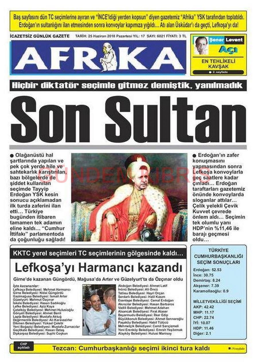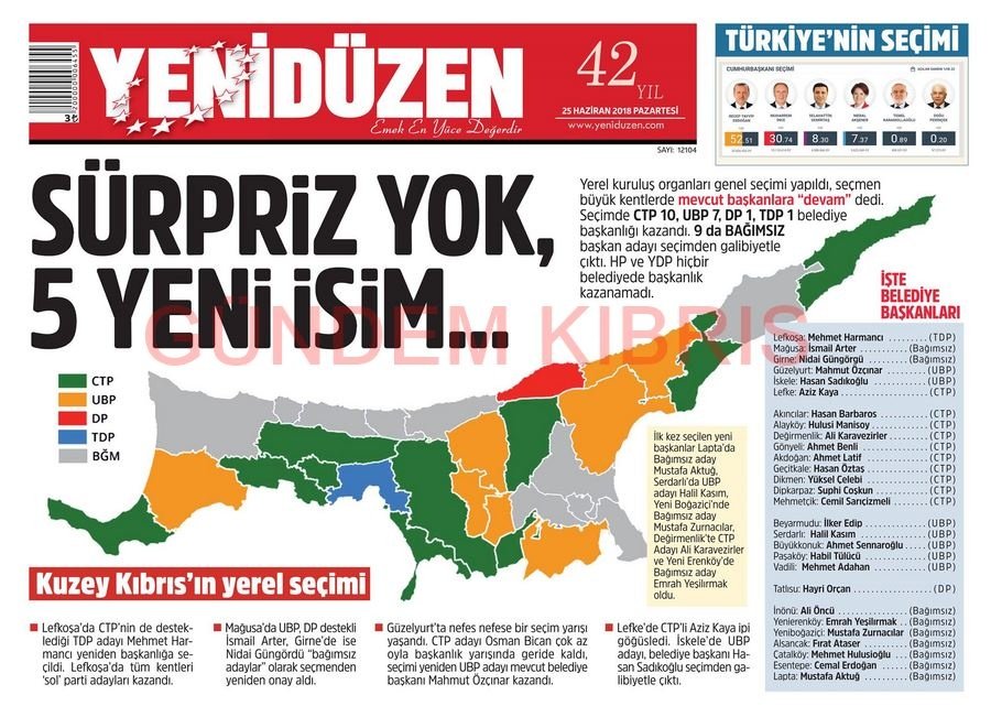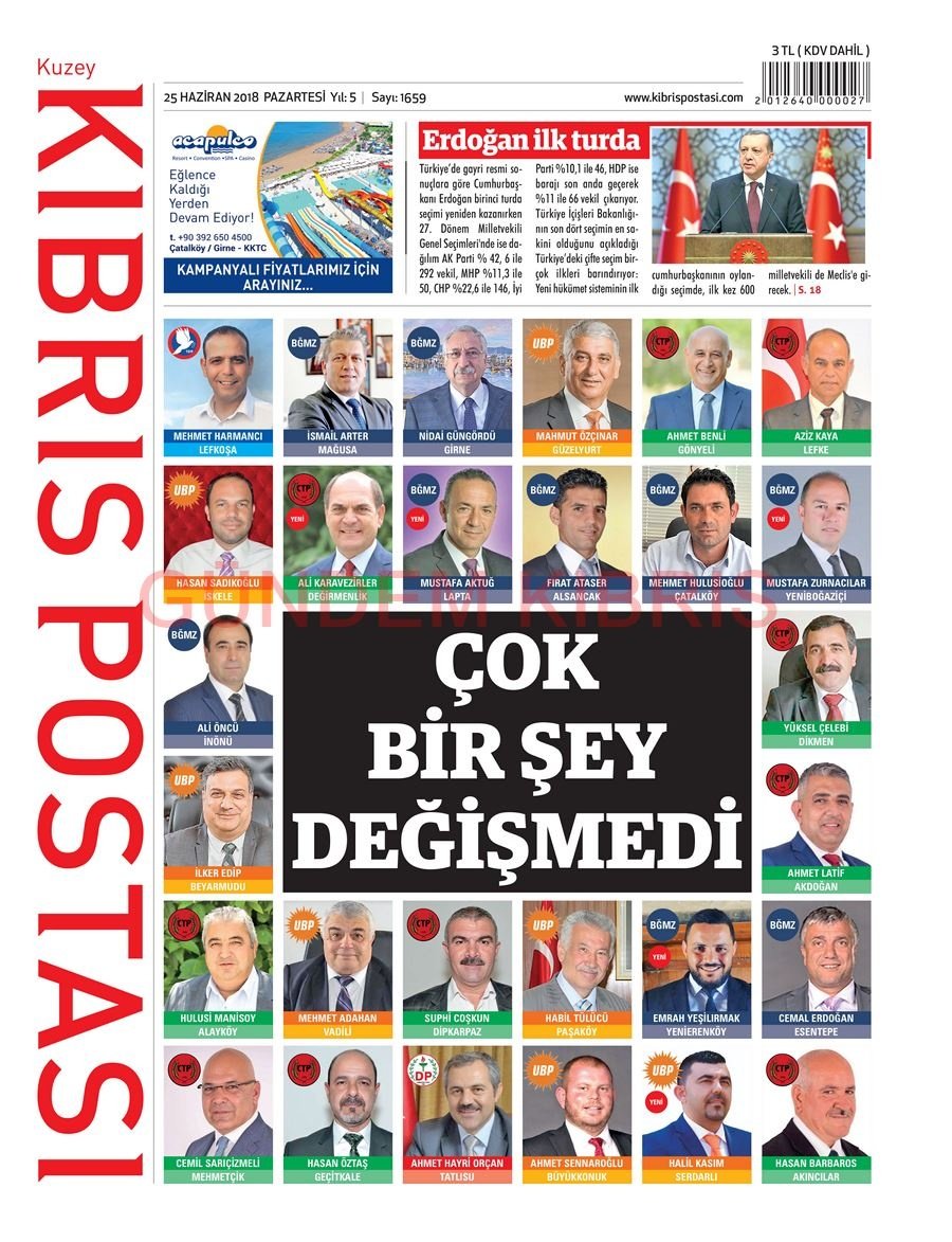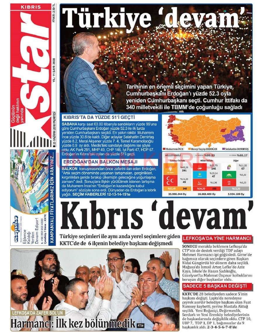 KKTC Gazete Manşetleri 25 Haziran 2018