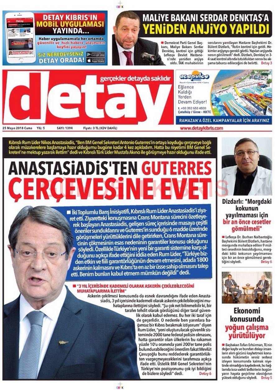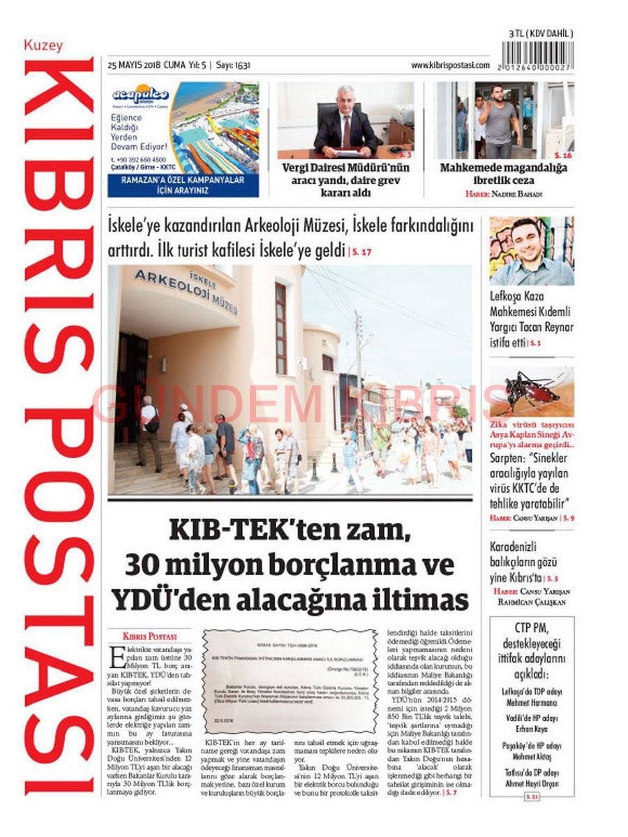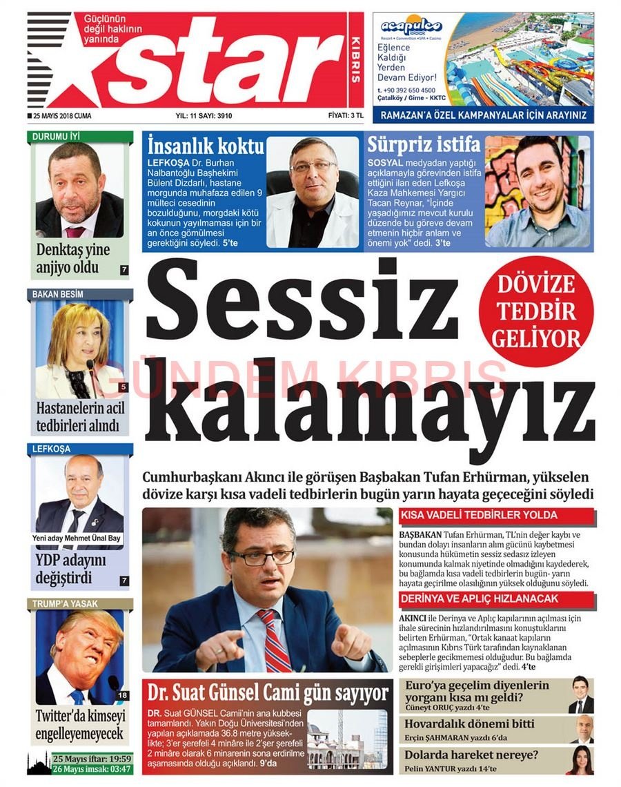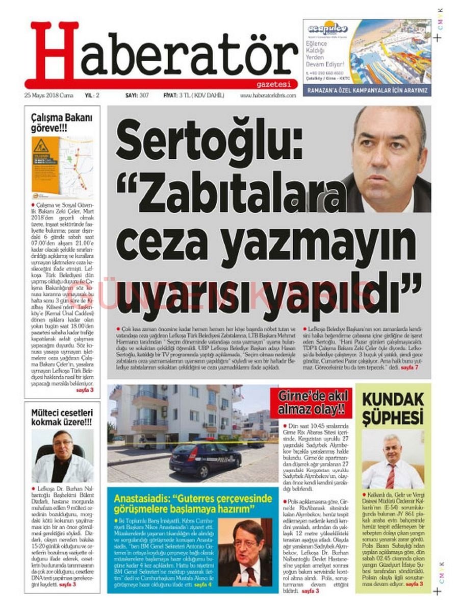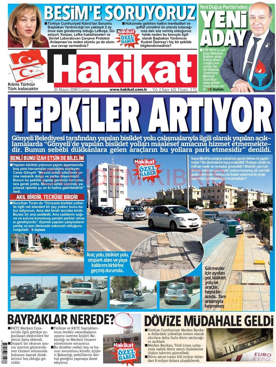KKTC Gazete Manşetleri 25 Mayıs 2018