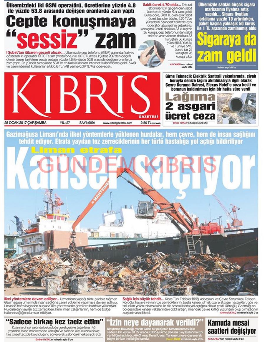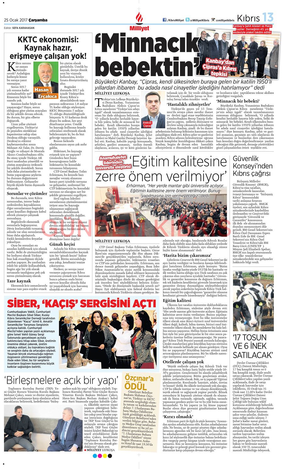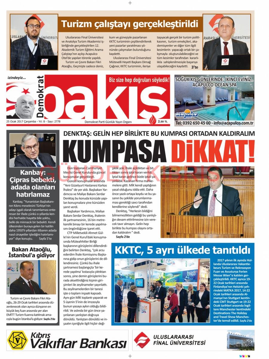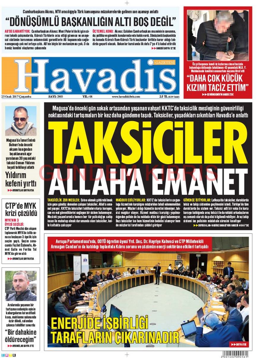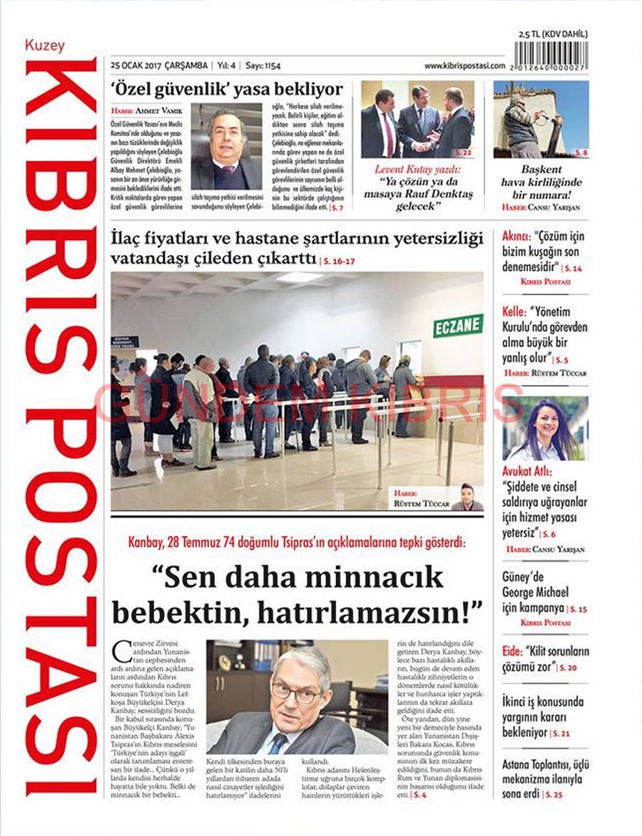KKTC Gazete Manşetleri 25 Ocak 2017