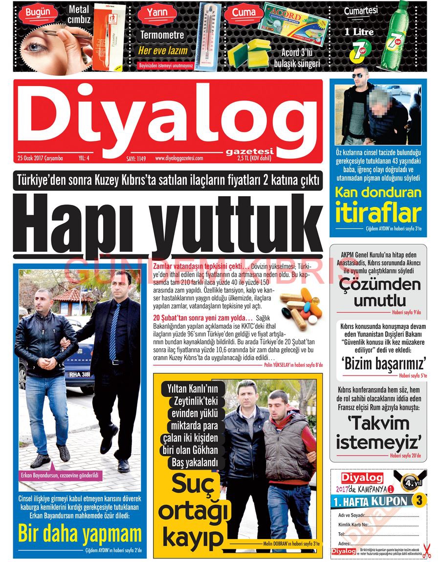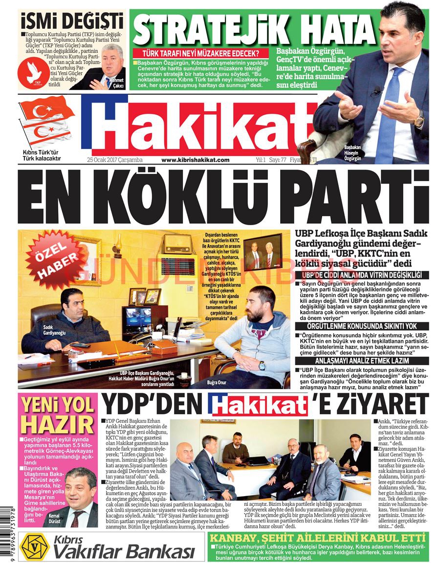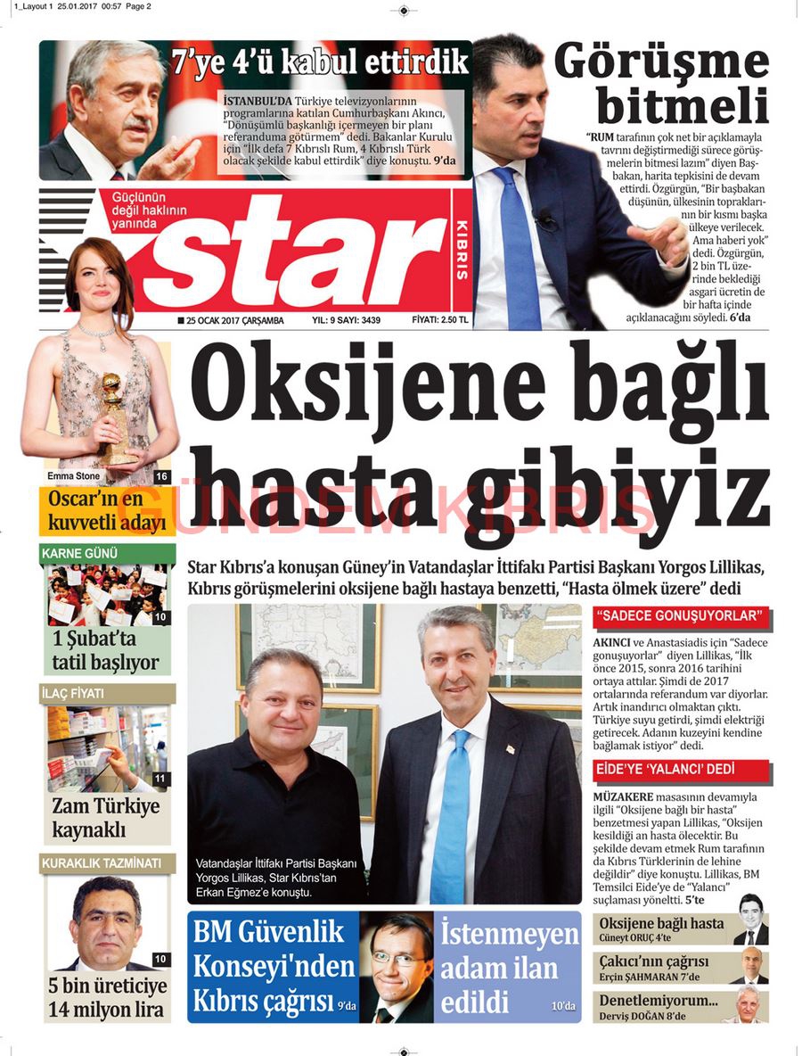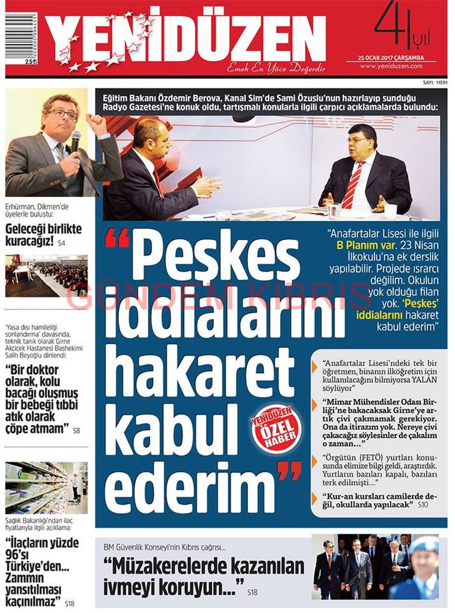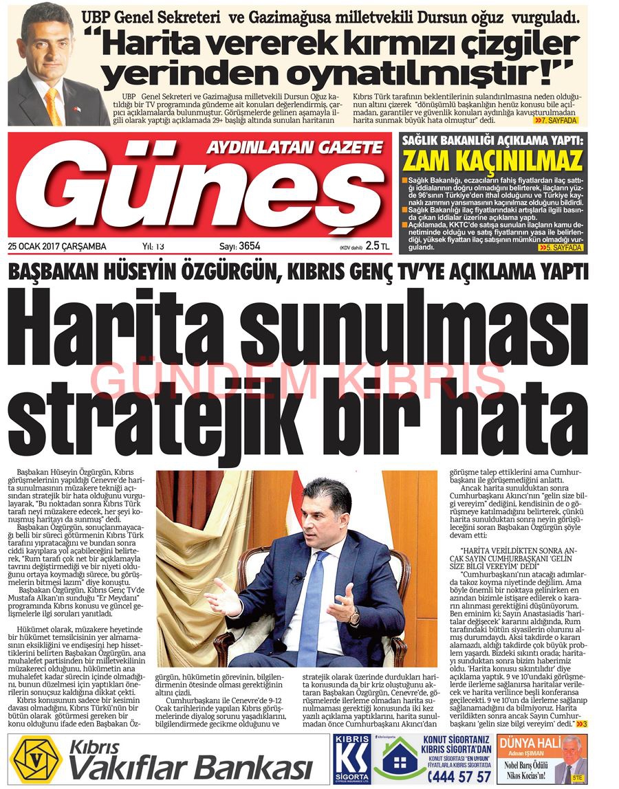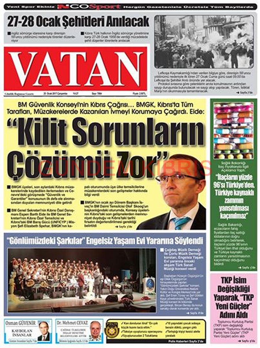 KKTC Gazete Manşetleri 25 Ocak 2017