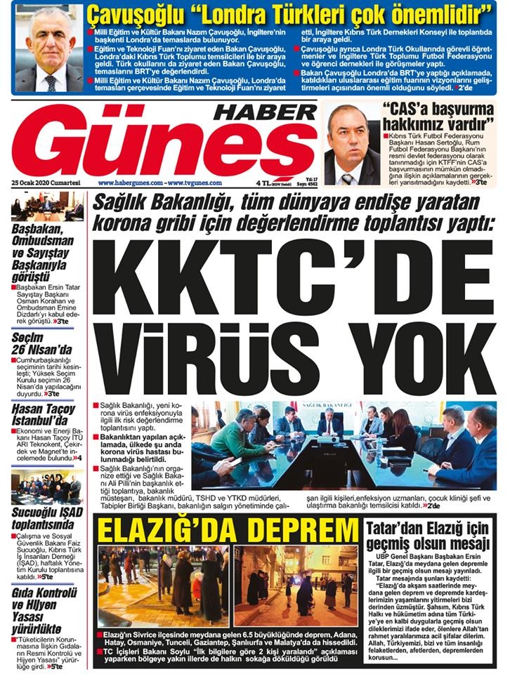 KKTC Gazete Manşetleri-25 Ocak 2020