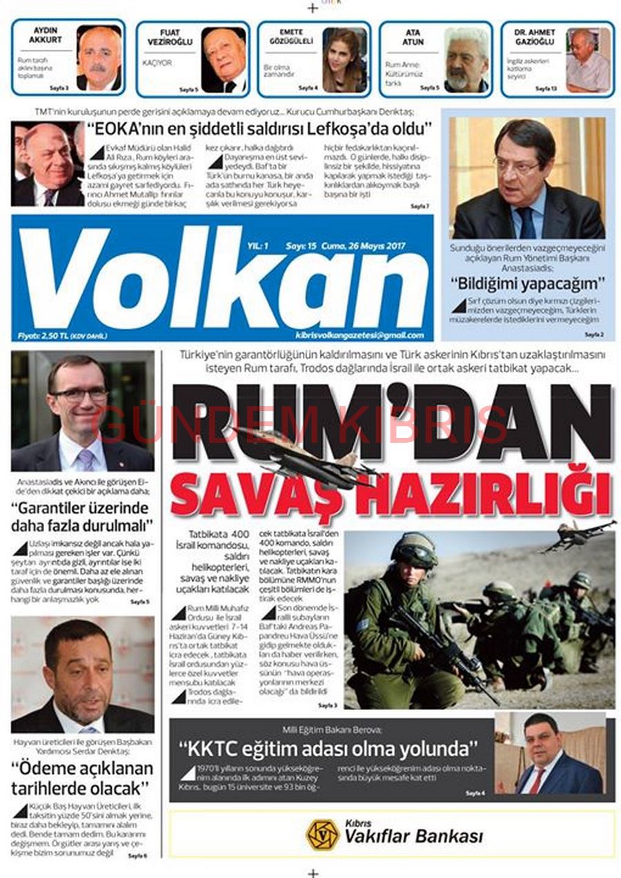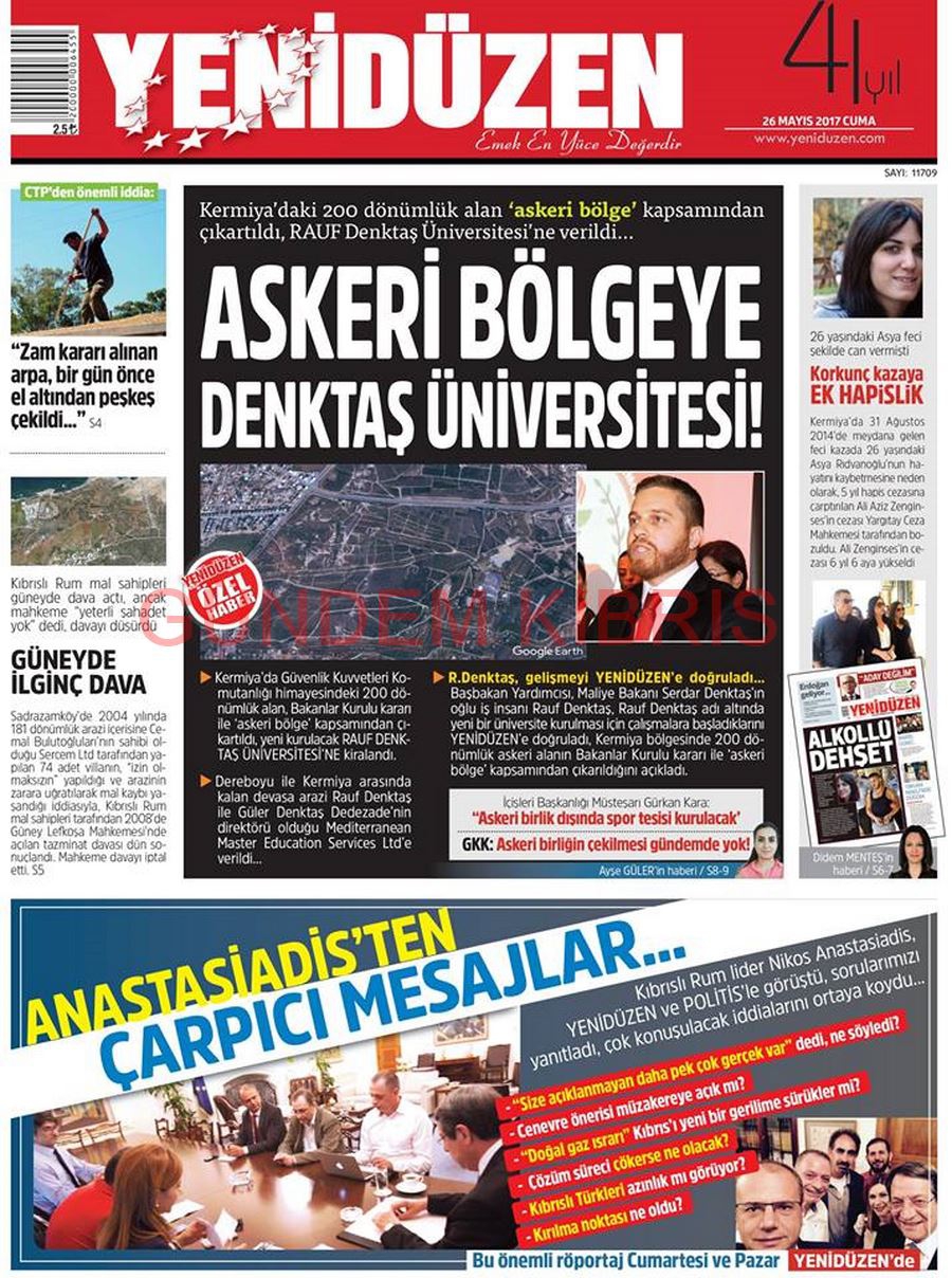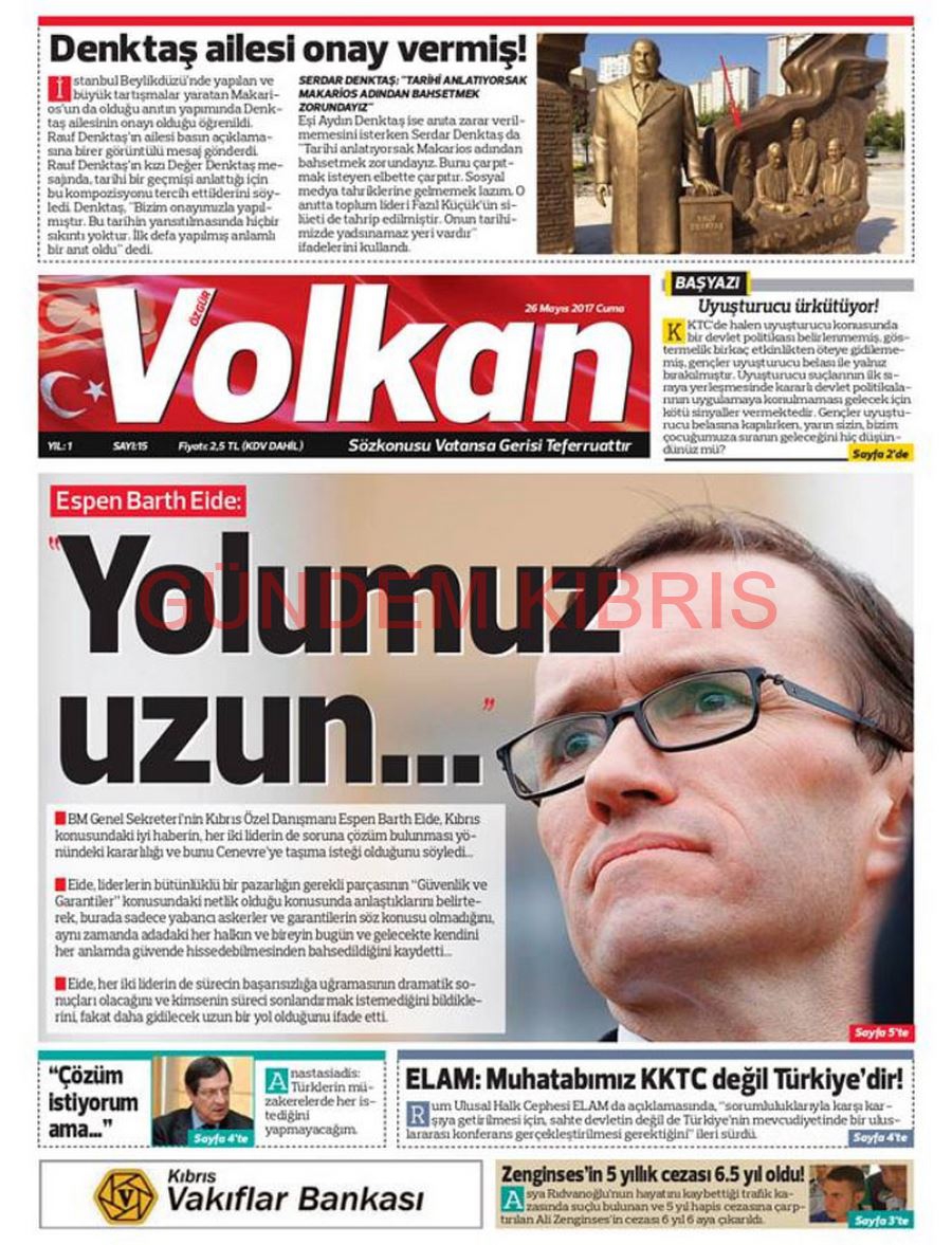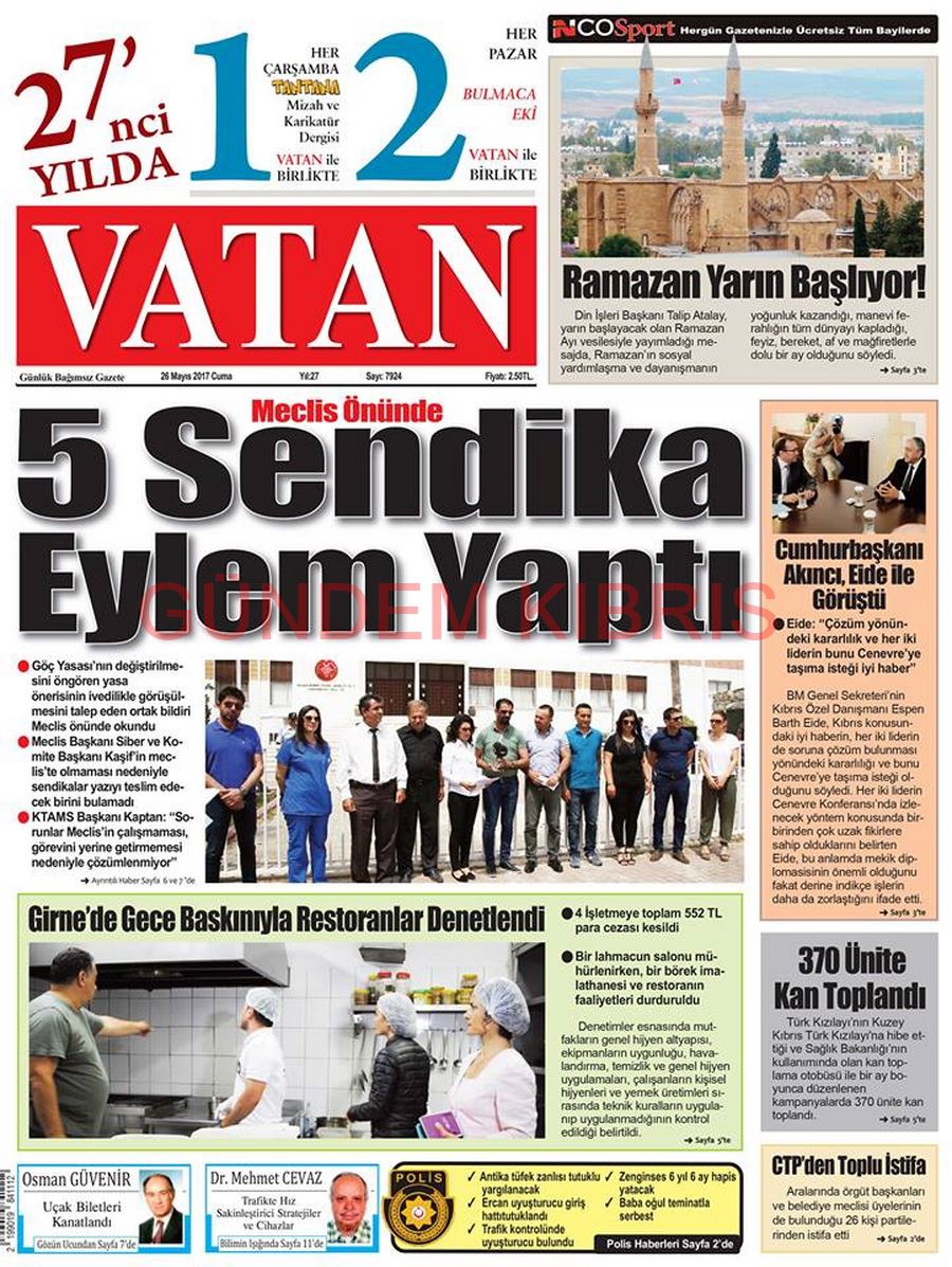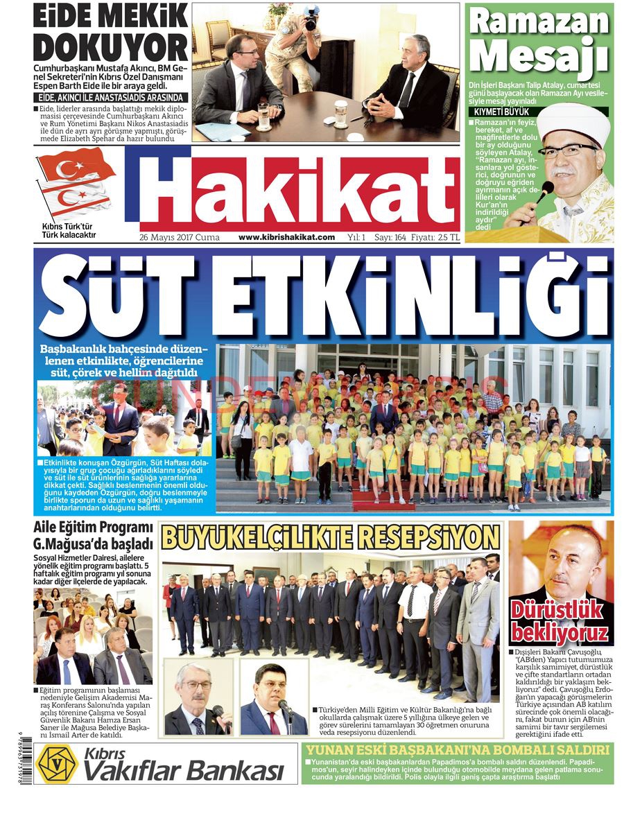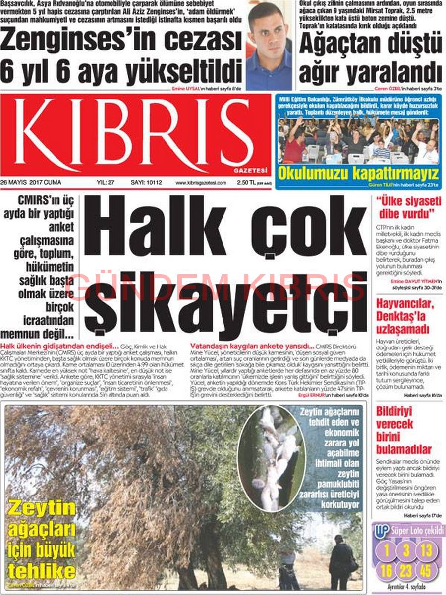 KKTC Gazete Manşetleri 26 Mayıs 2017