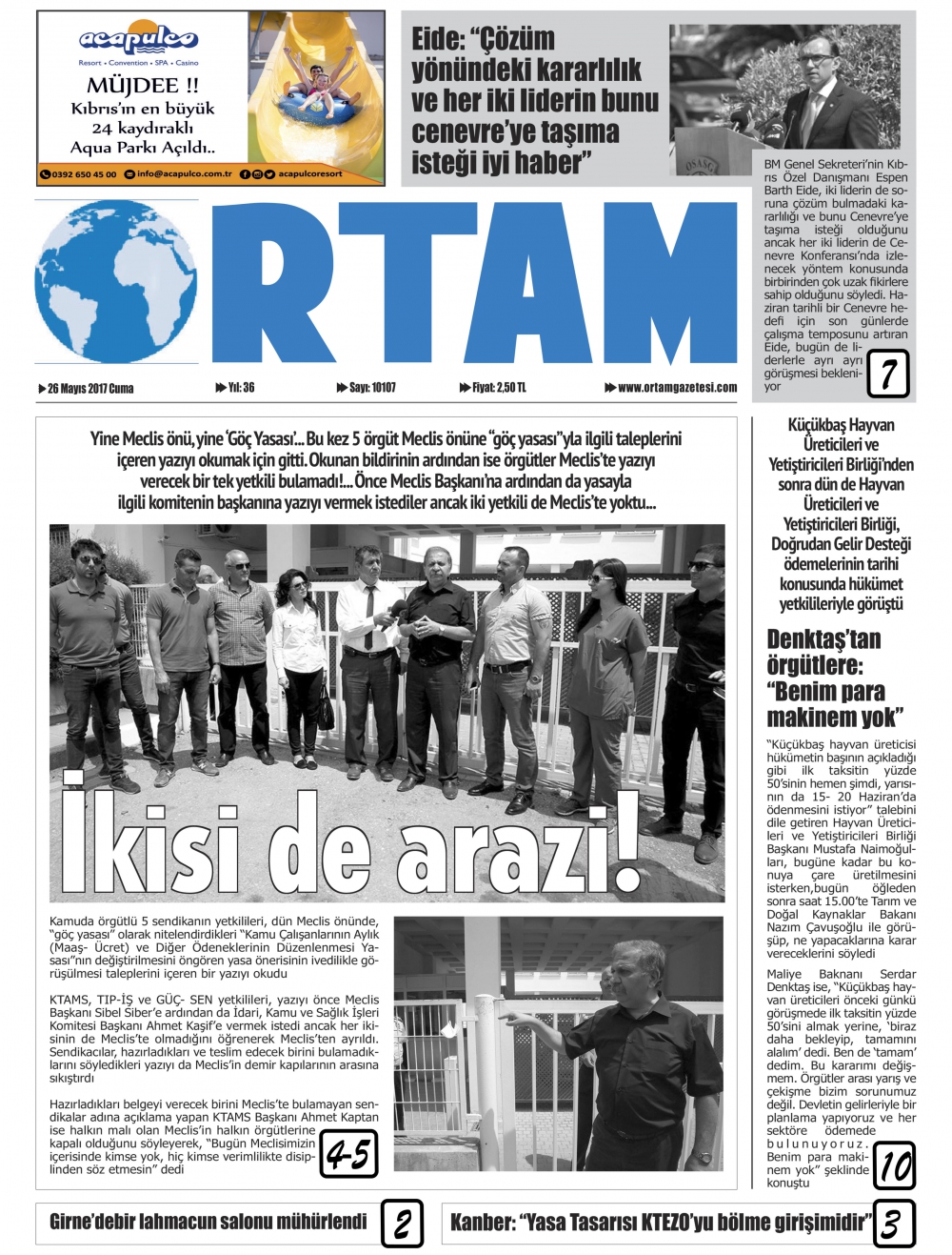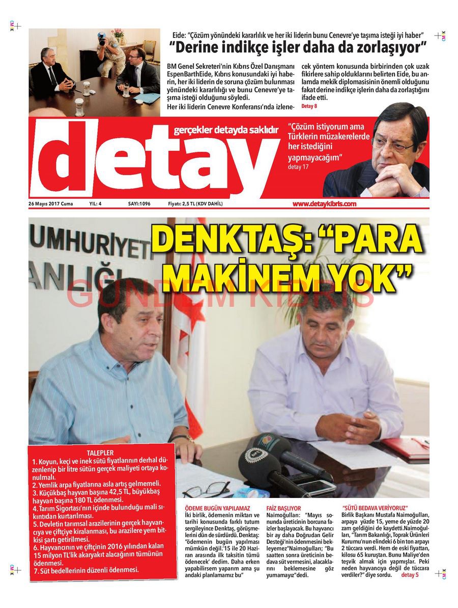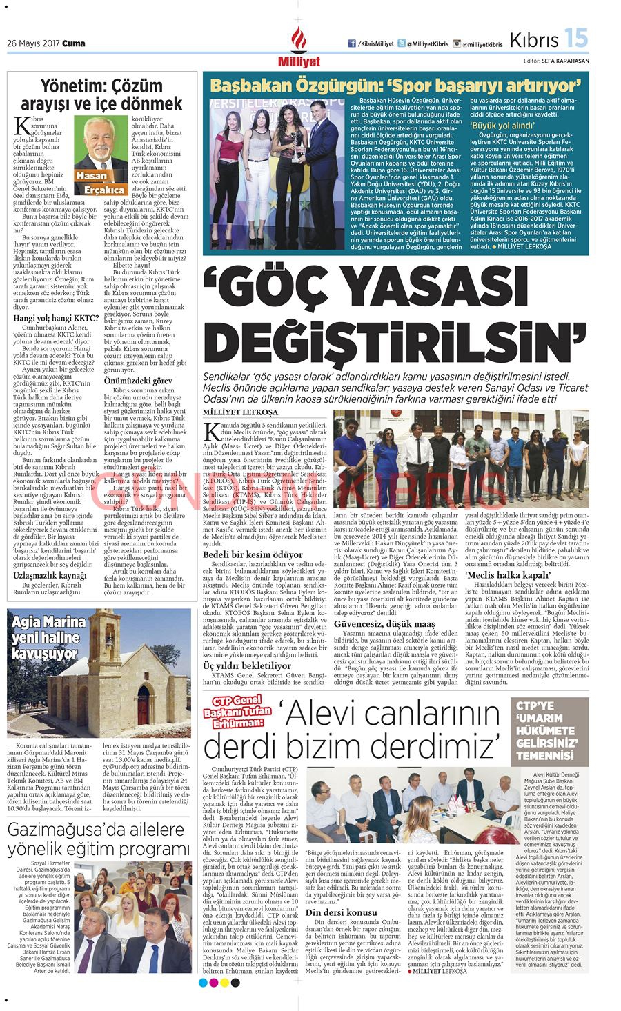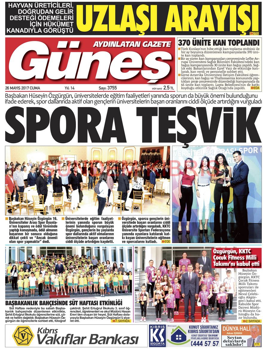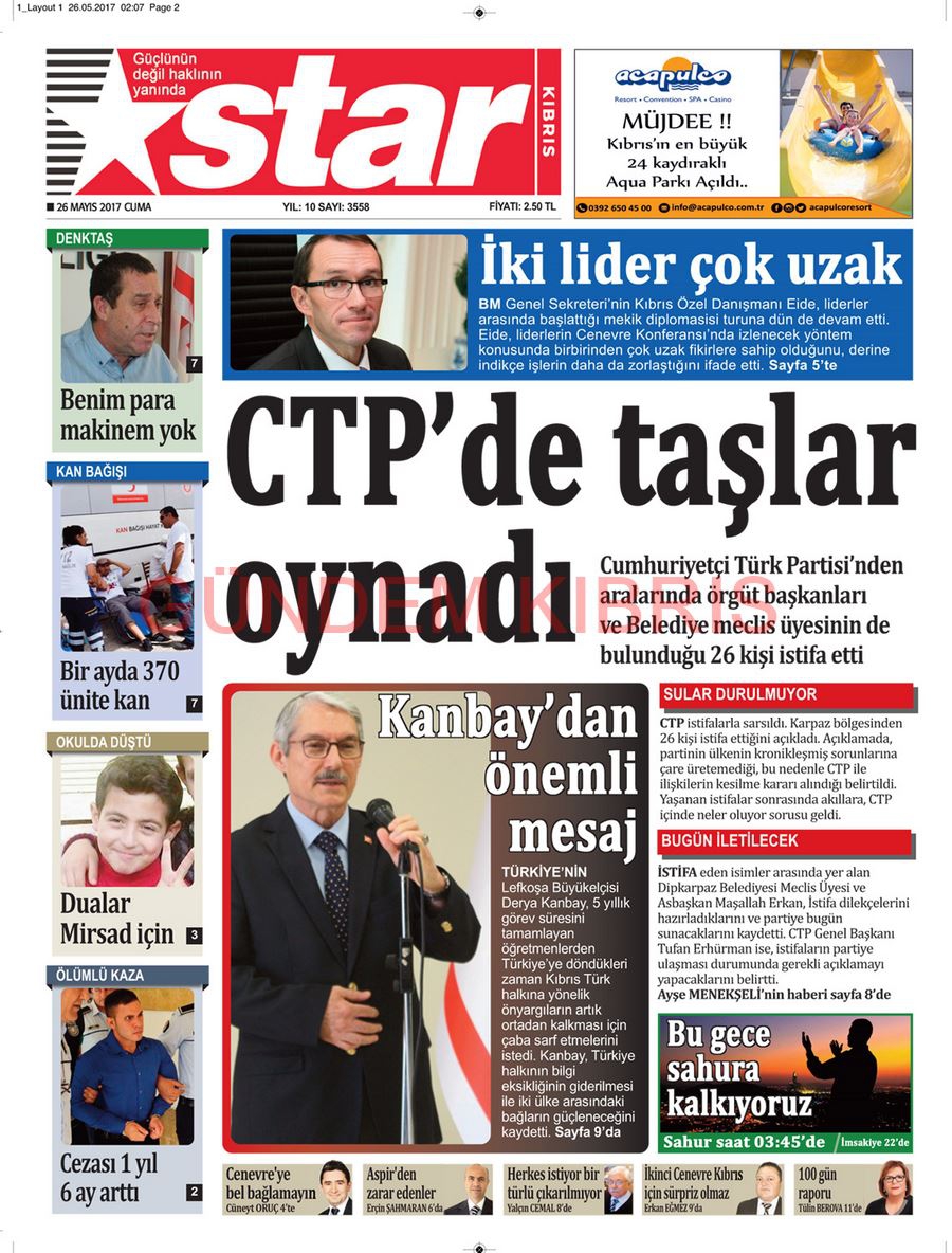 KKTC Gazete Manşetleri 26 Mayıs 2017