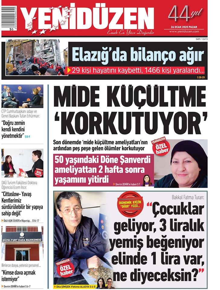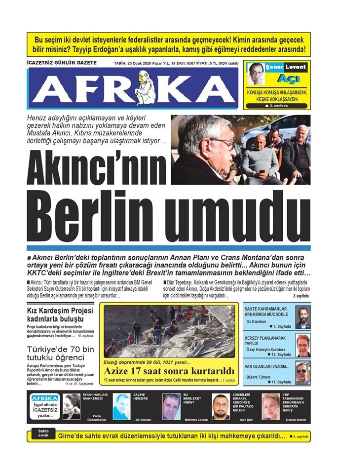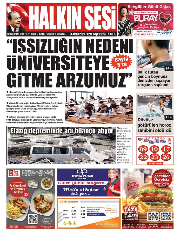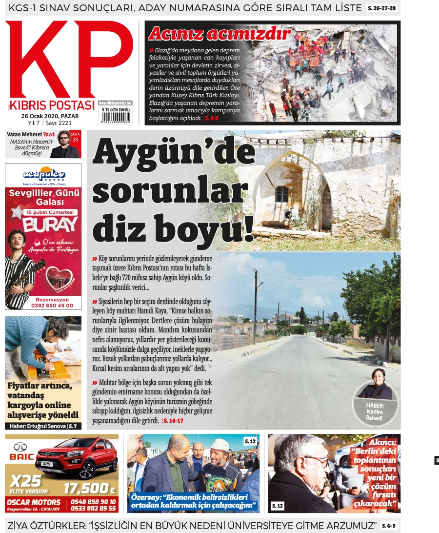 KKTC Gazete Manşetleri 26 Ocak 2020