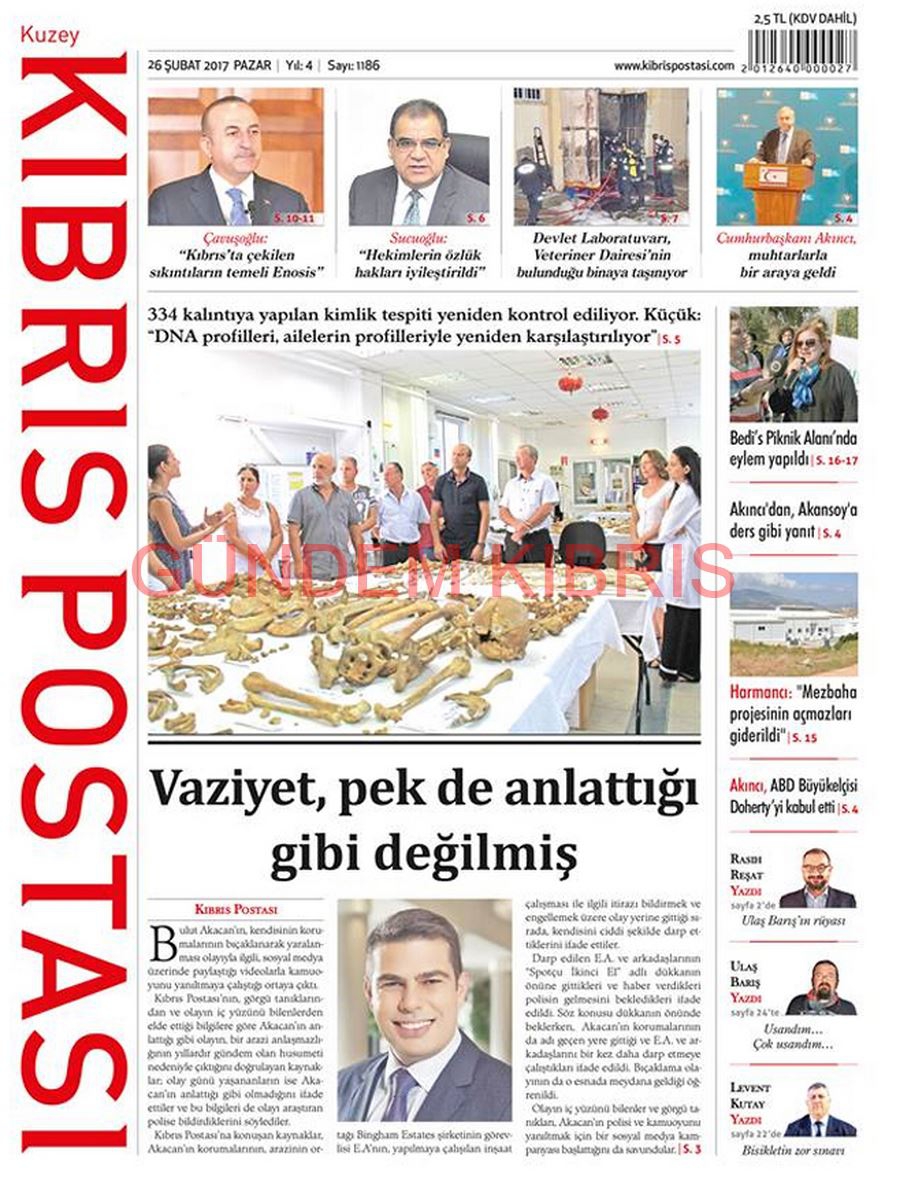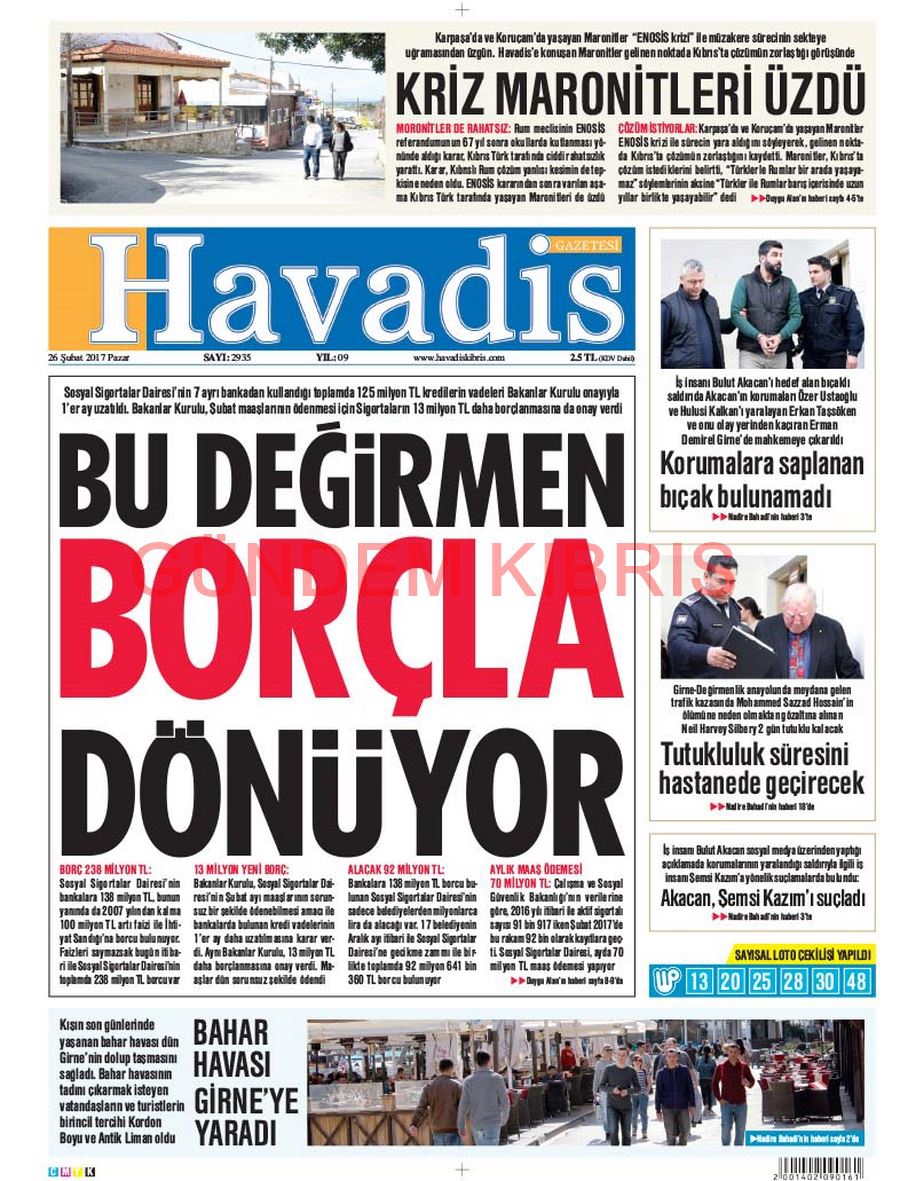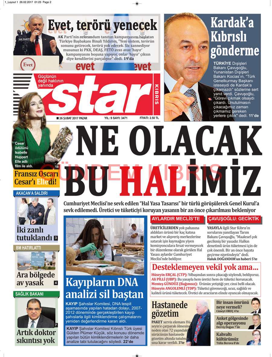 KKTC Gazete Manşetleri 26 Şubat 2017