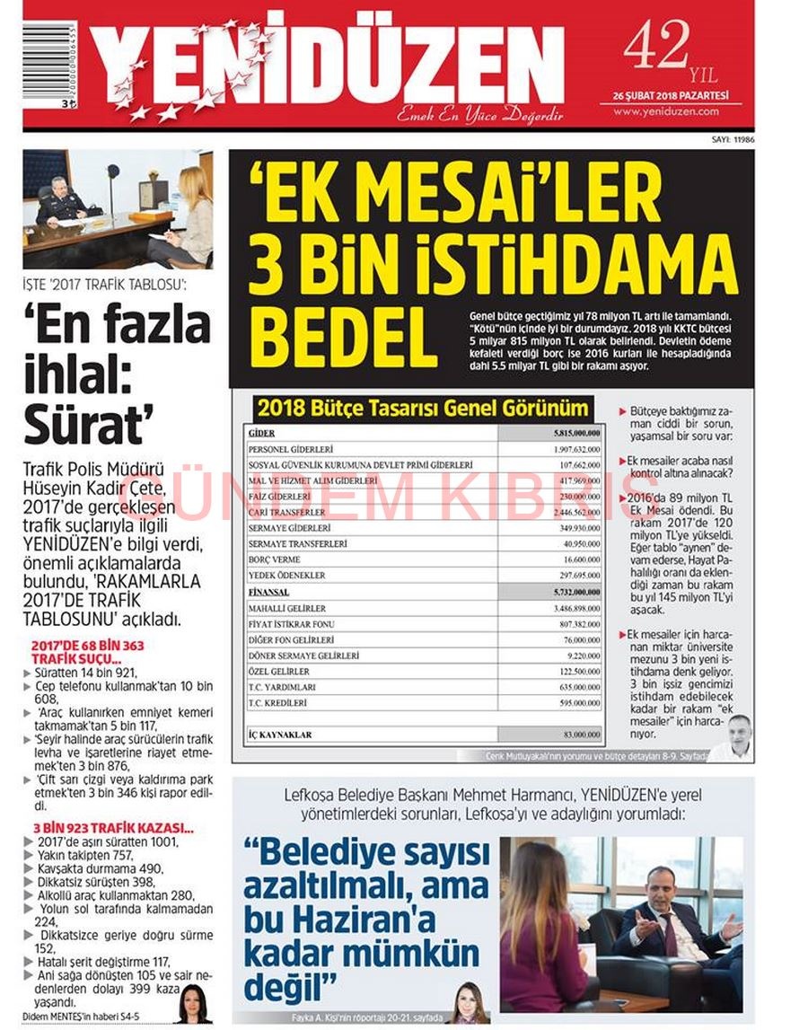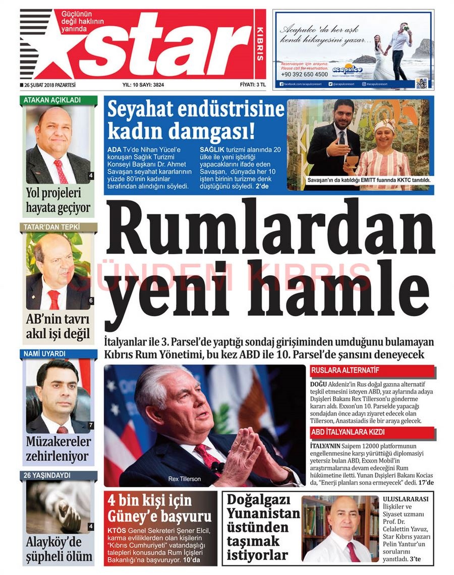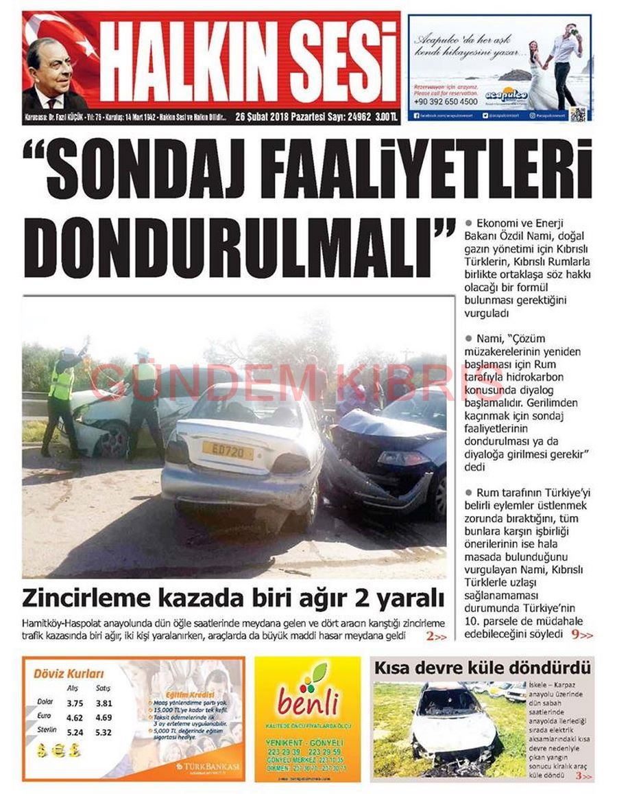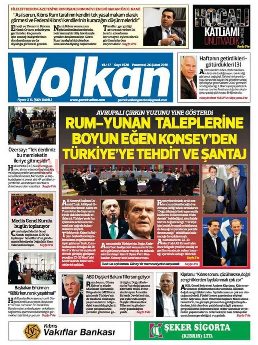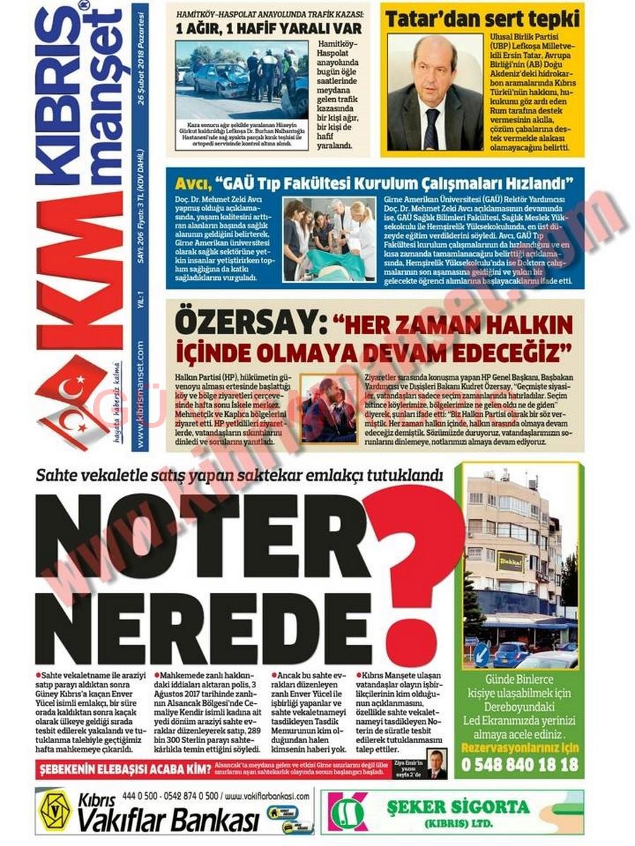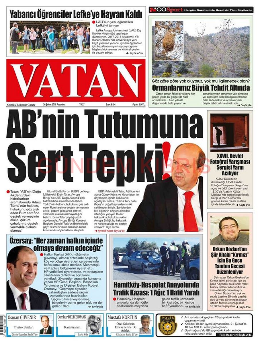 KKTC Gazete Manşetleri 26 Şubat 2018