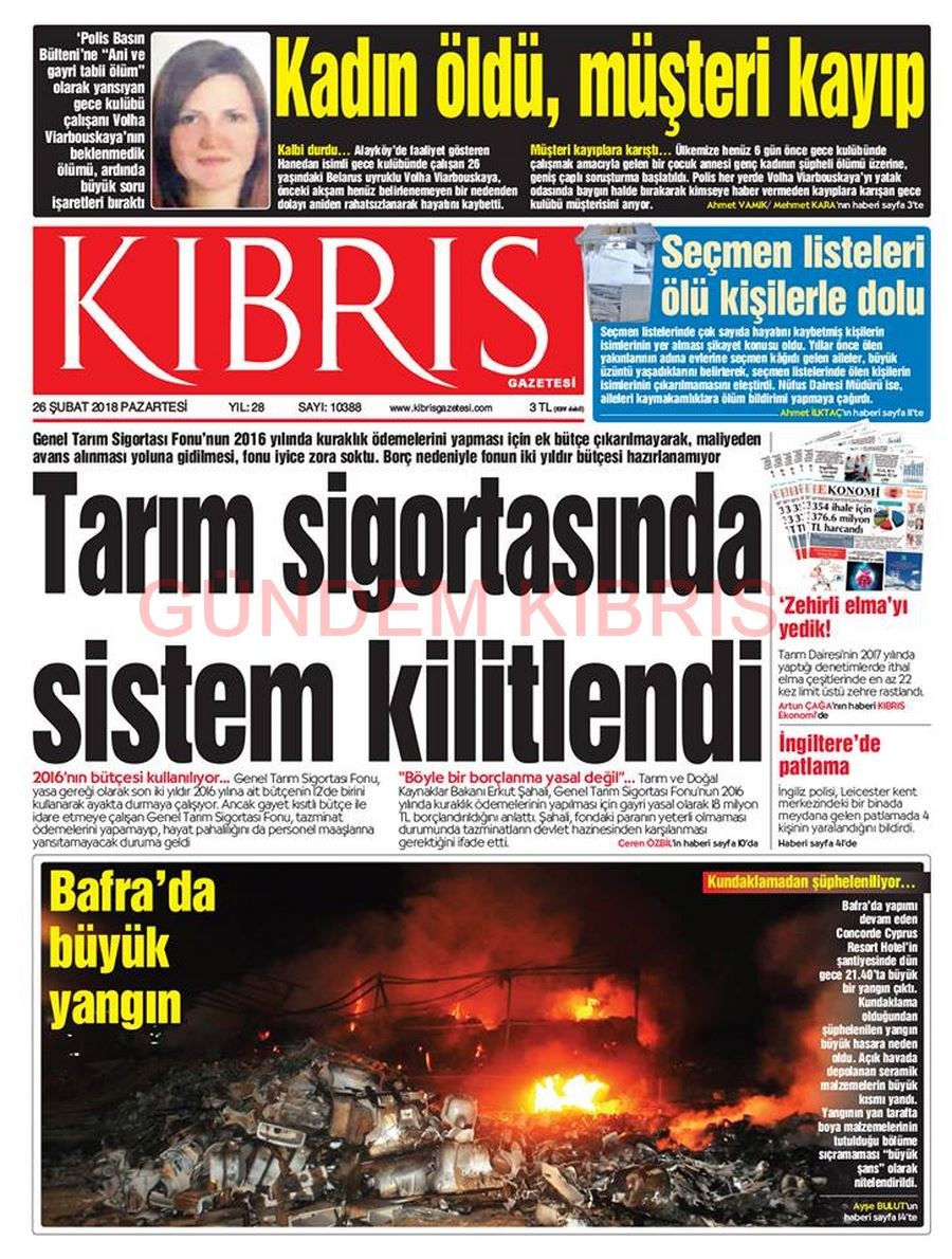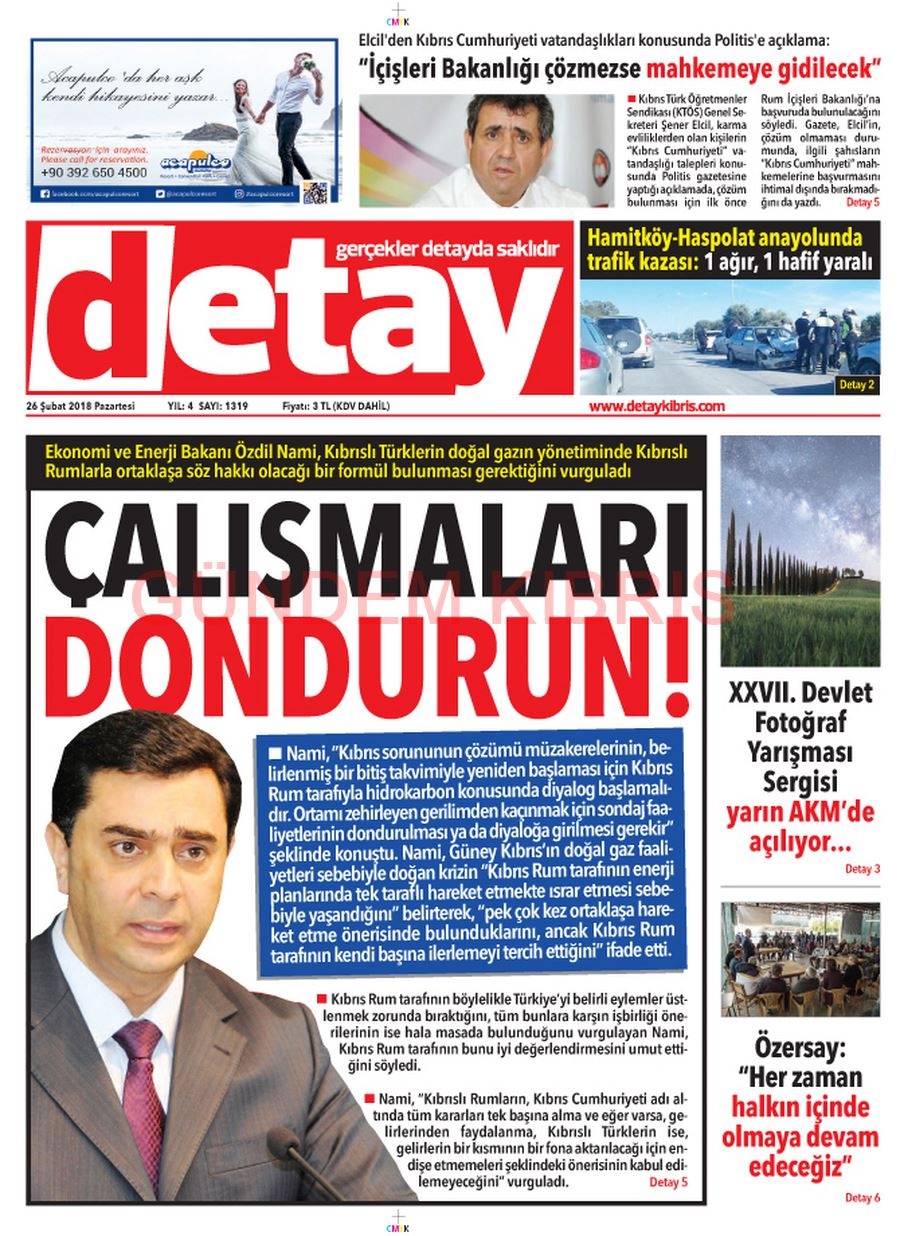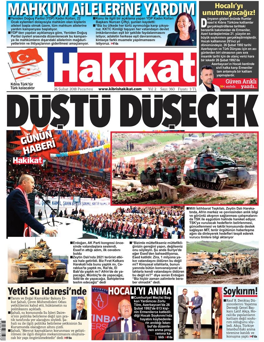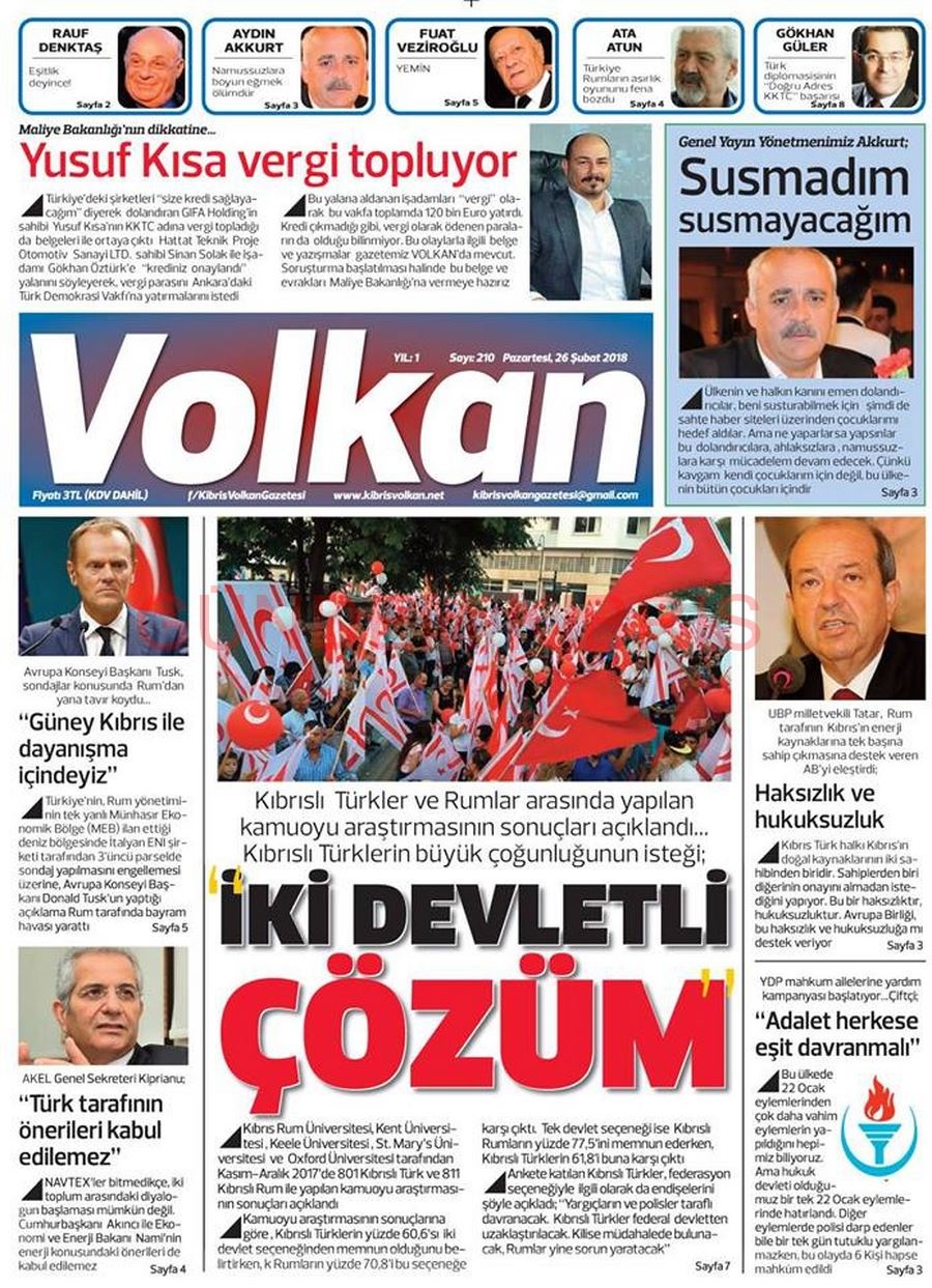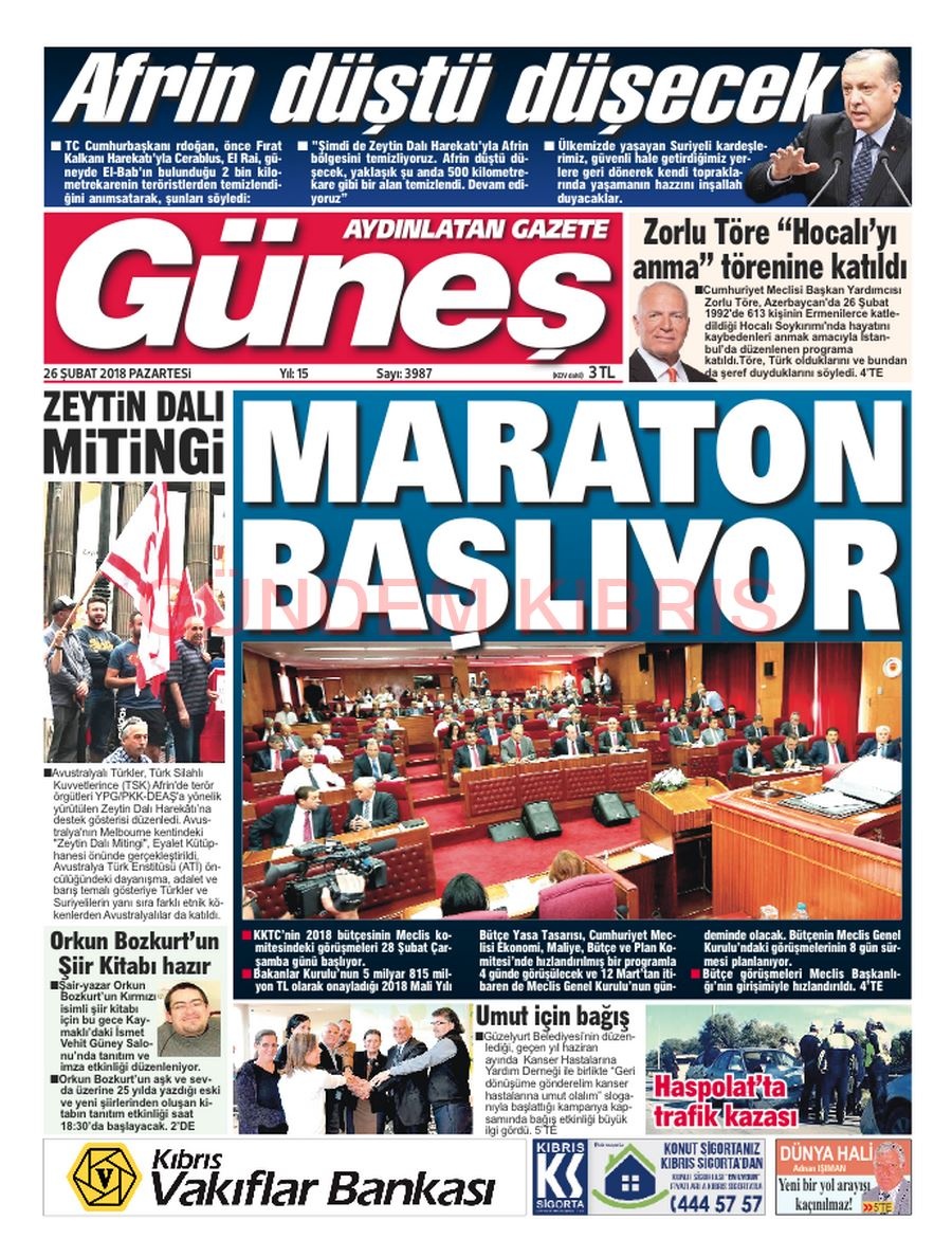 KKTC Gazete Manşetleri 26 Şubat 2018