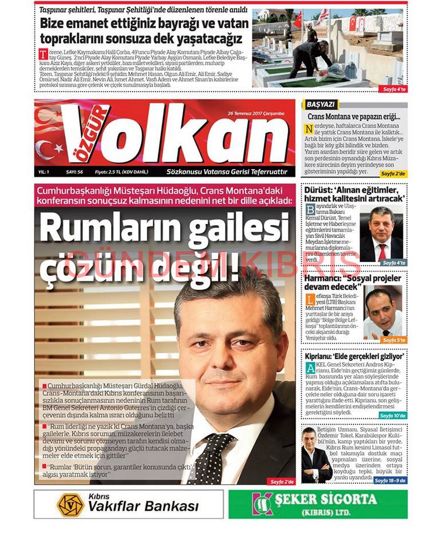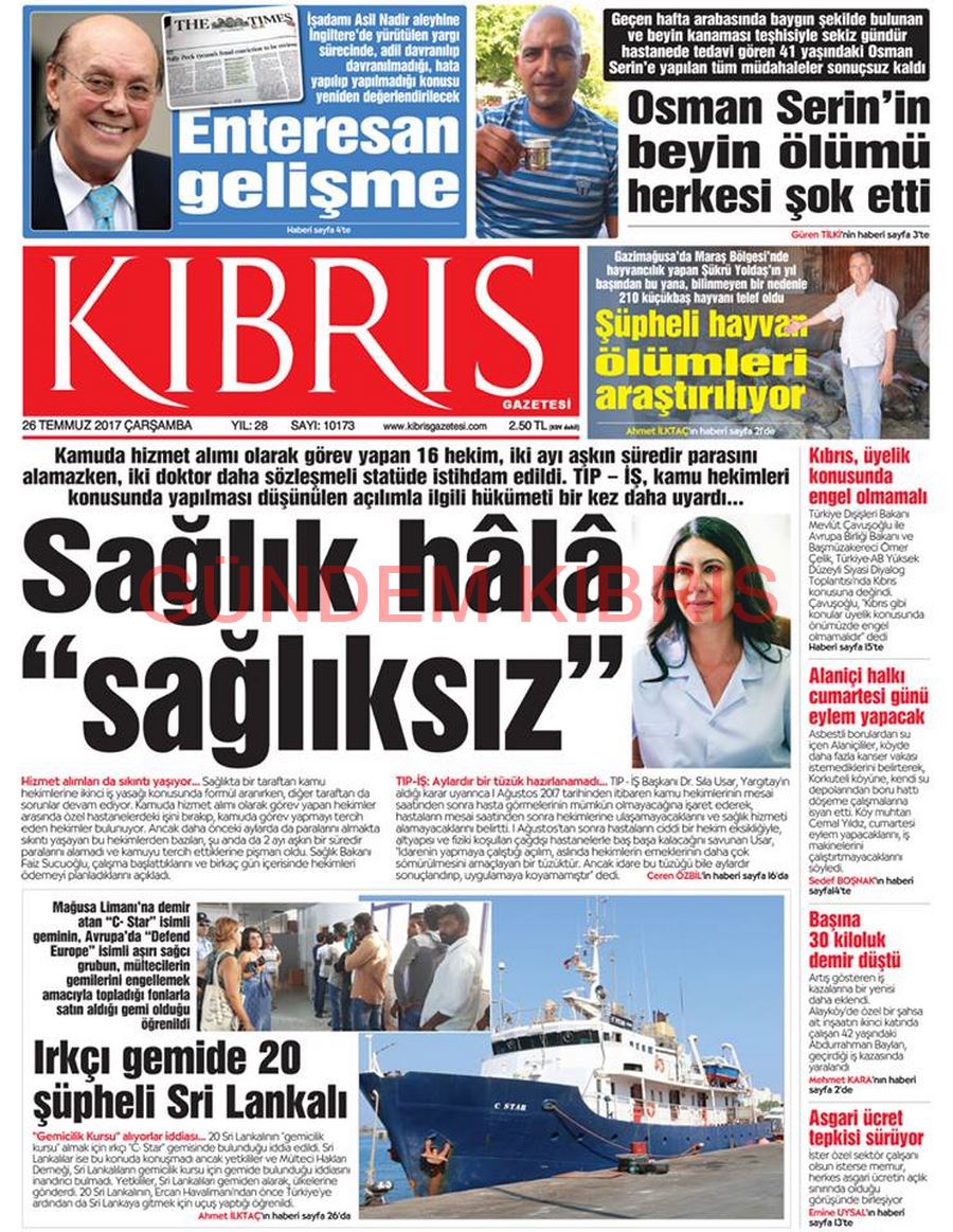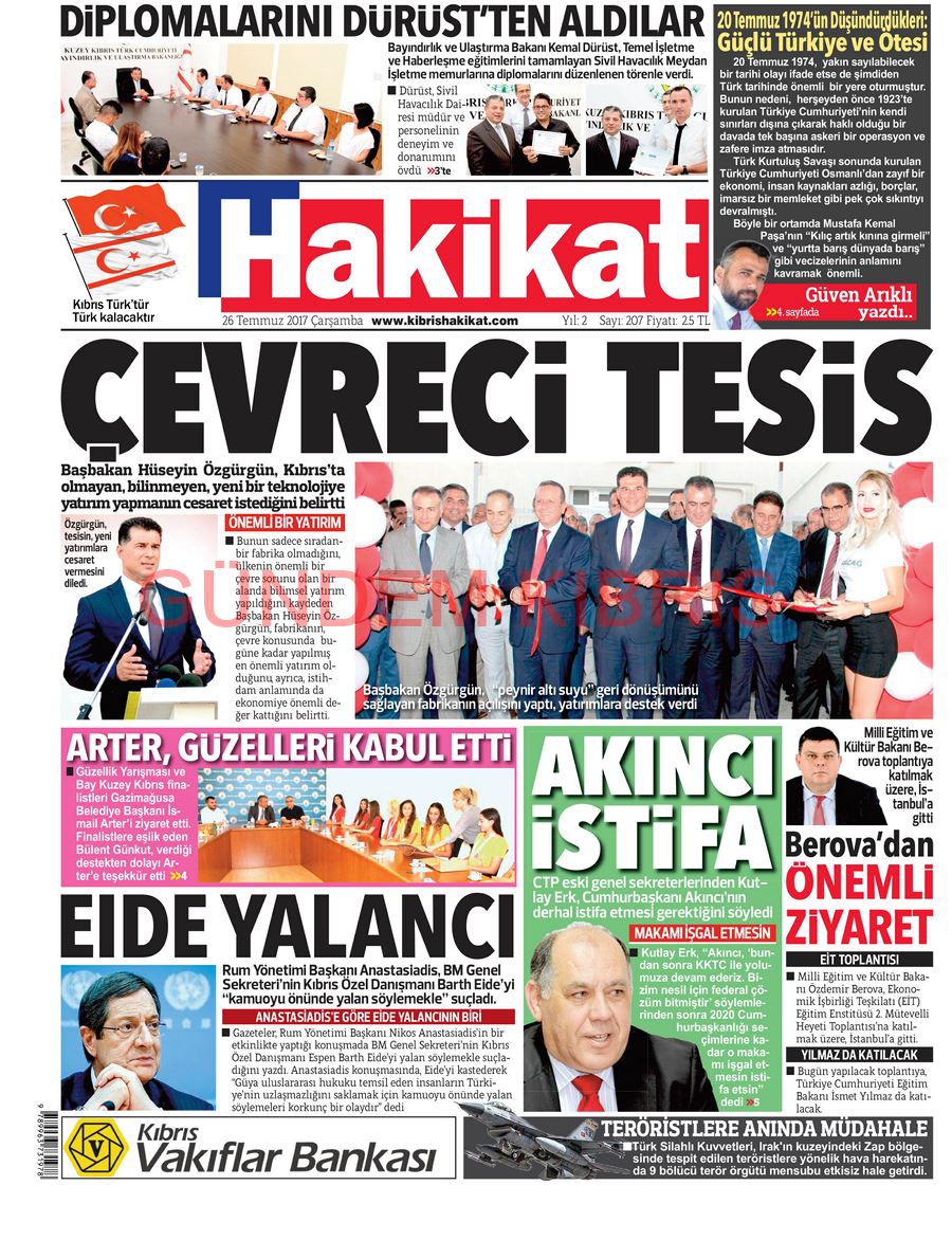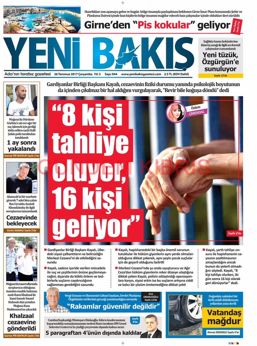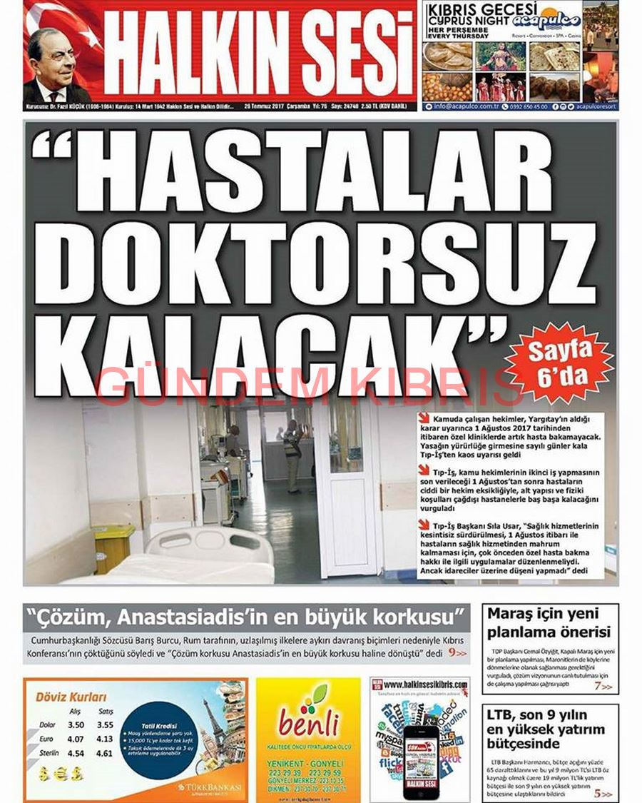 KKTC Gazete Manşetleri 26 Temmuz 2017