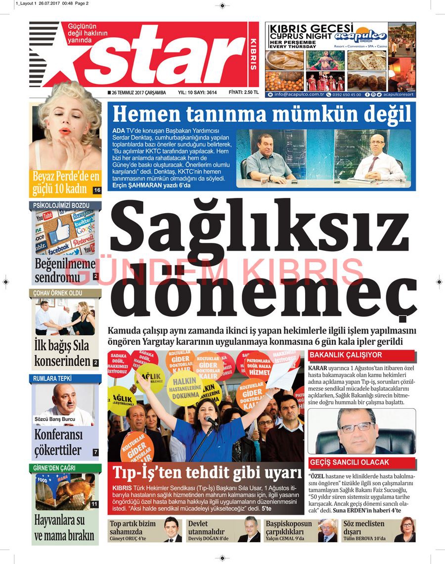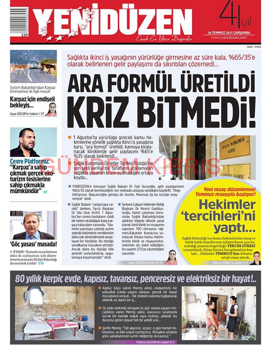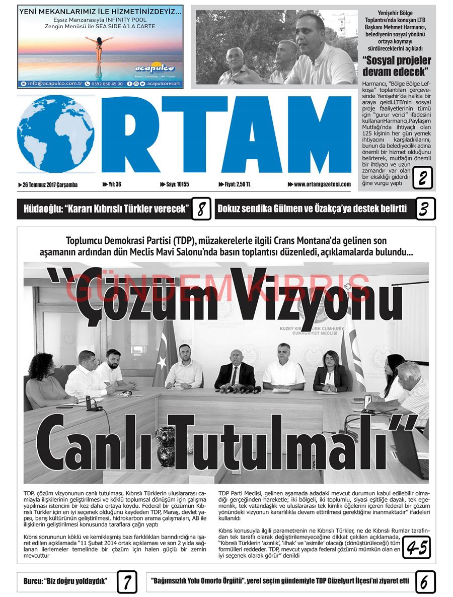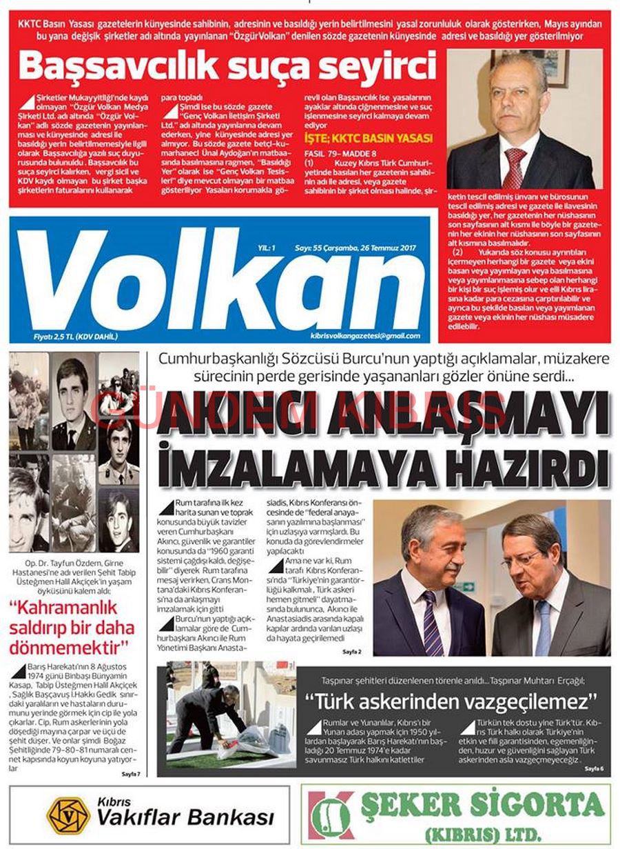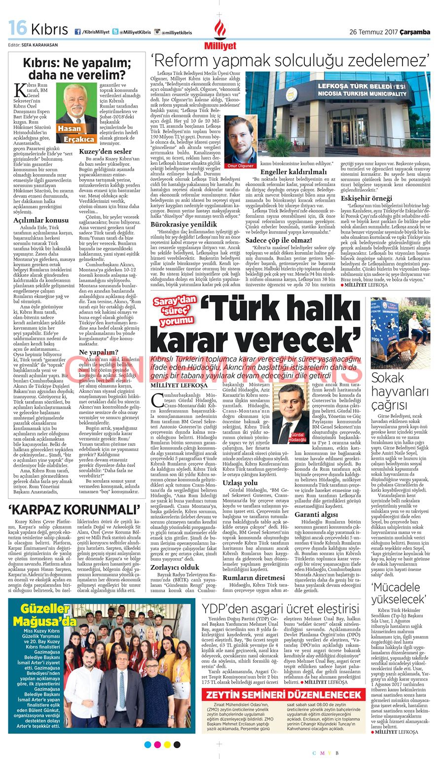 KKTC Gazete Manşetleri 26 Temmuz 2017