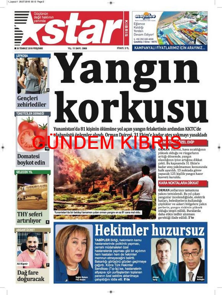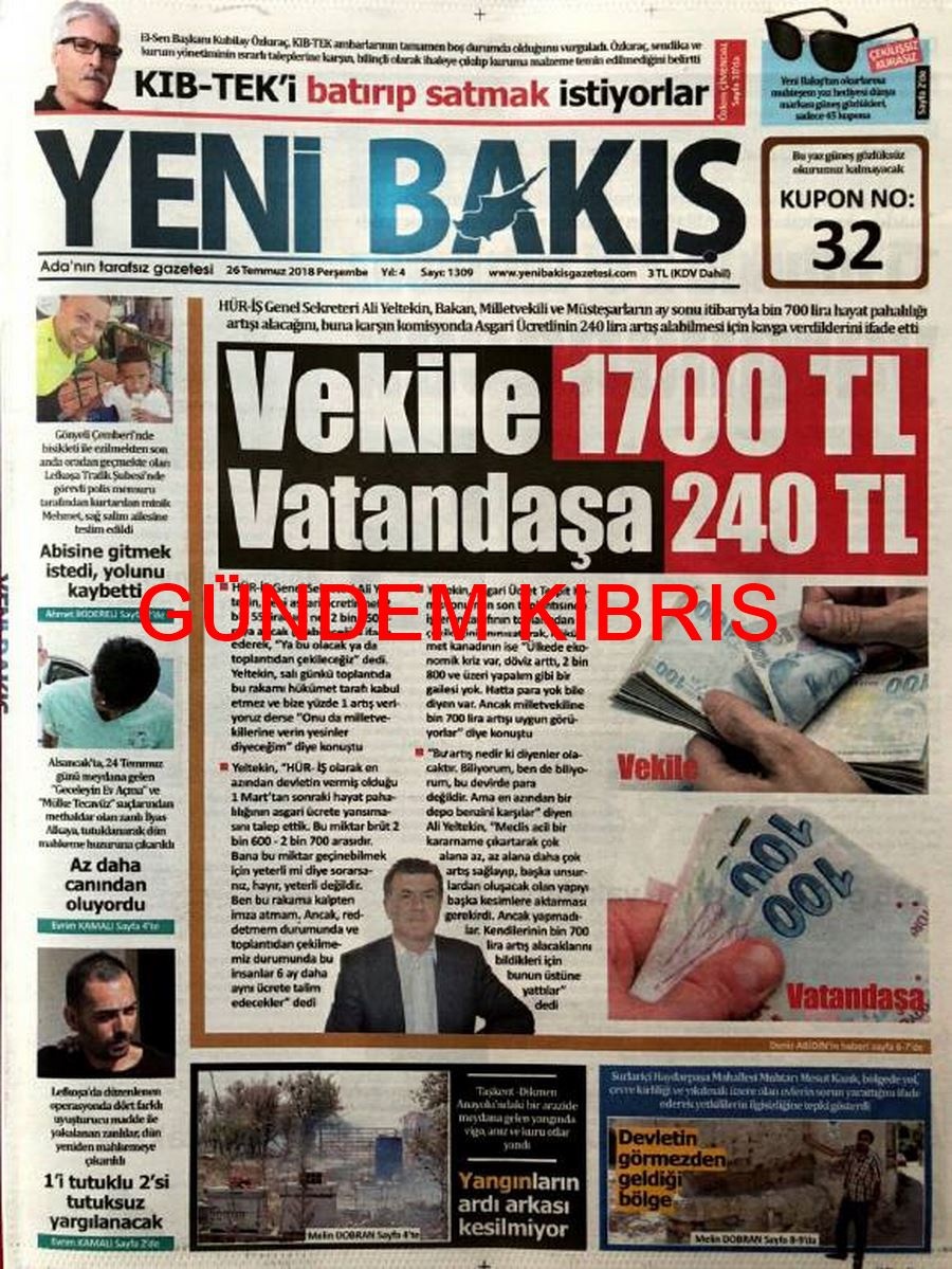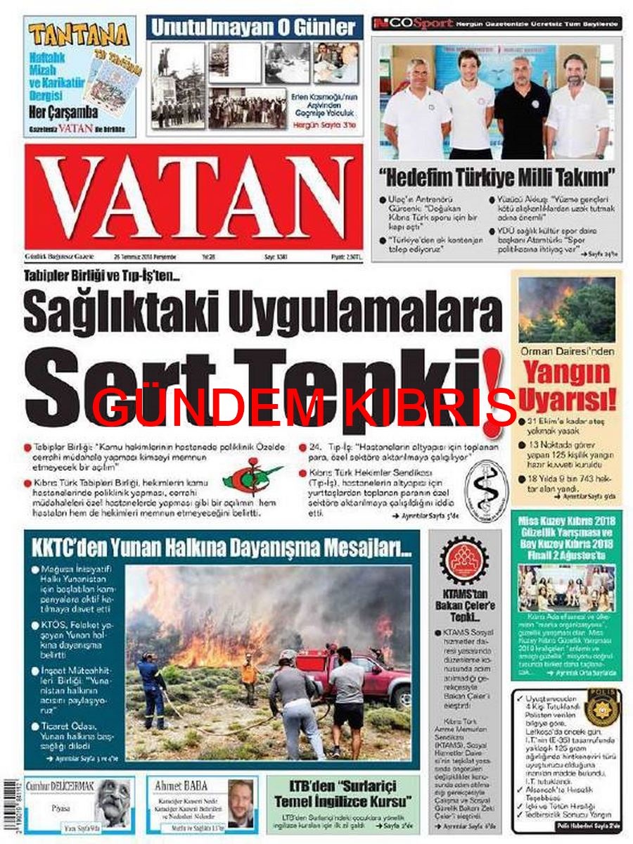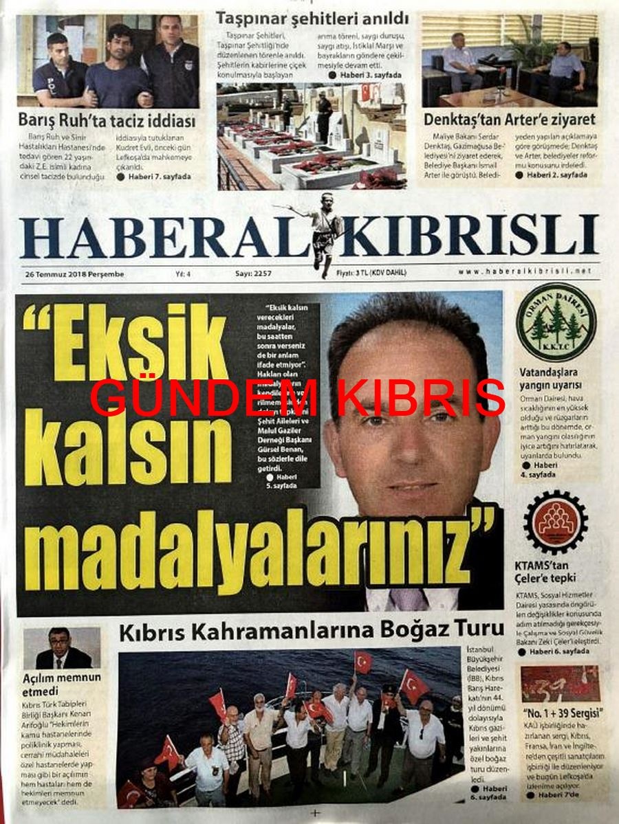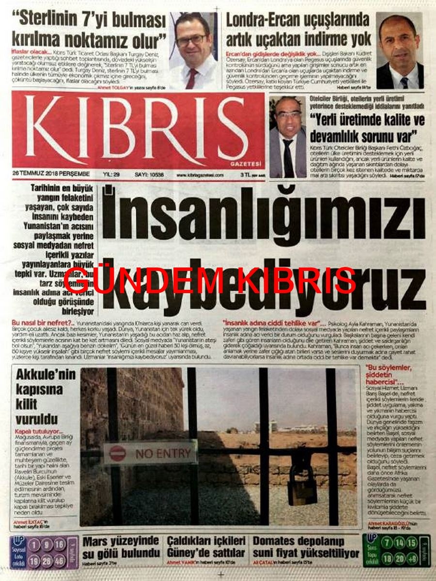 KKTC Gazete Manşetleri 26 Temmuz 2018