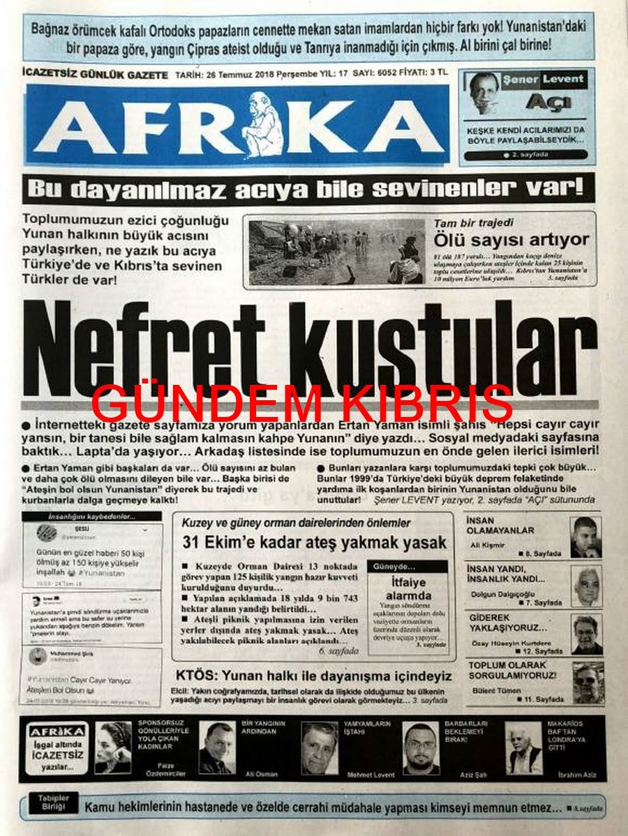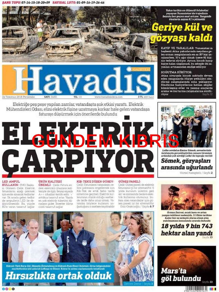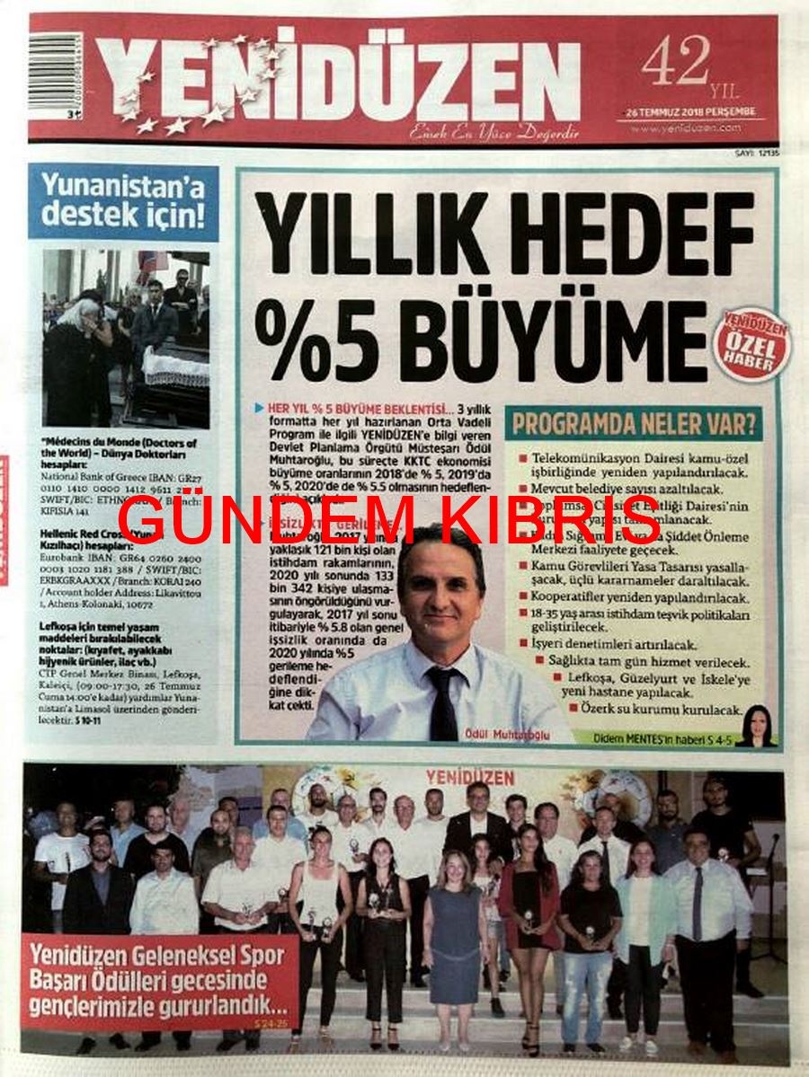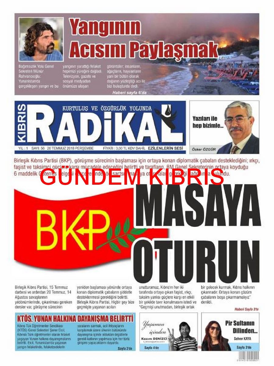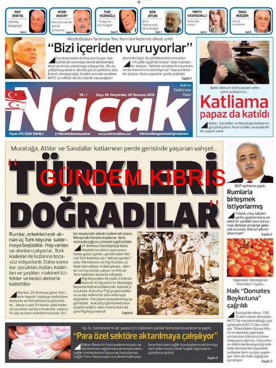 KKTC Gazete Manşetleri 26 Temmuz 2018