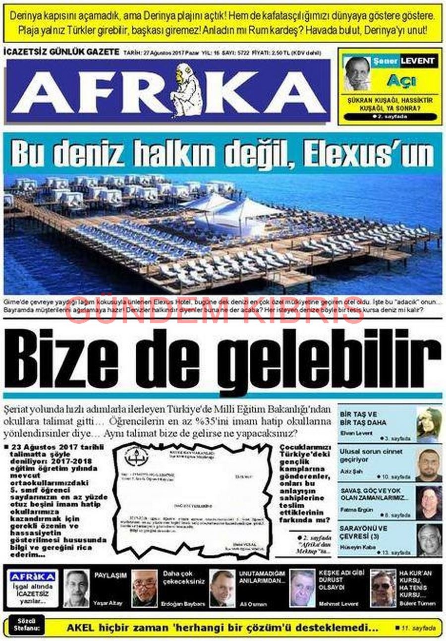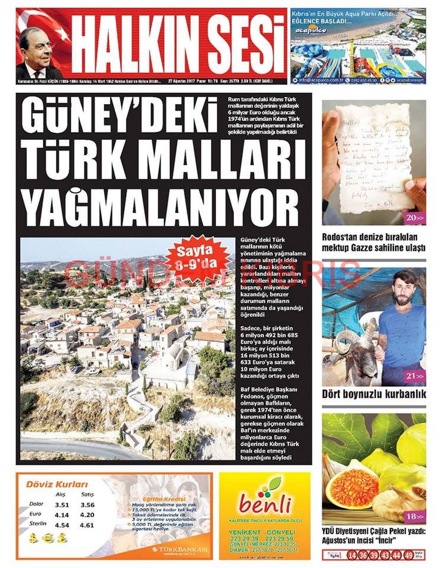 KKTC Gazete Manşetleri 27 Ağustos 2017
