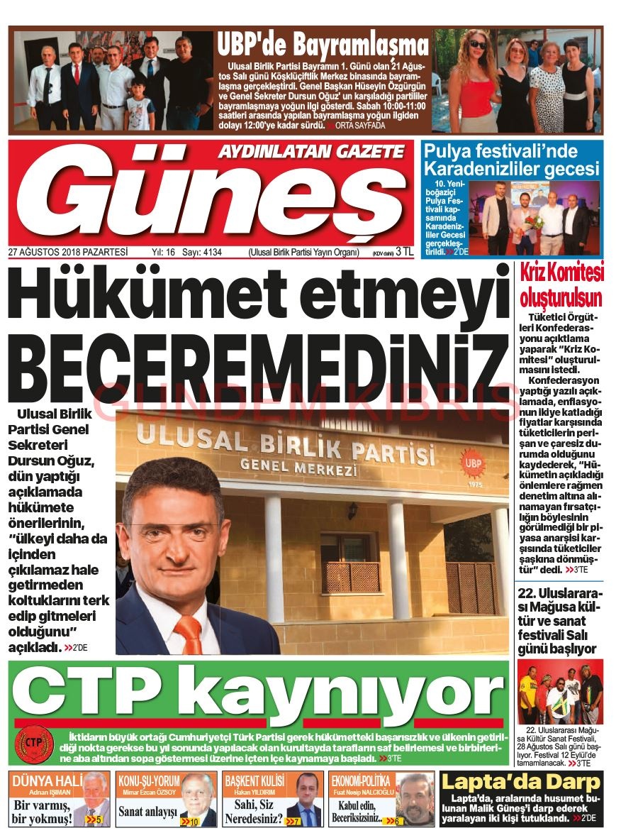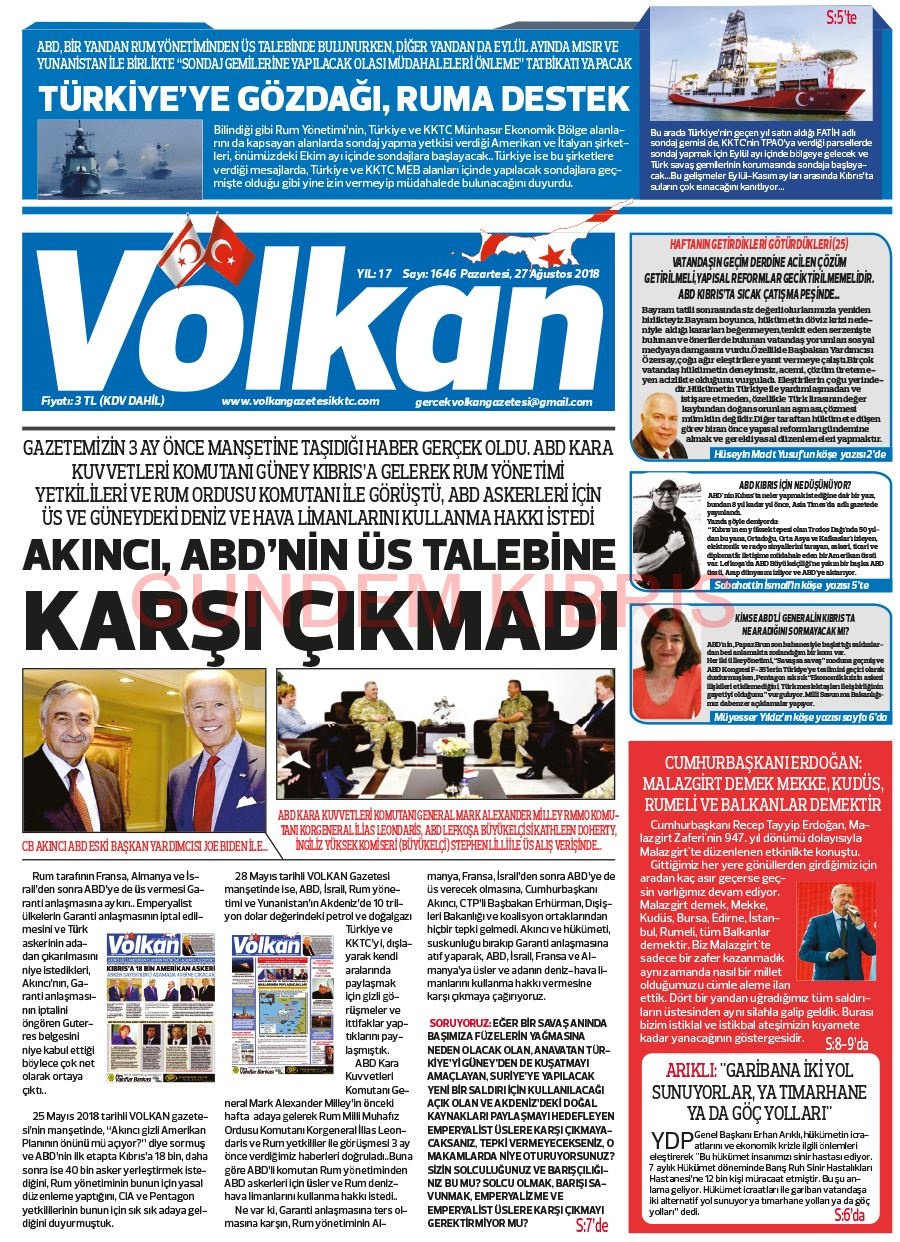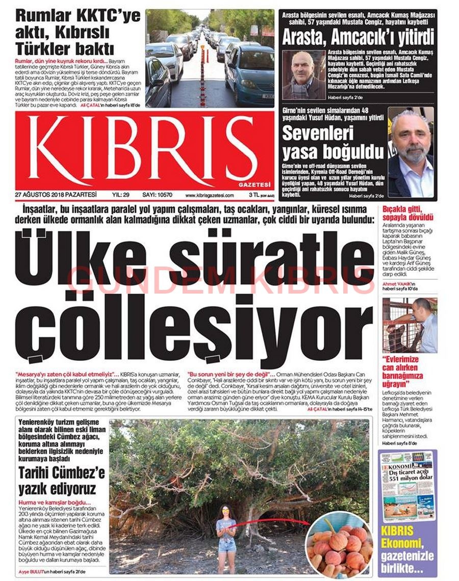 KKTC Gazete Manşetleri 27 Ağustos 2018