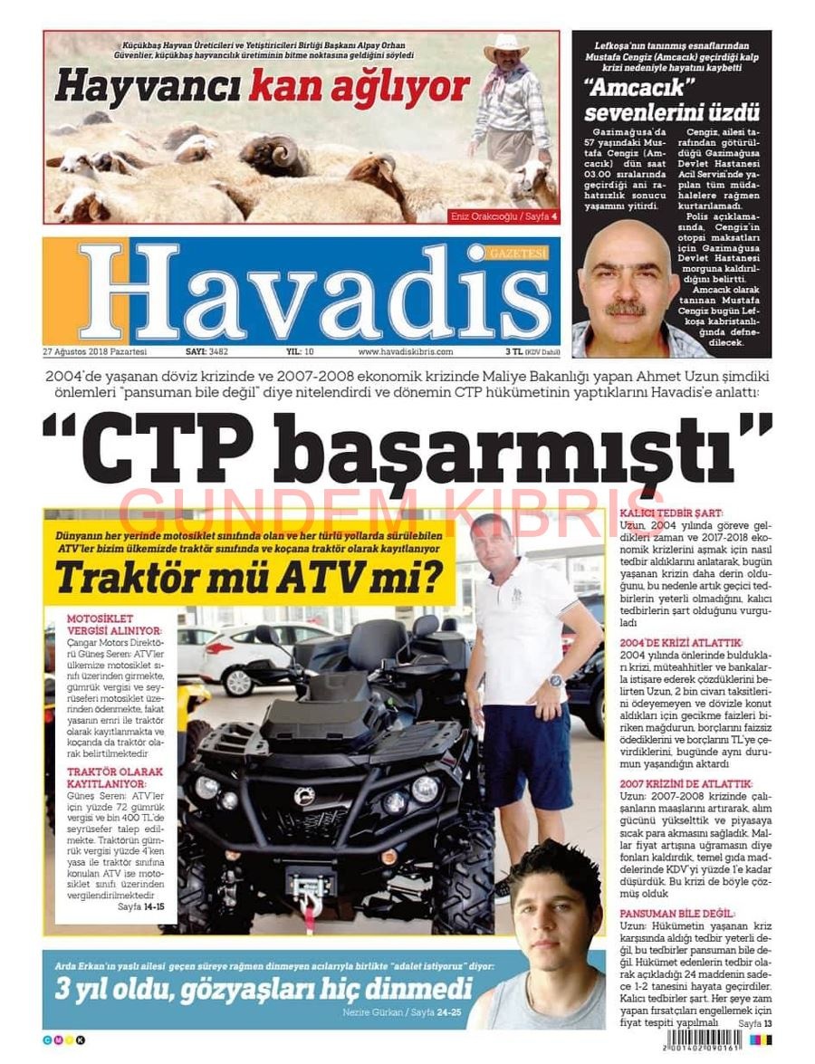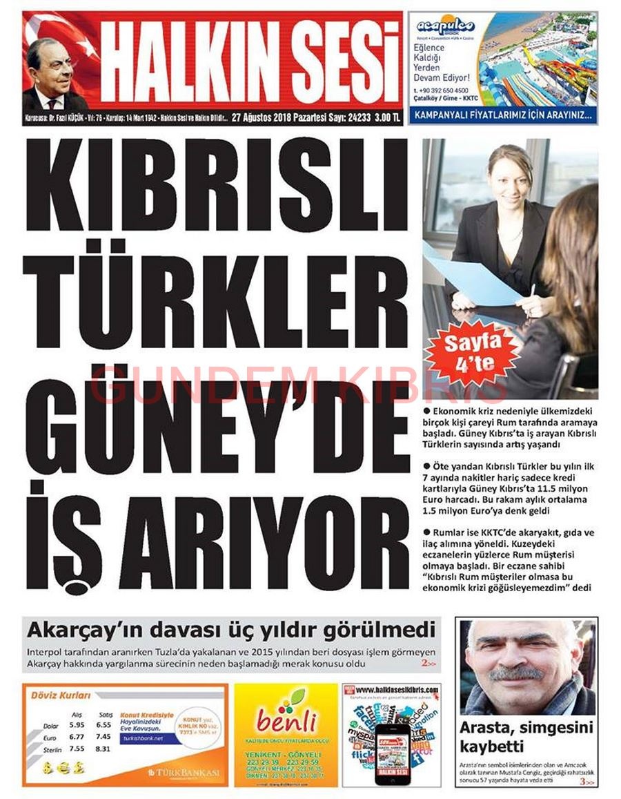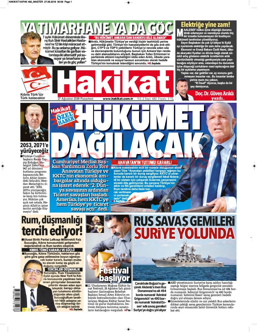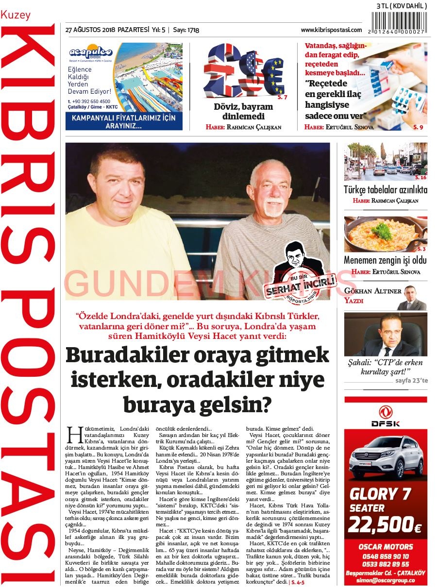 KKTC Gazete Manşetleri 27 Ağustos 2018