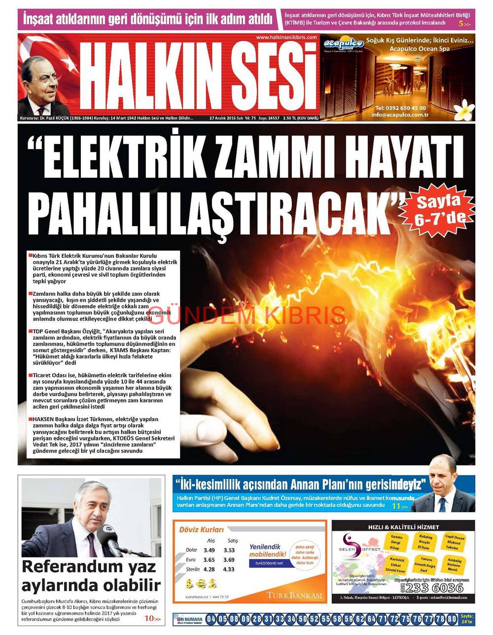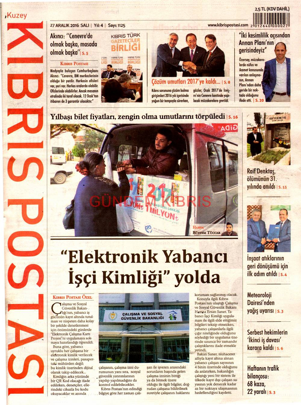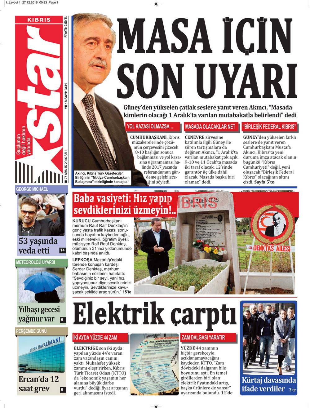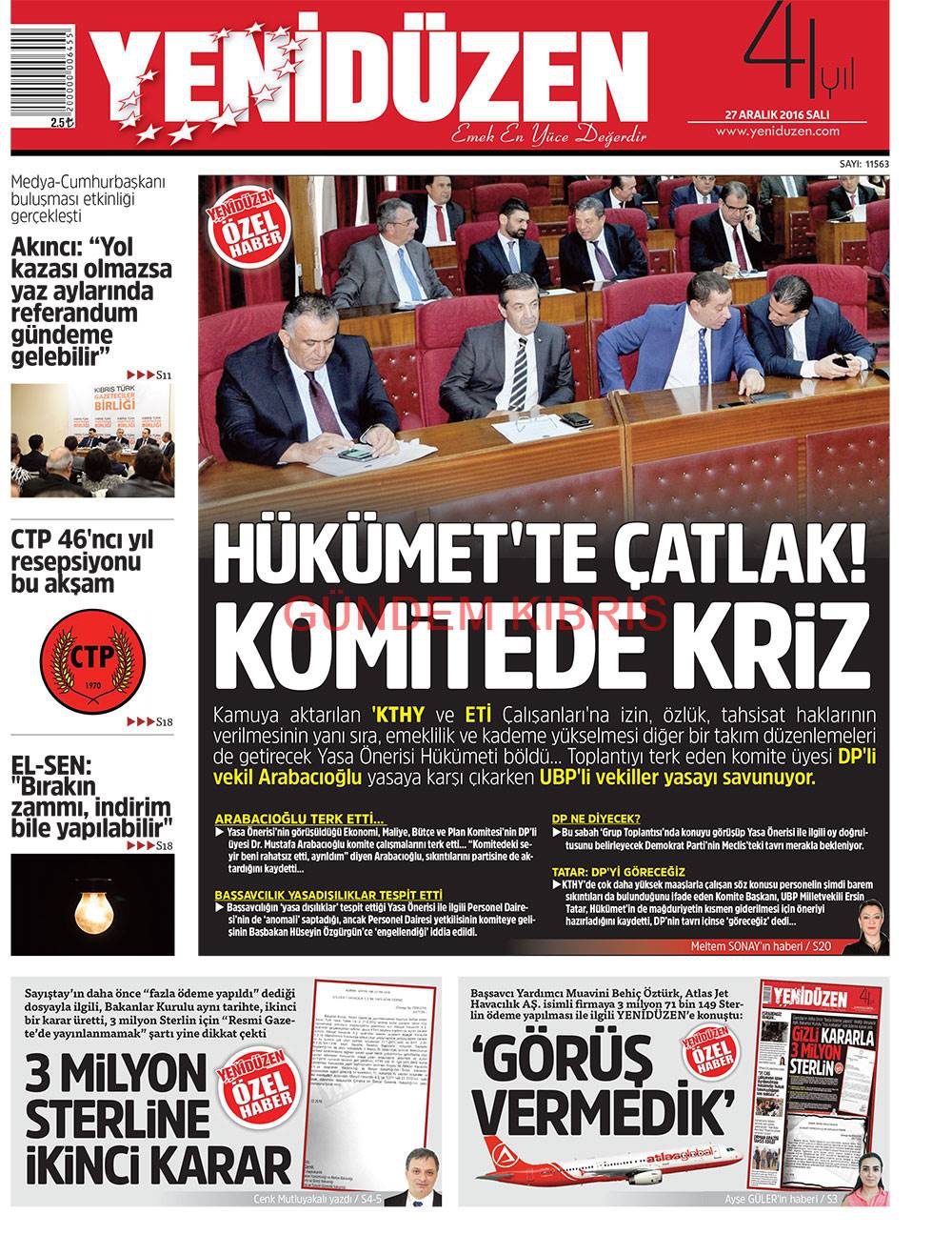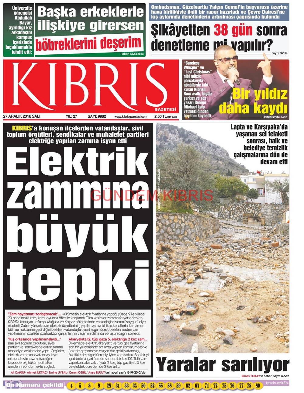 KKTC Gazete Manşetleri 27 Aralık 2016
