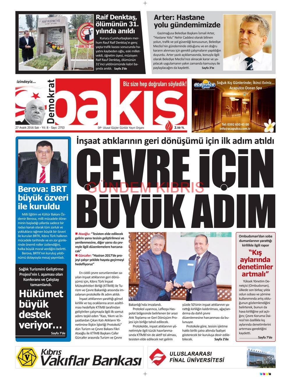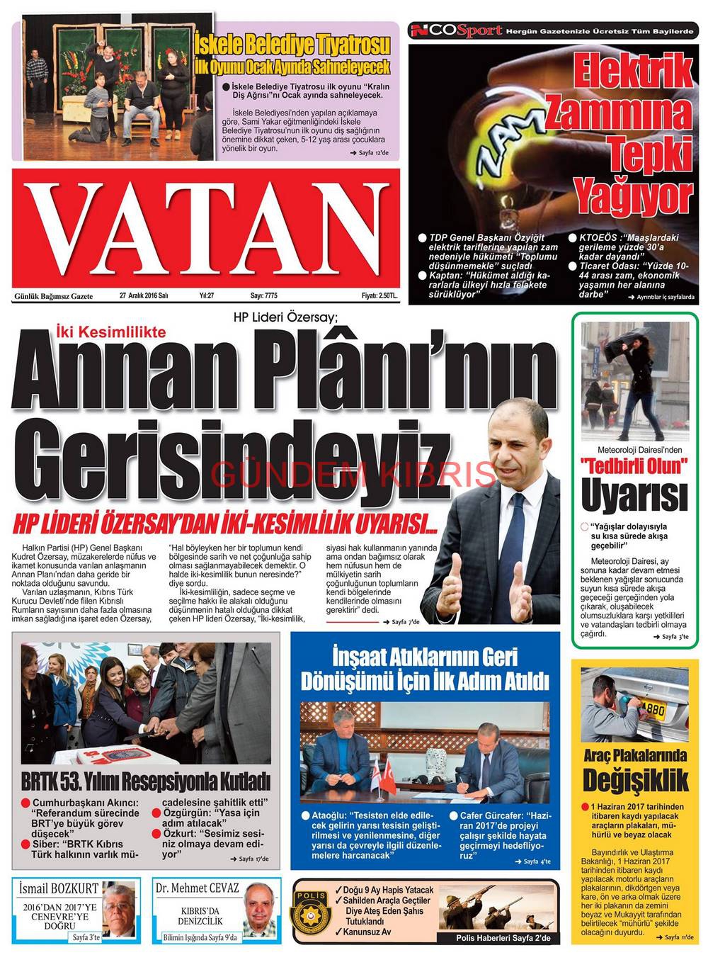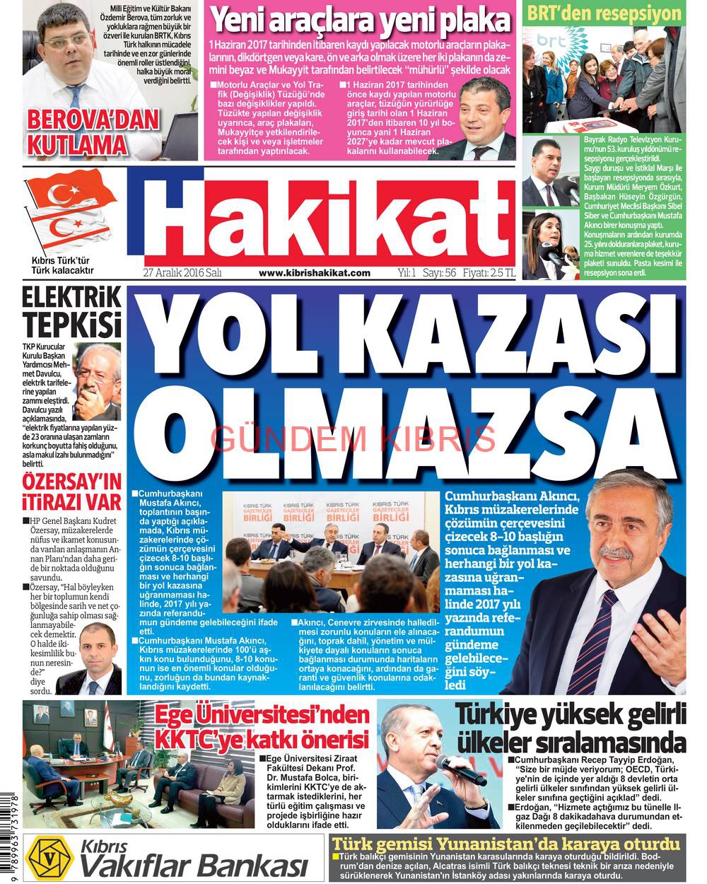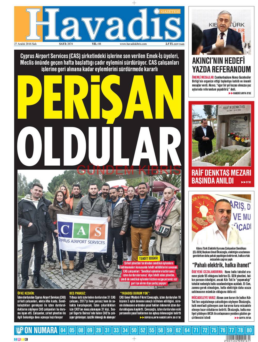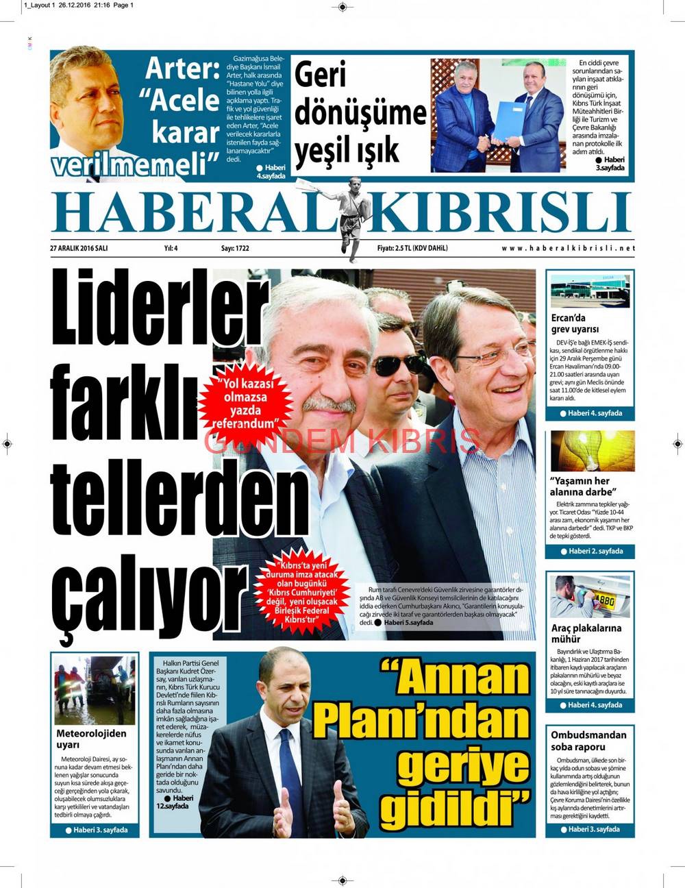 KKTC Gazete Manşetleri 27 Aralık 2016