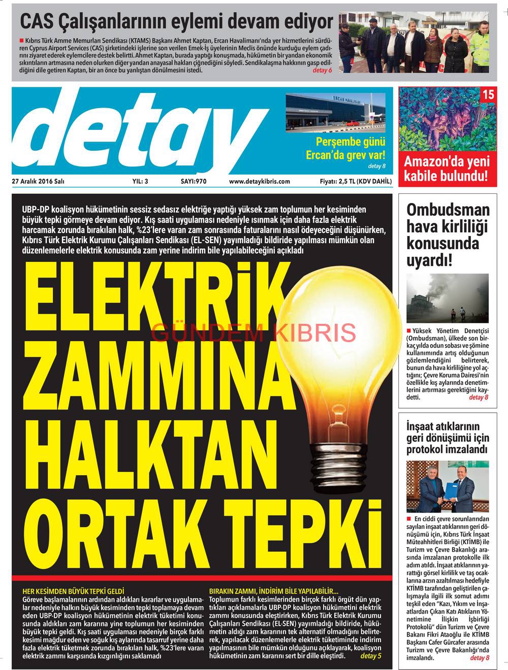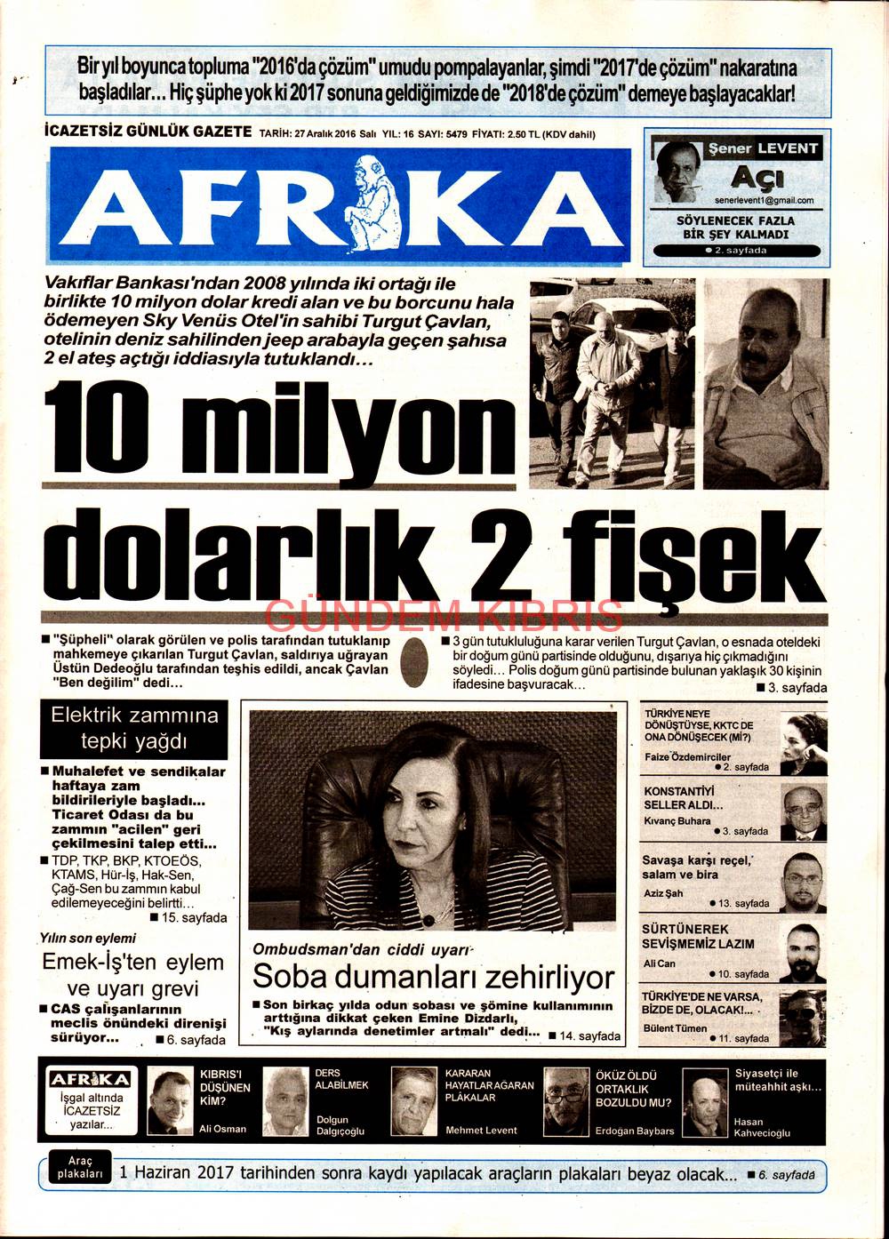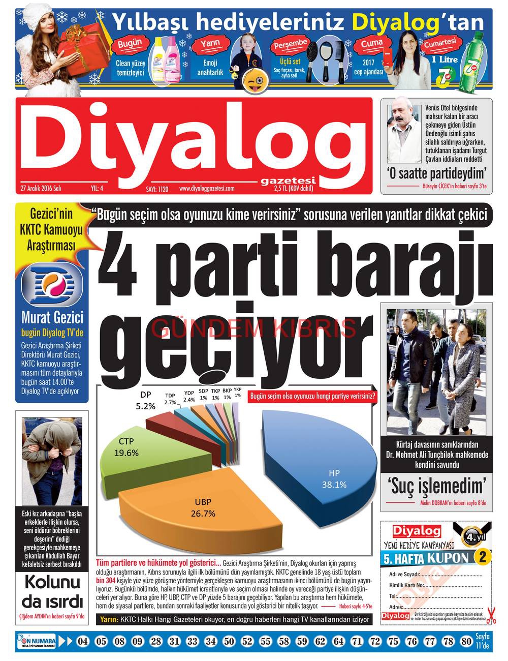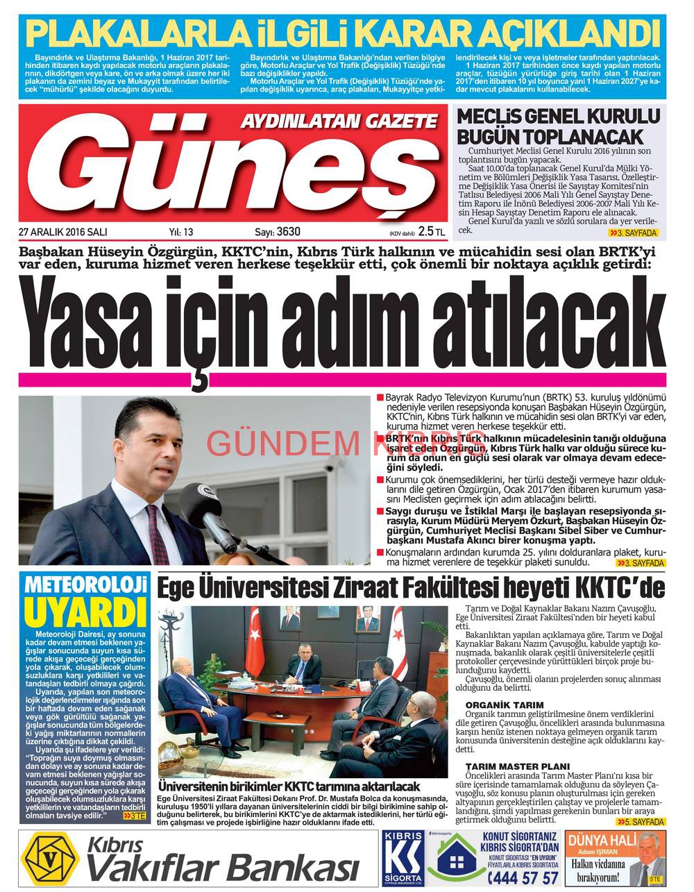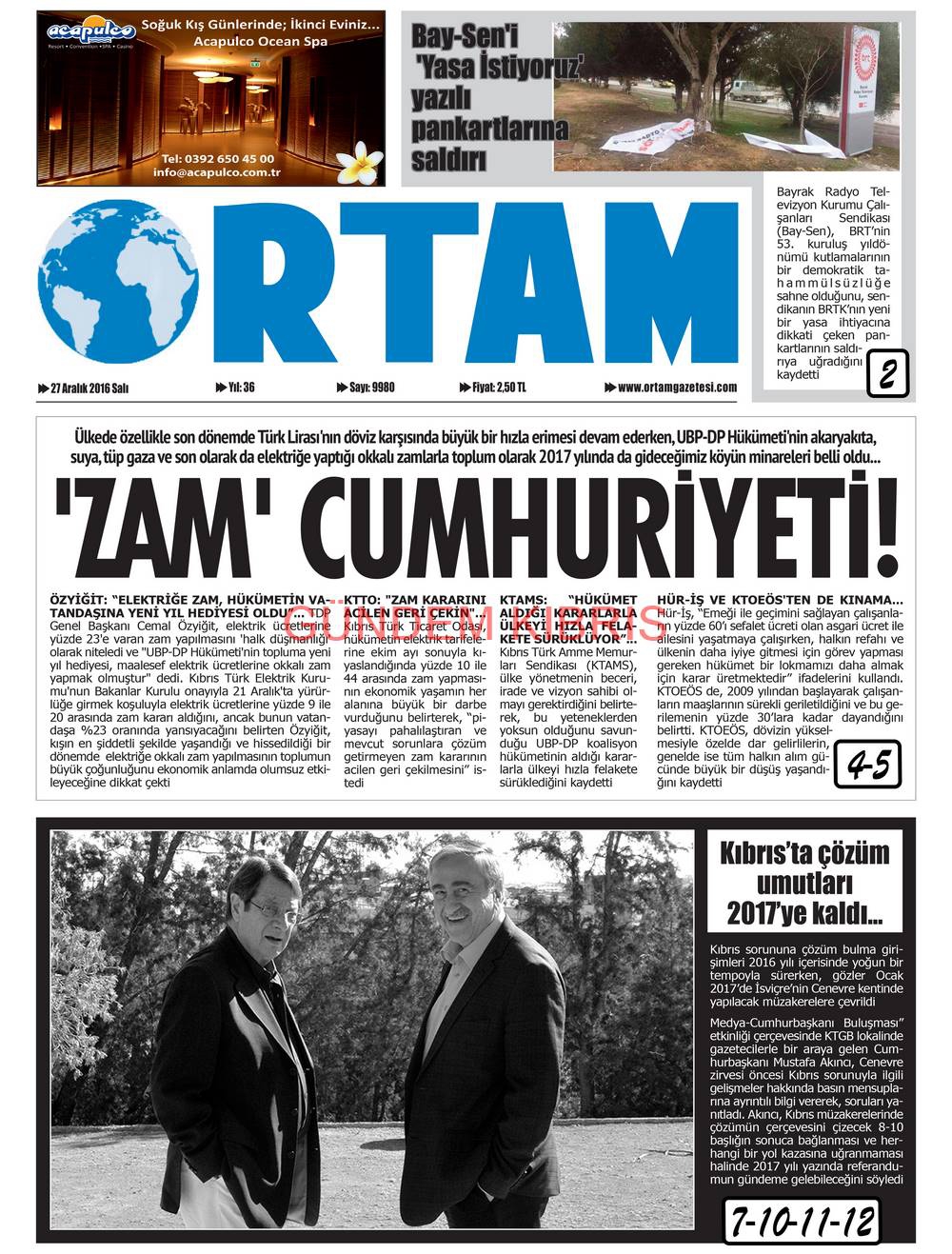KKTC Gazete Manşetleri 27 Aralık 2016