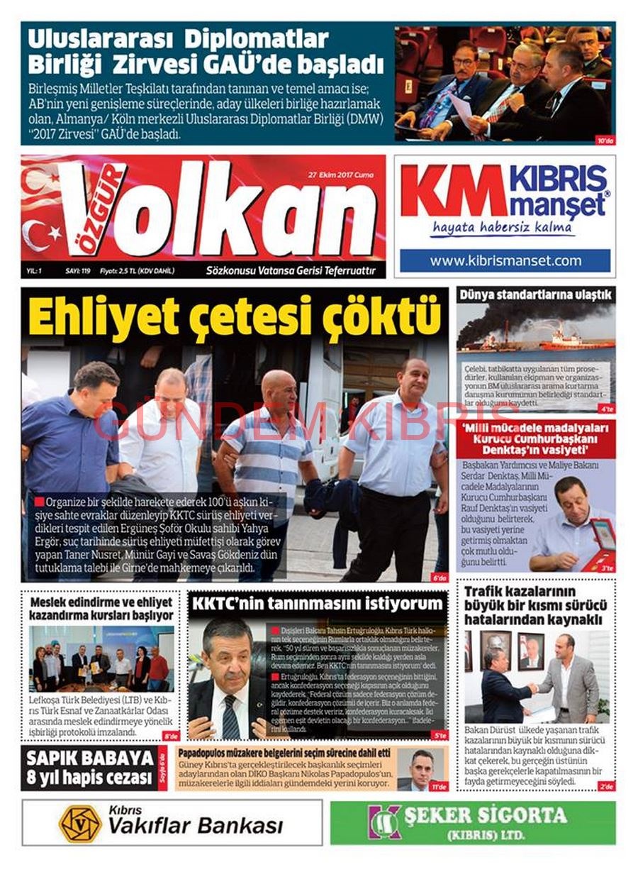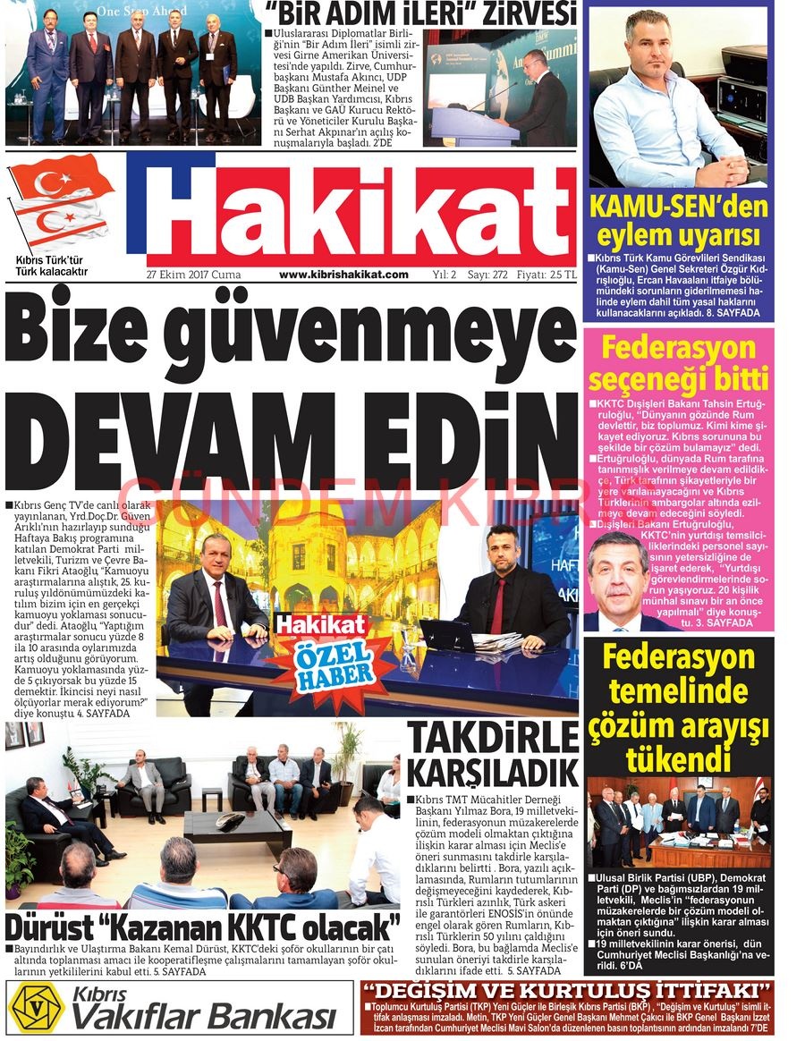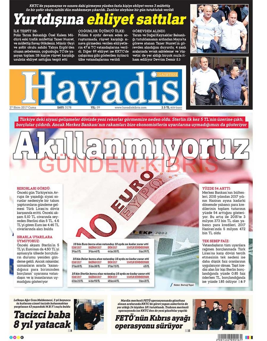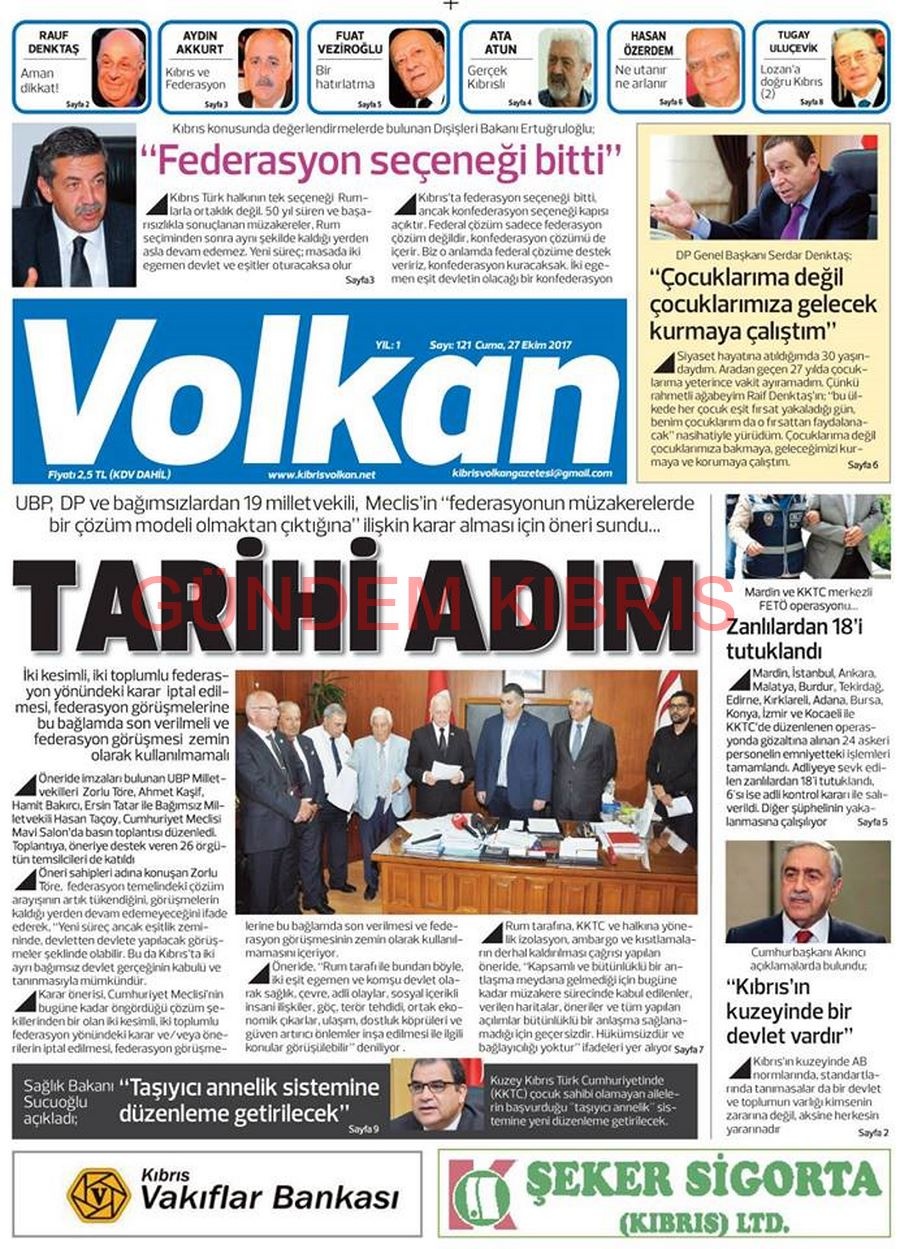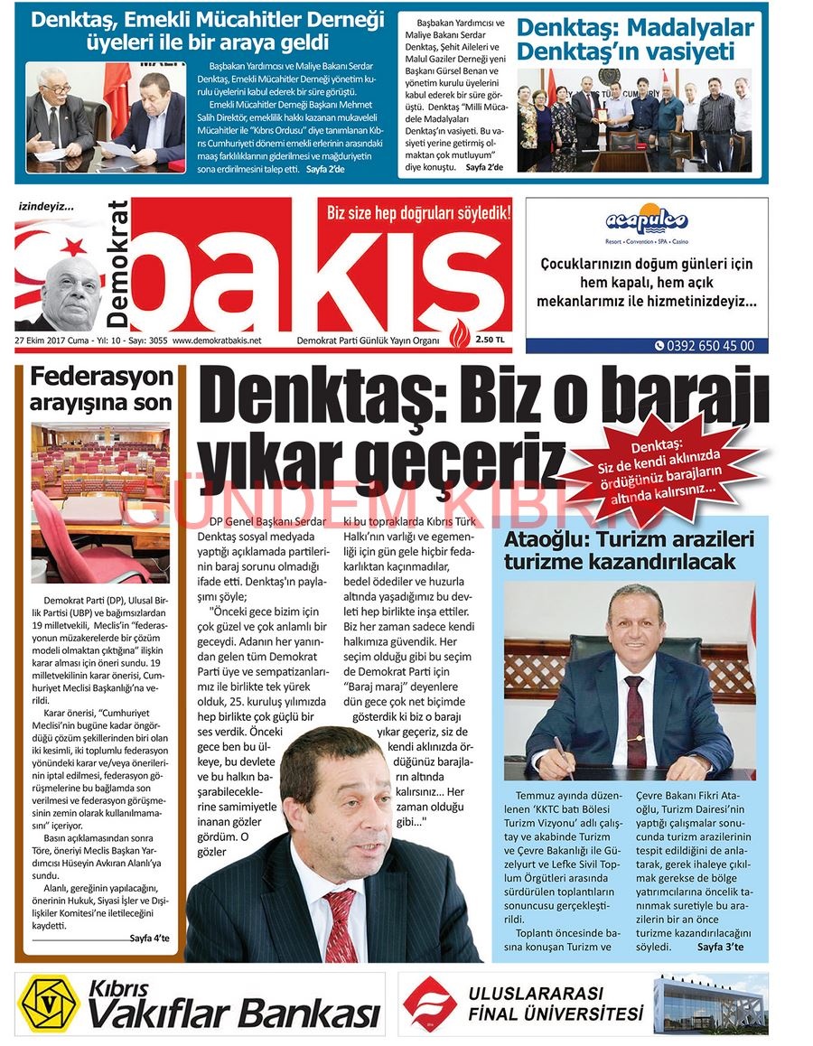 KKTC Gazete Manşetleri 27 Ekim 2017